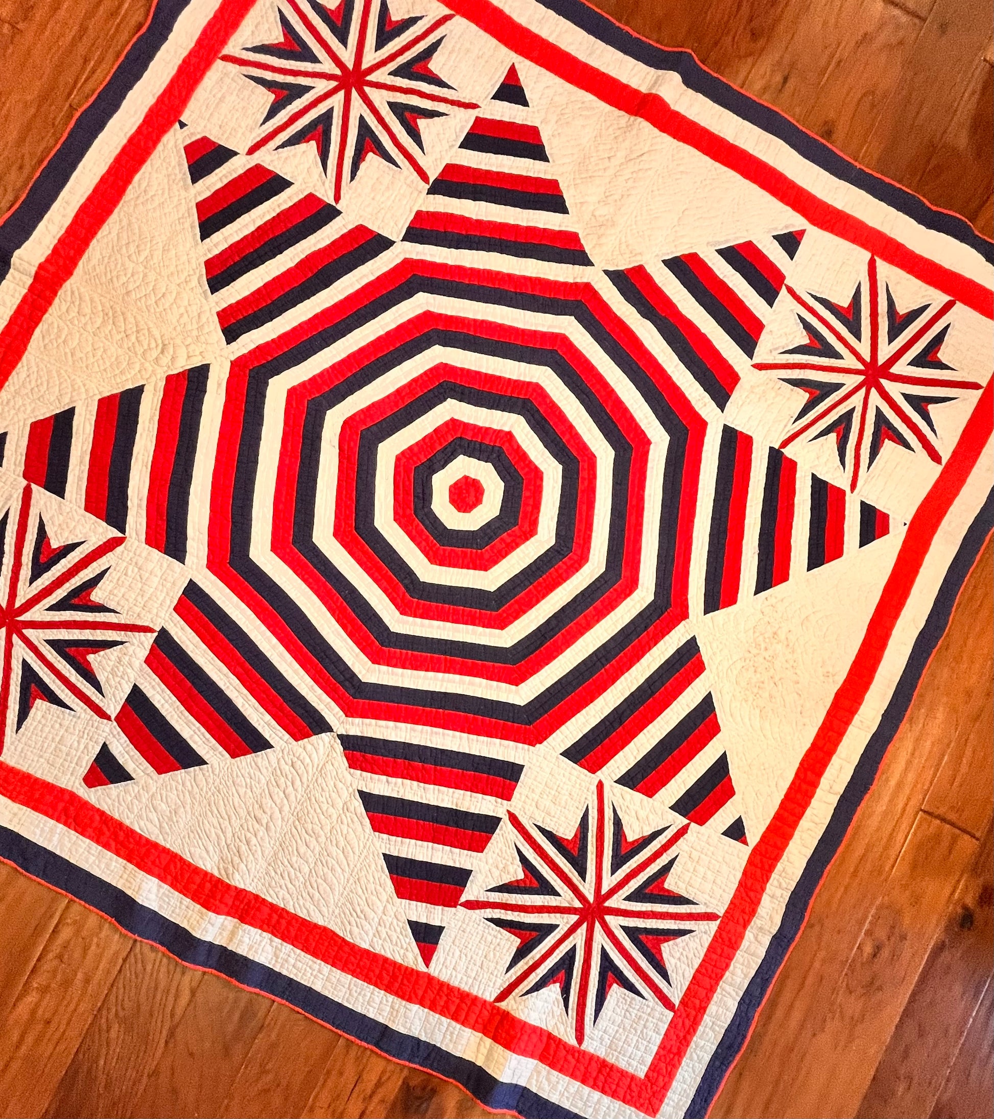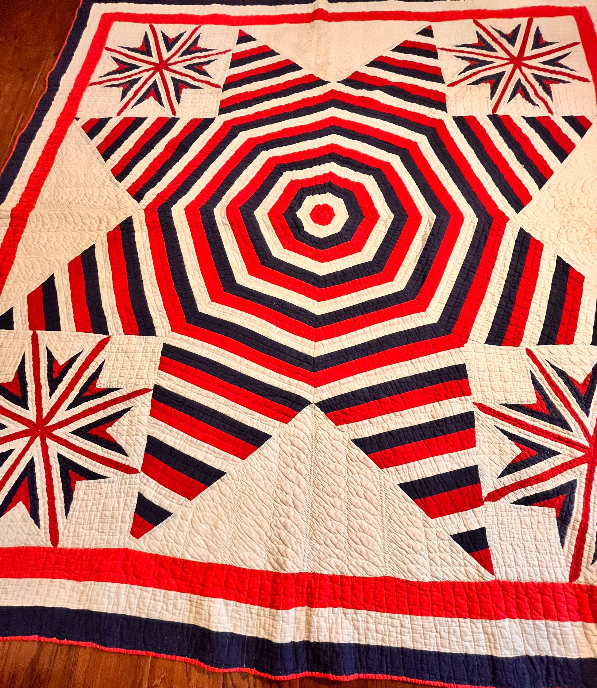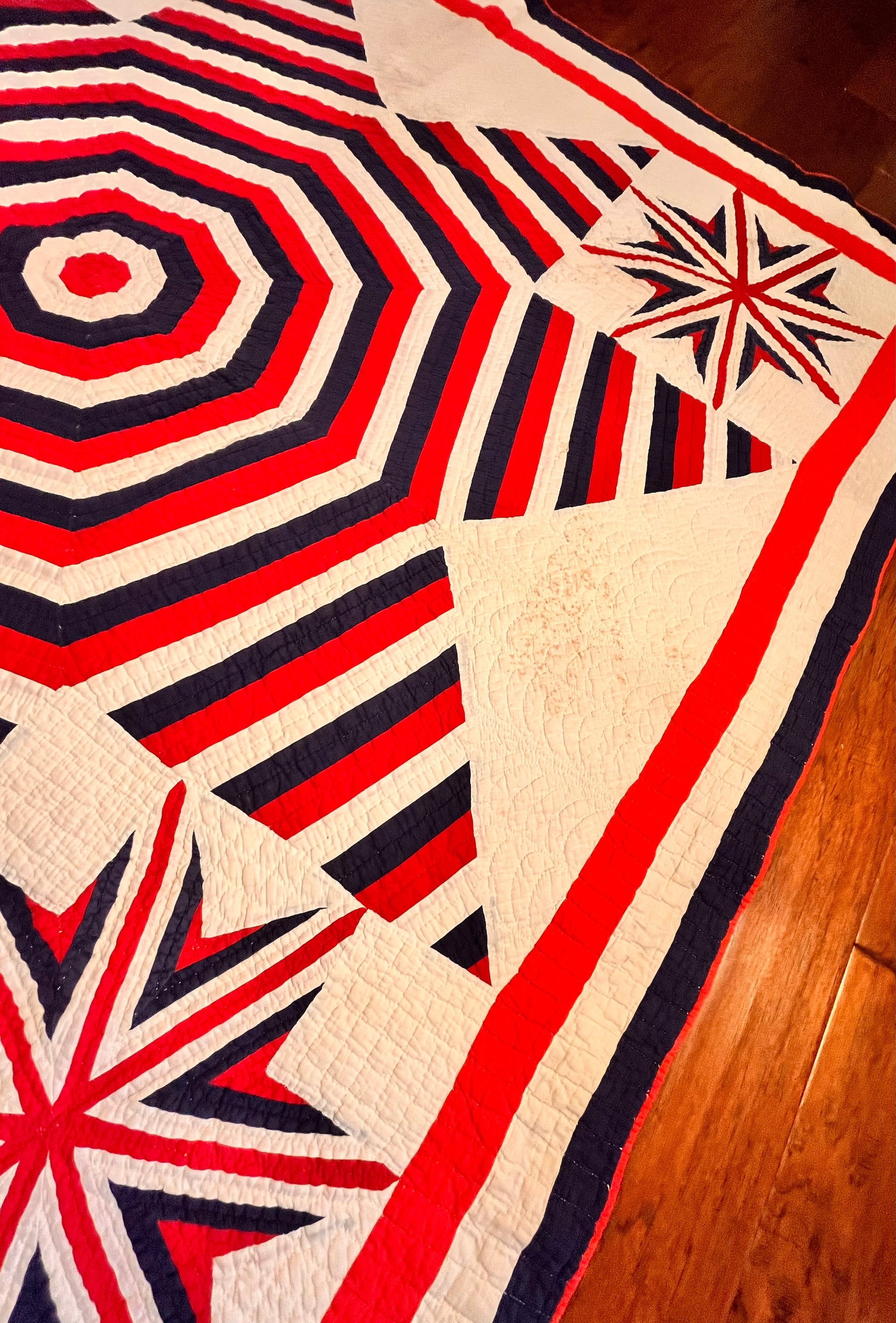 Outstanding stunning quilt made with an Americana theme as a circa 1930’s quilt.
