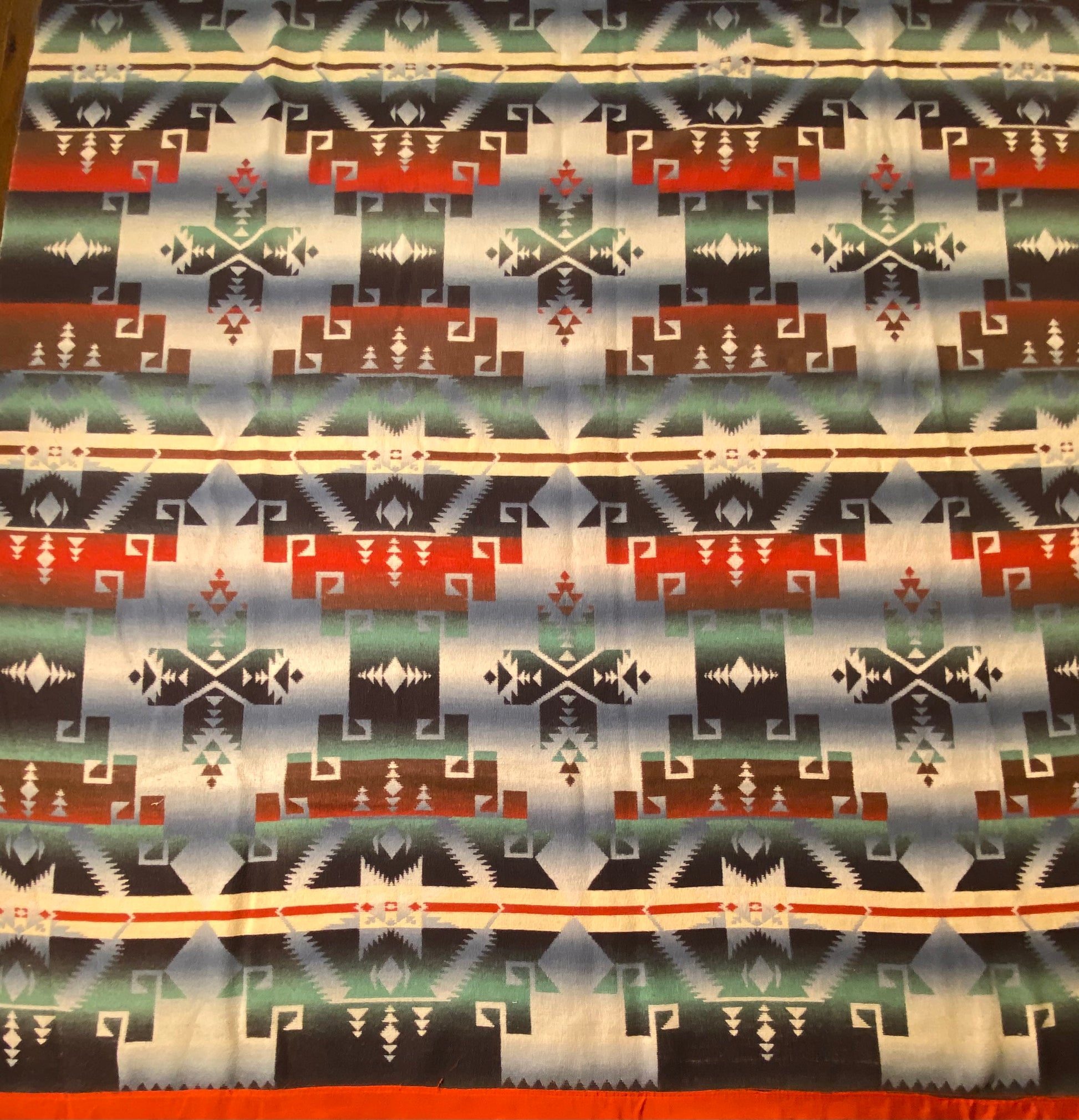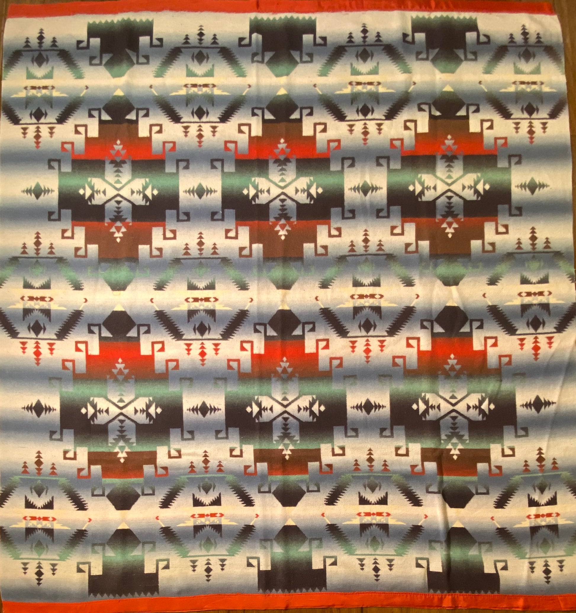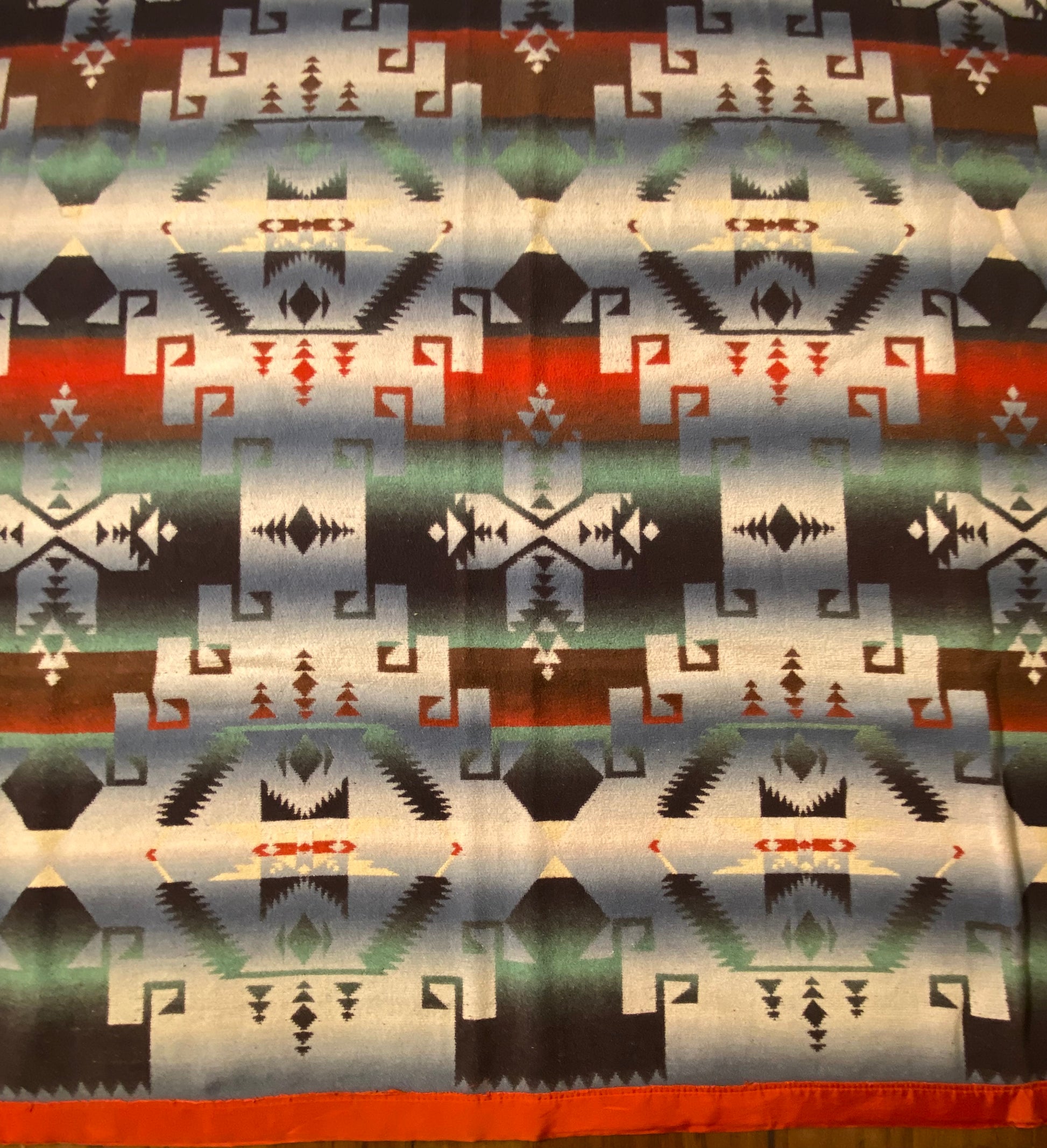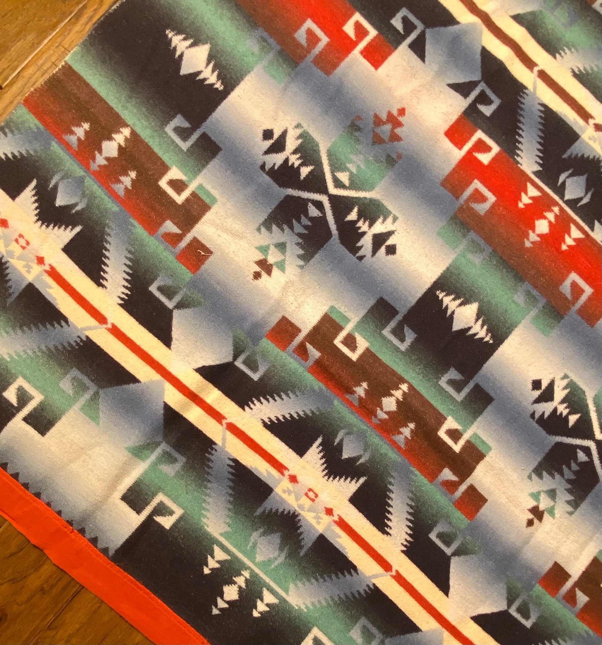Outstanding design on this antique ombré Beacon Camp blanket in great colors.