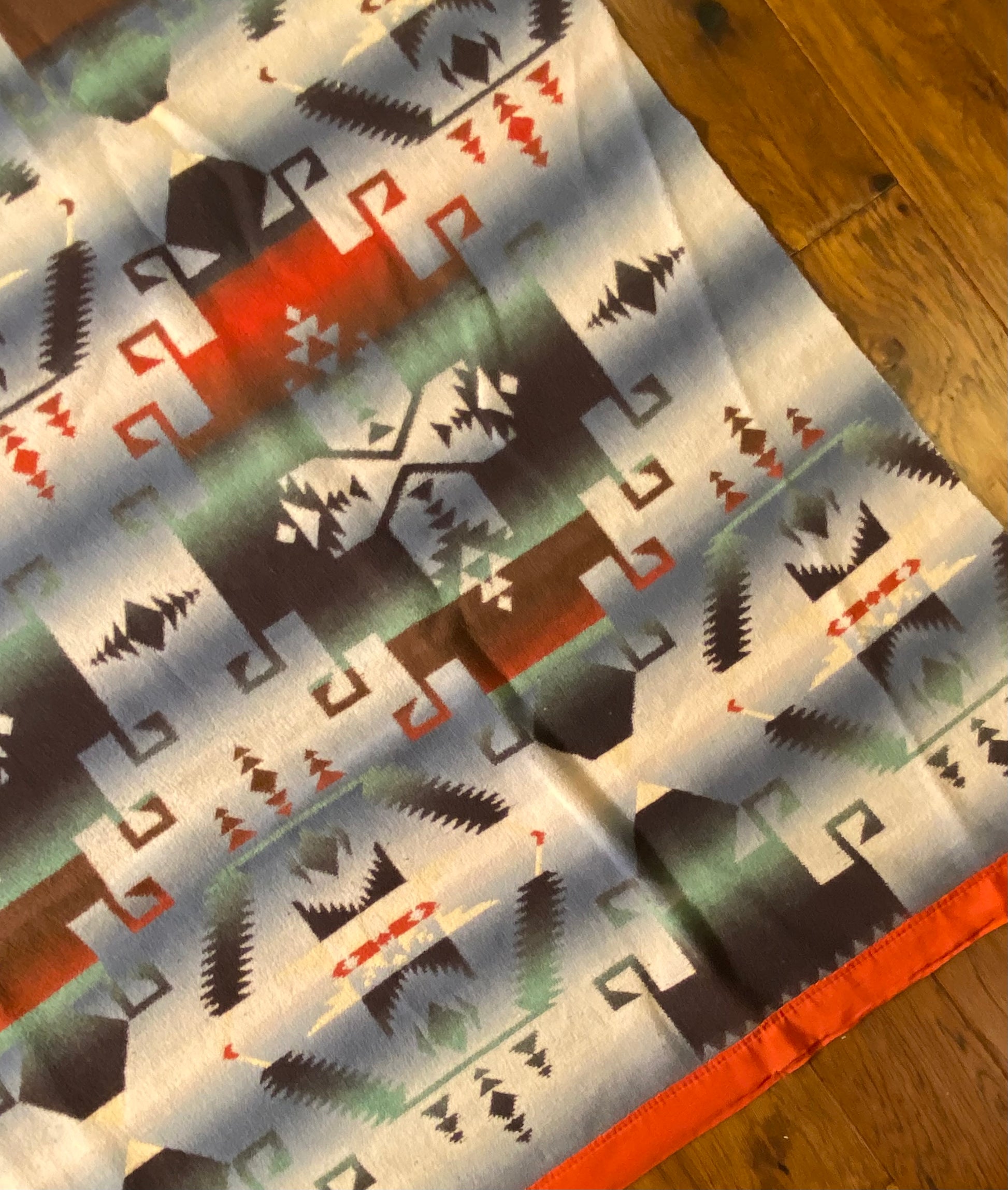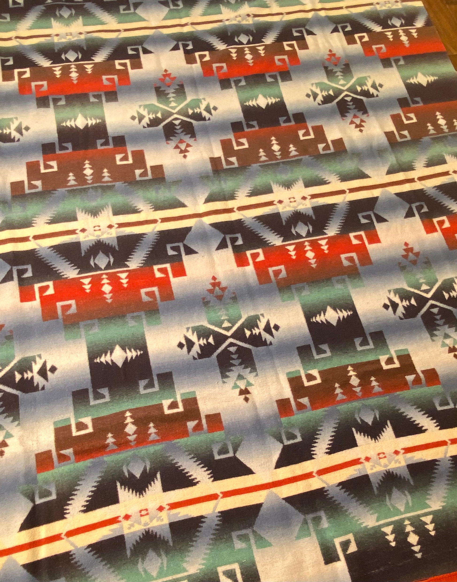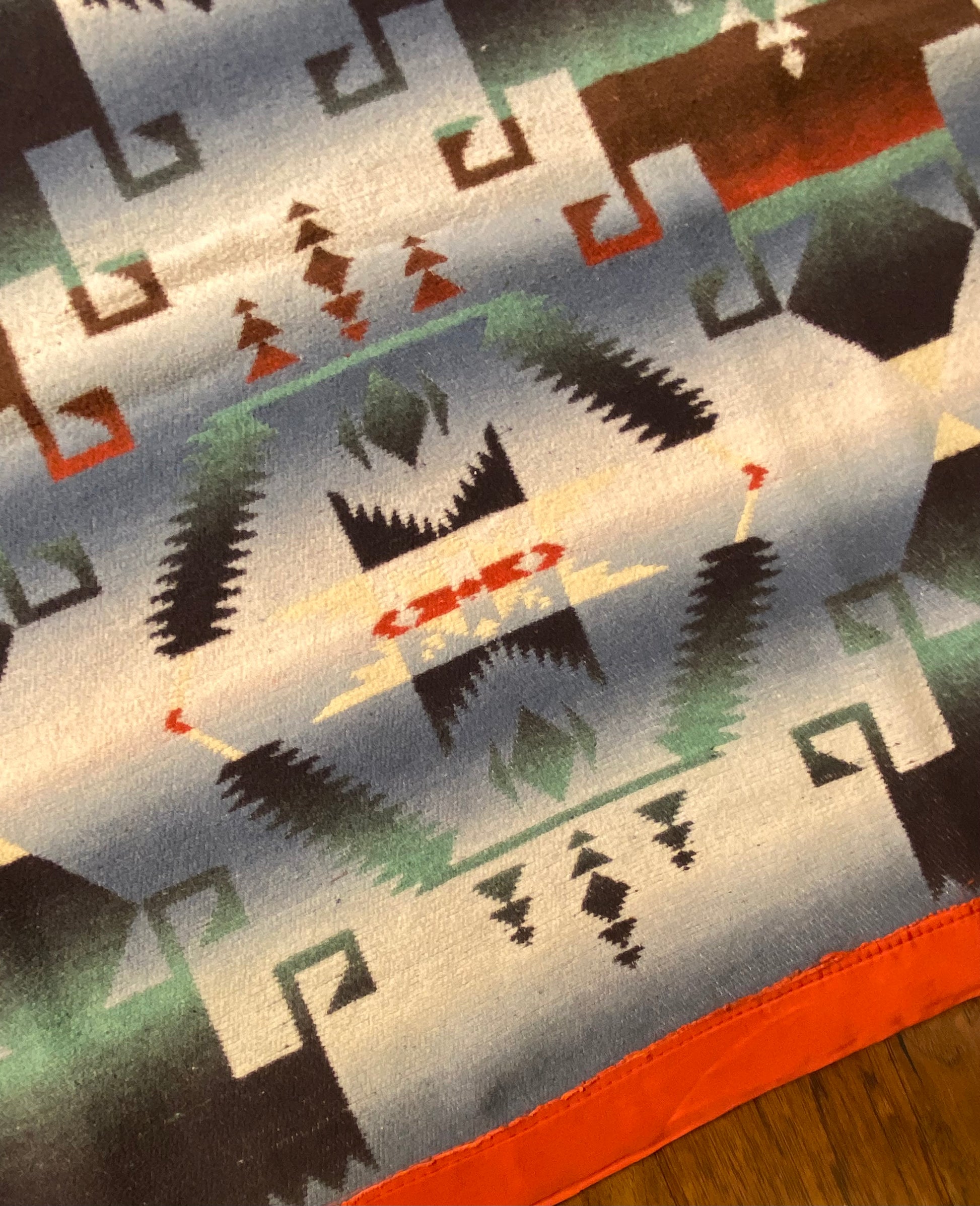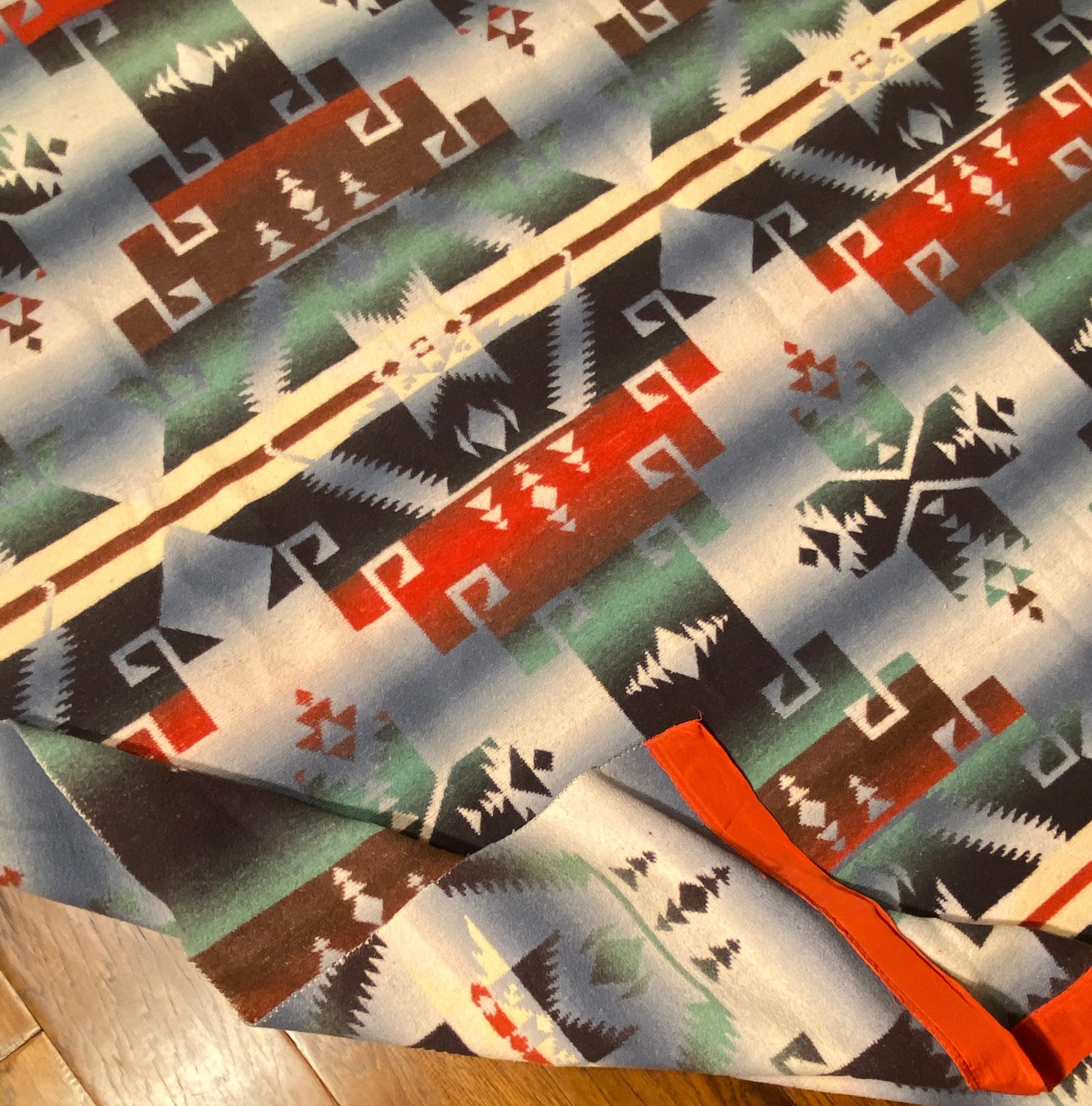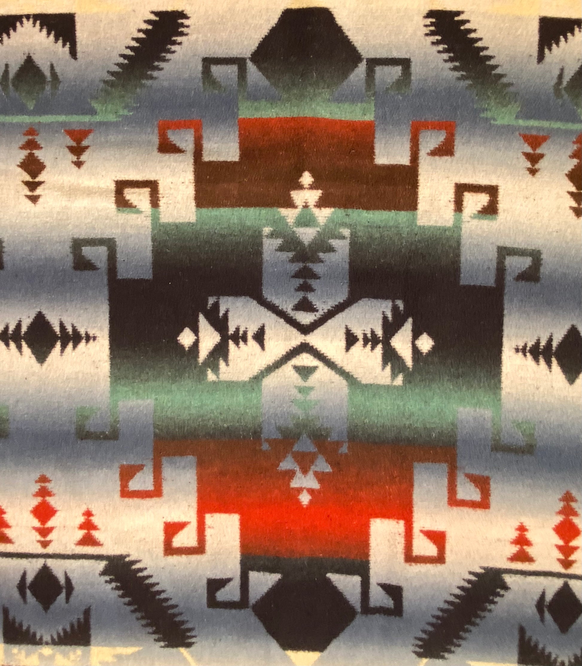 Outstanding design on this antique ombré Beacon Camp blanket in great colors.
