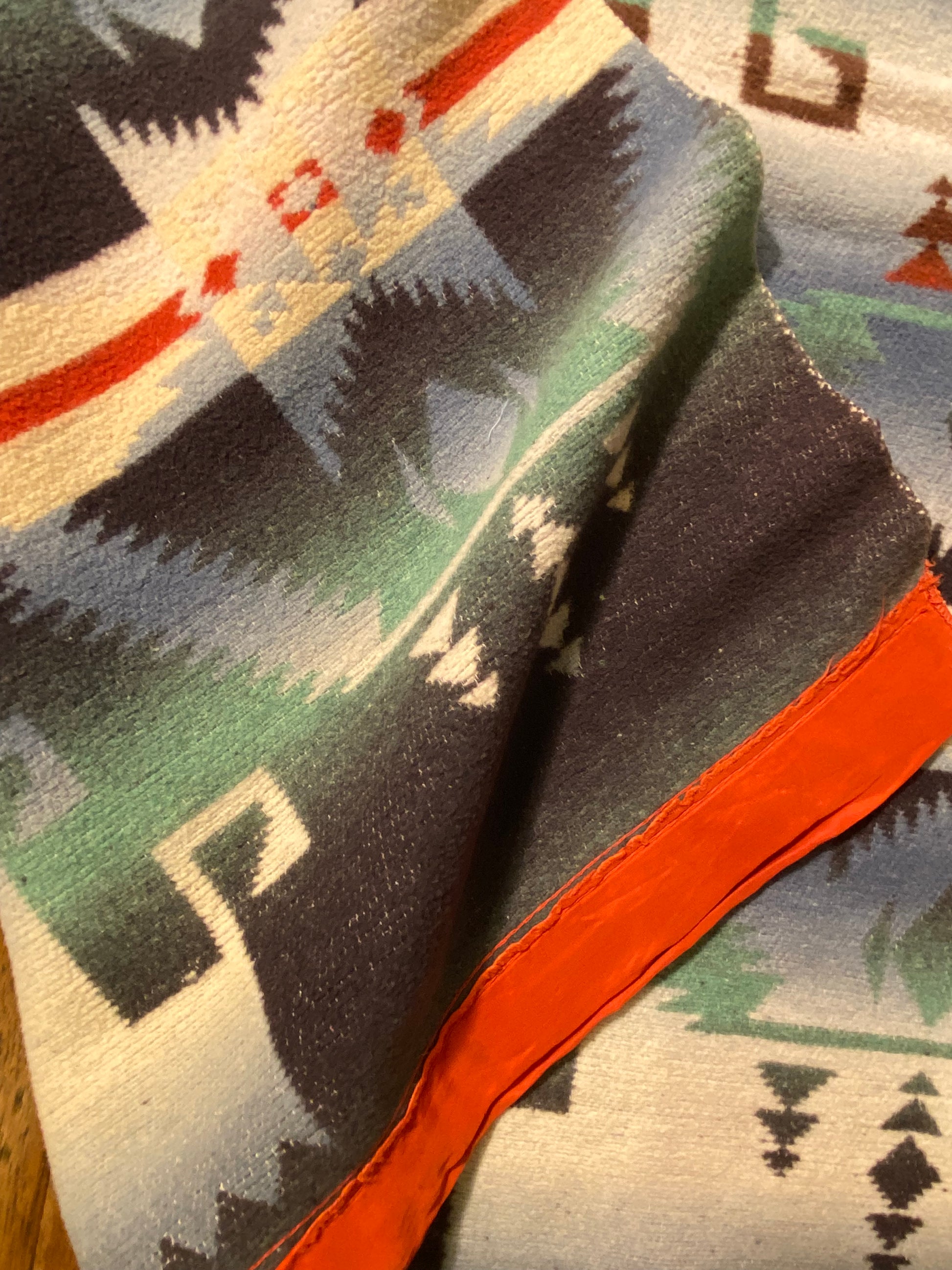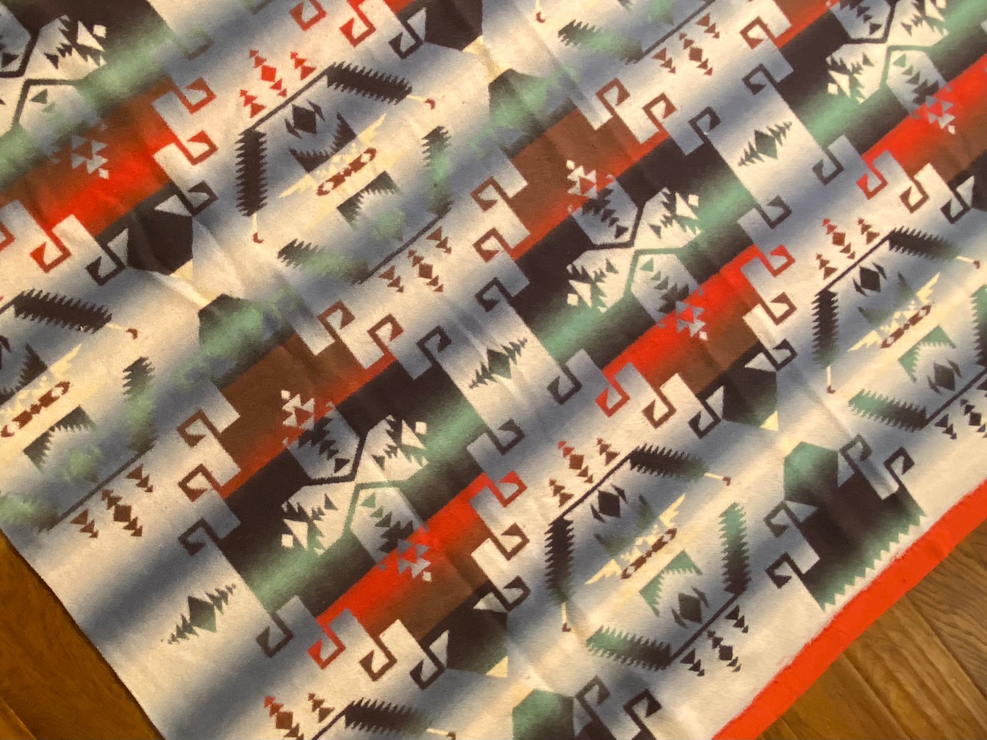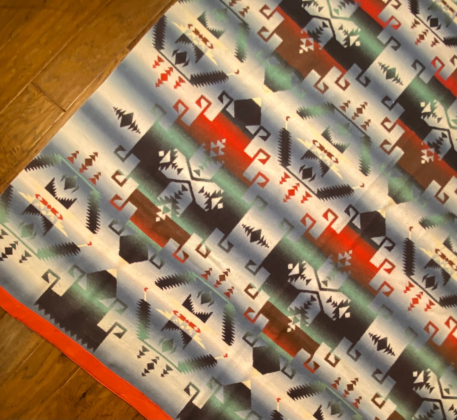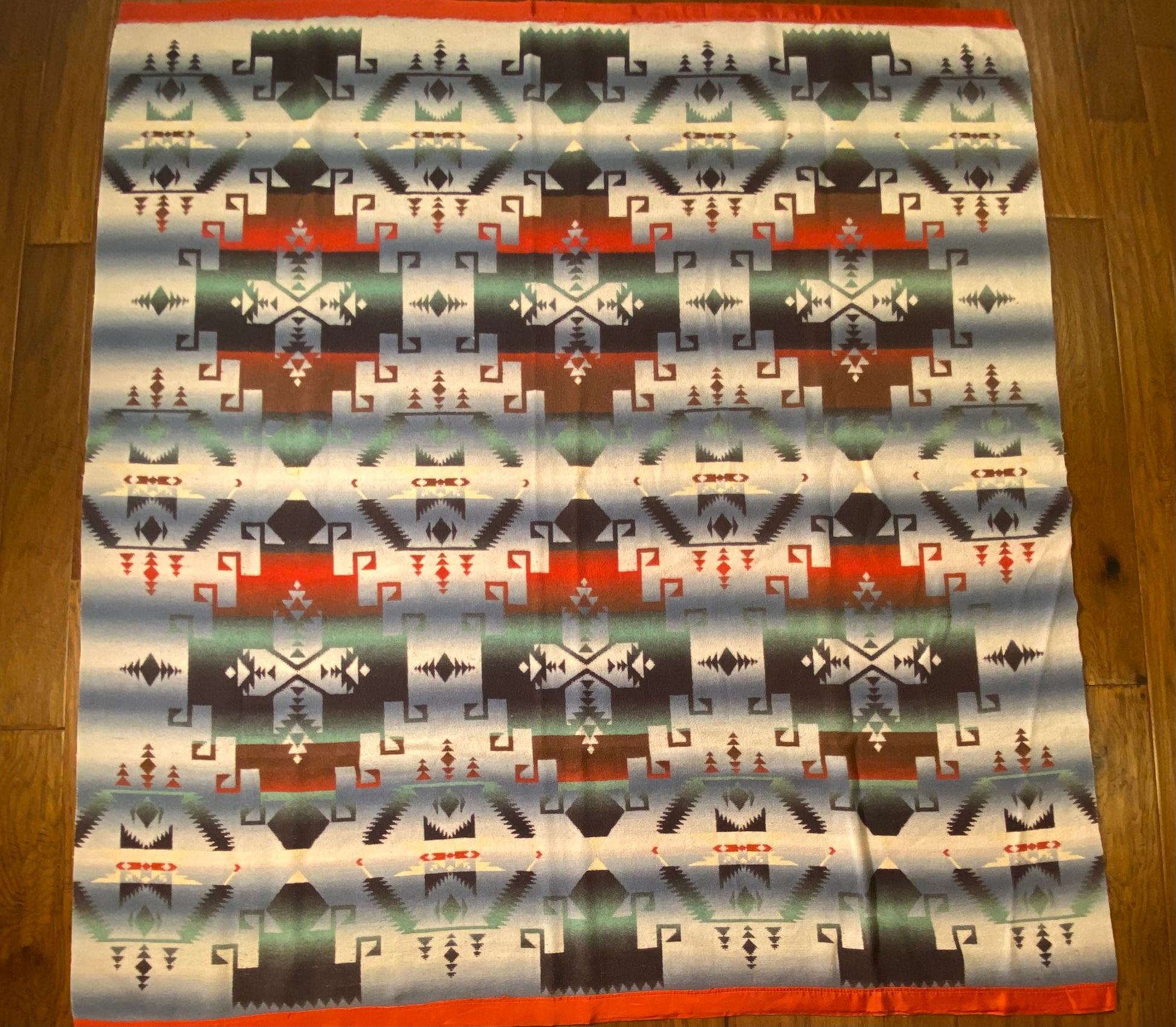 Outstanding design on this antique ombré Beacon Camp blanket in great colors.