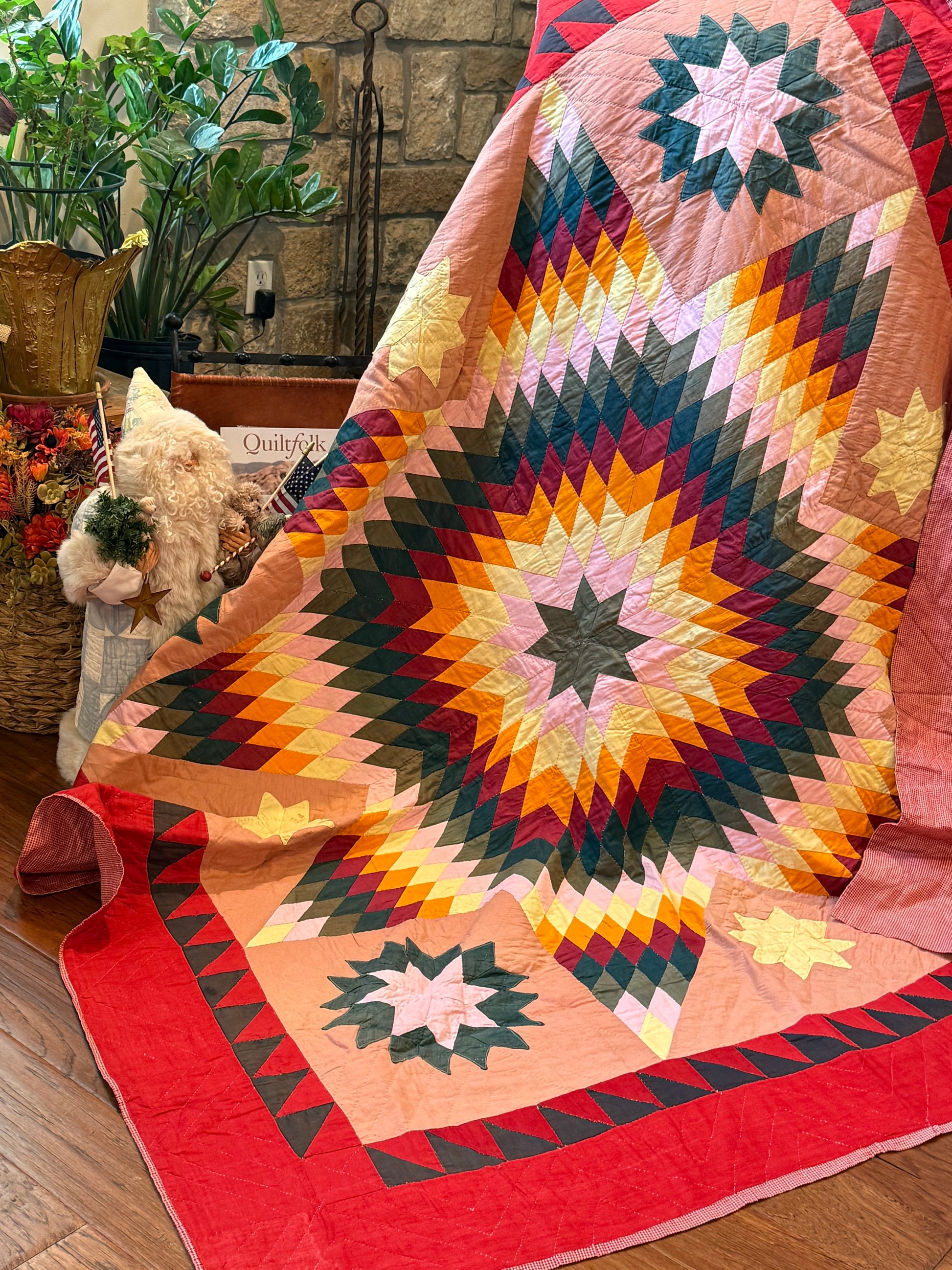 Blazing Star with Satellite Stars Quilt with a Sawtooth Border
