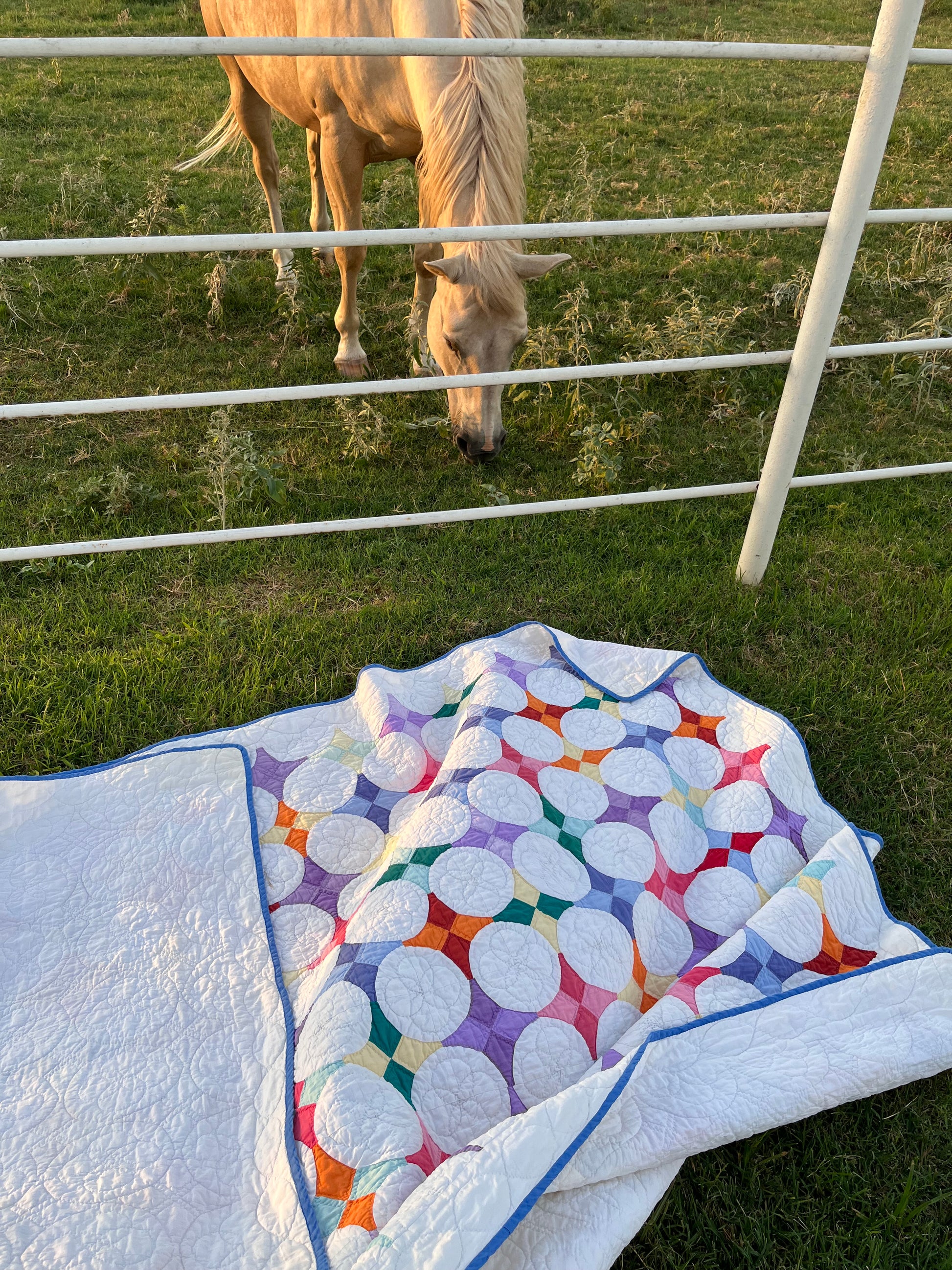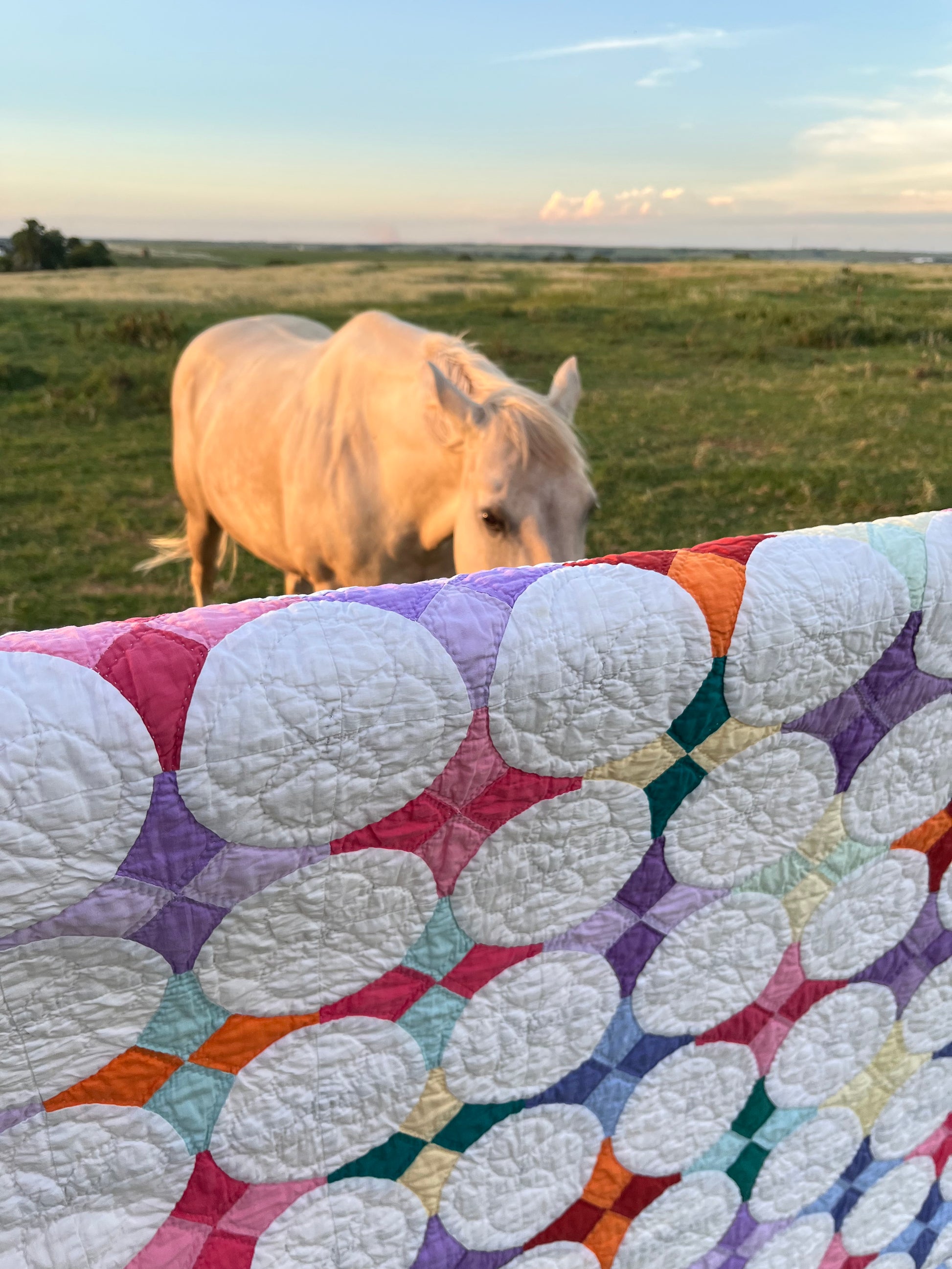 PS,, Looks like horses enjoy quilts too!! Or are curious…..