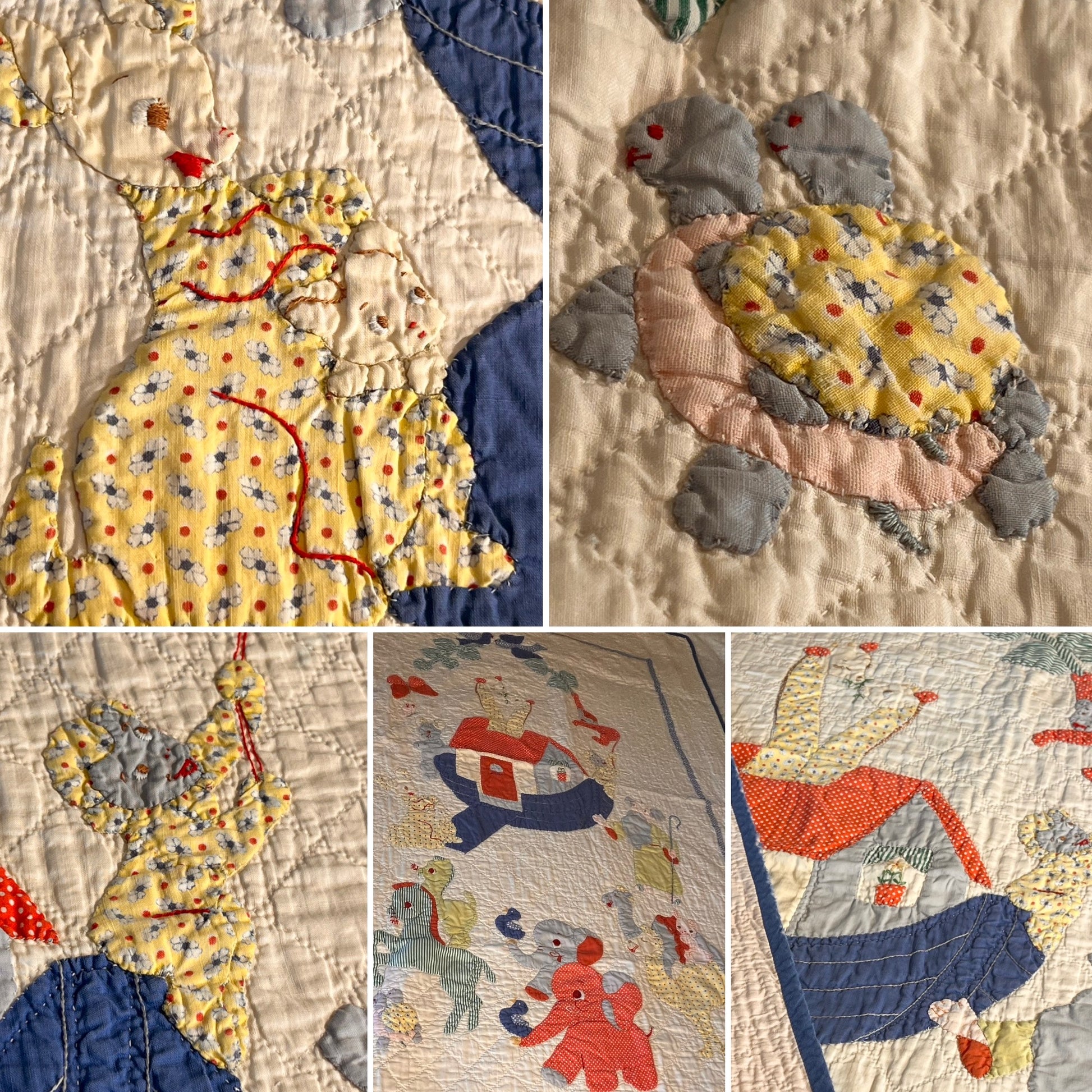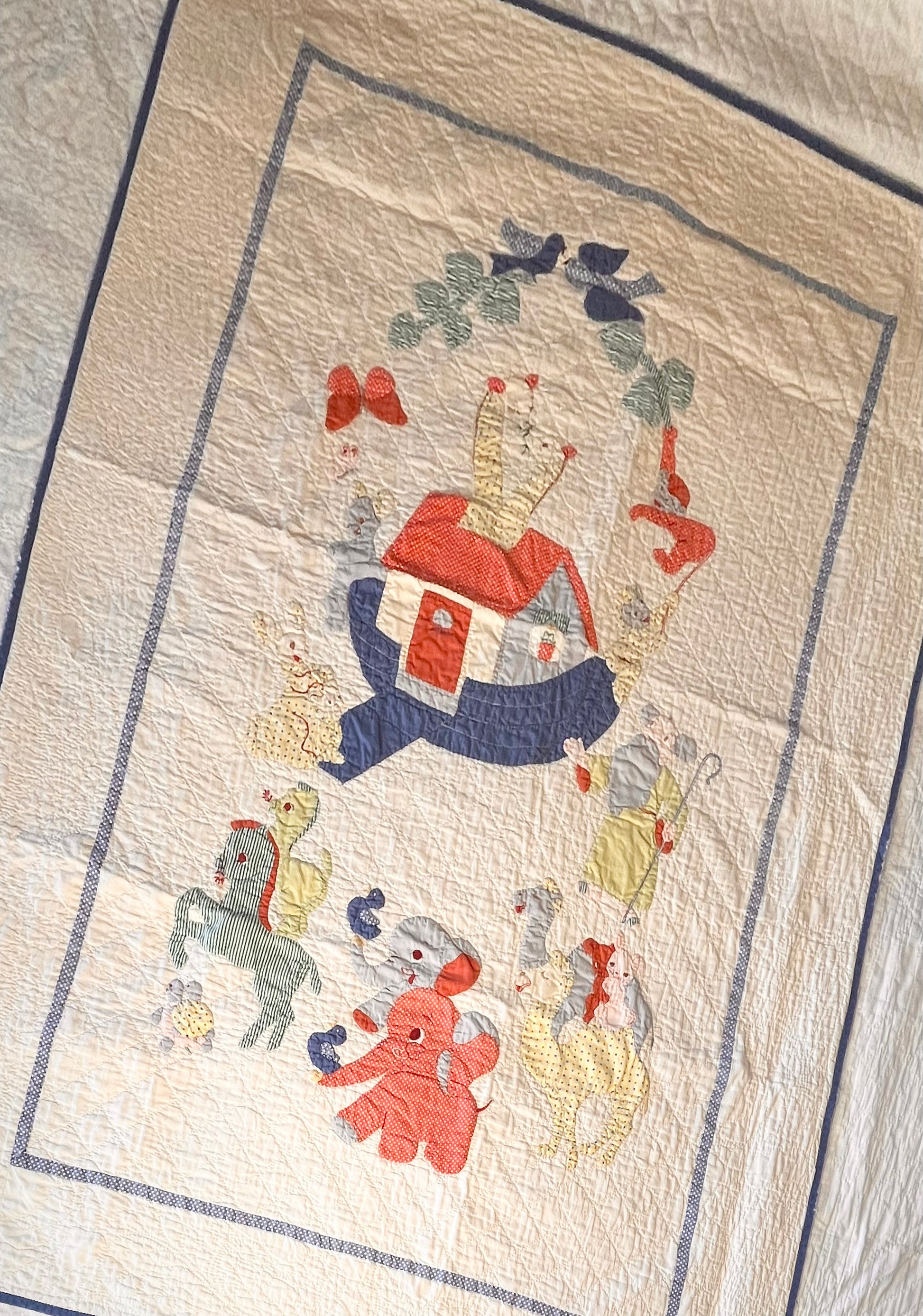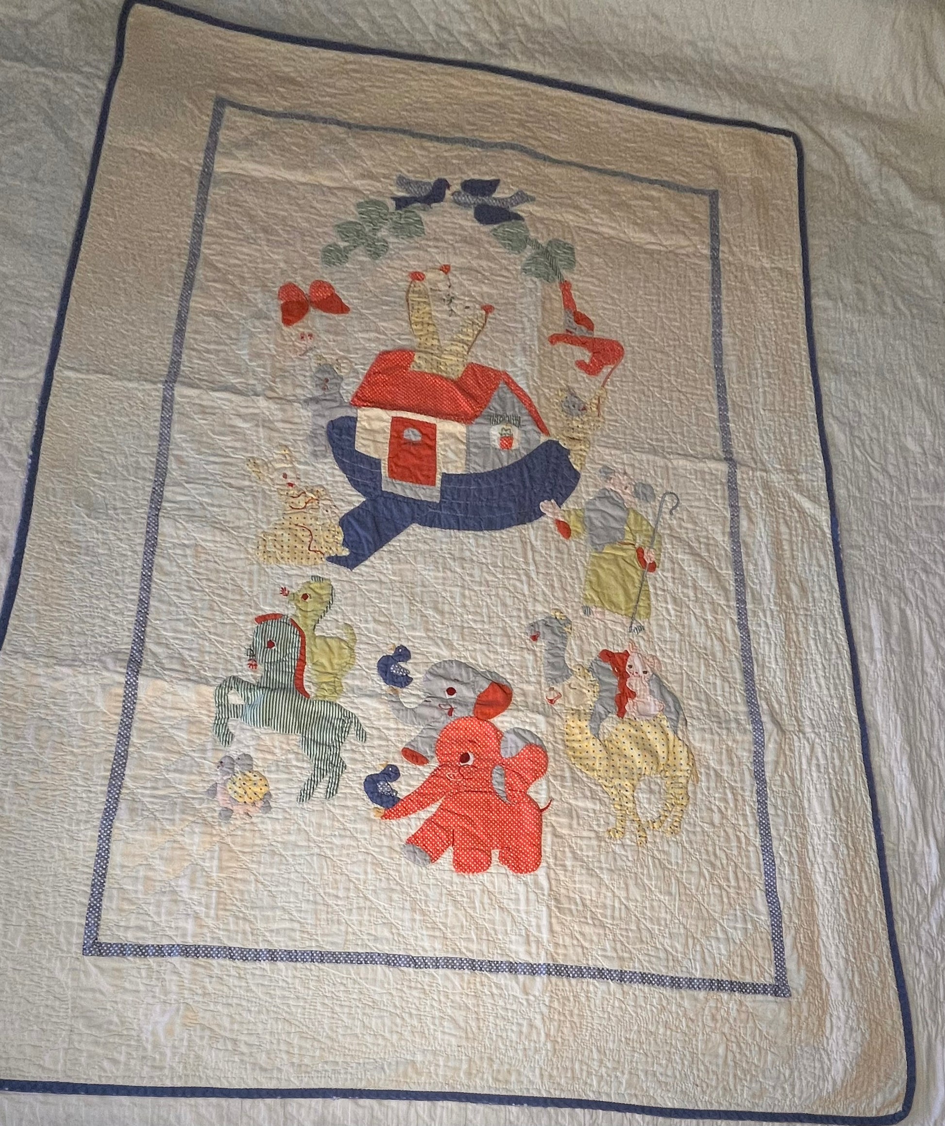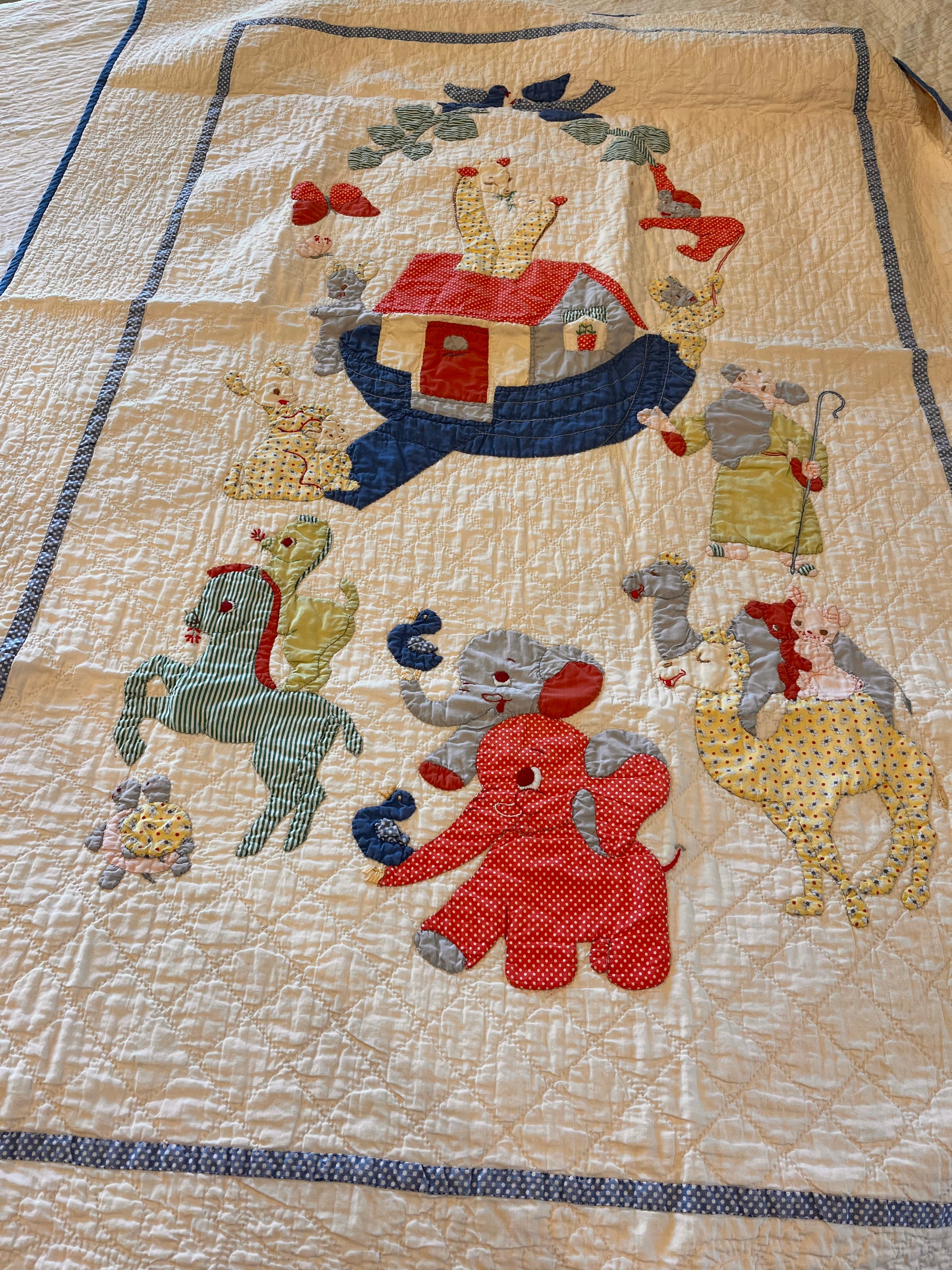 Charming appliqué authentic crib sized quilt, Noah’s Ark.