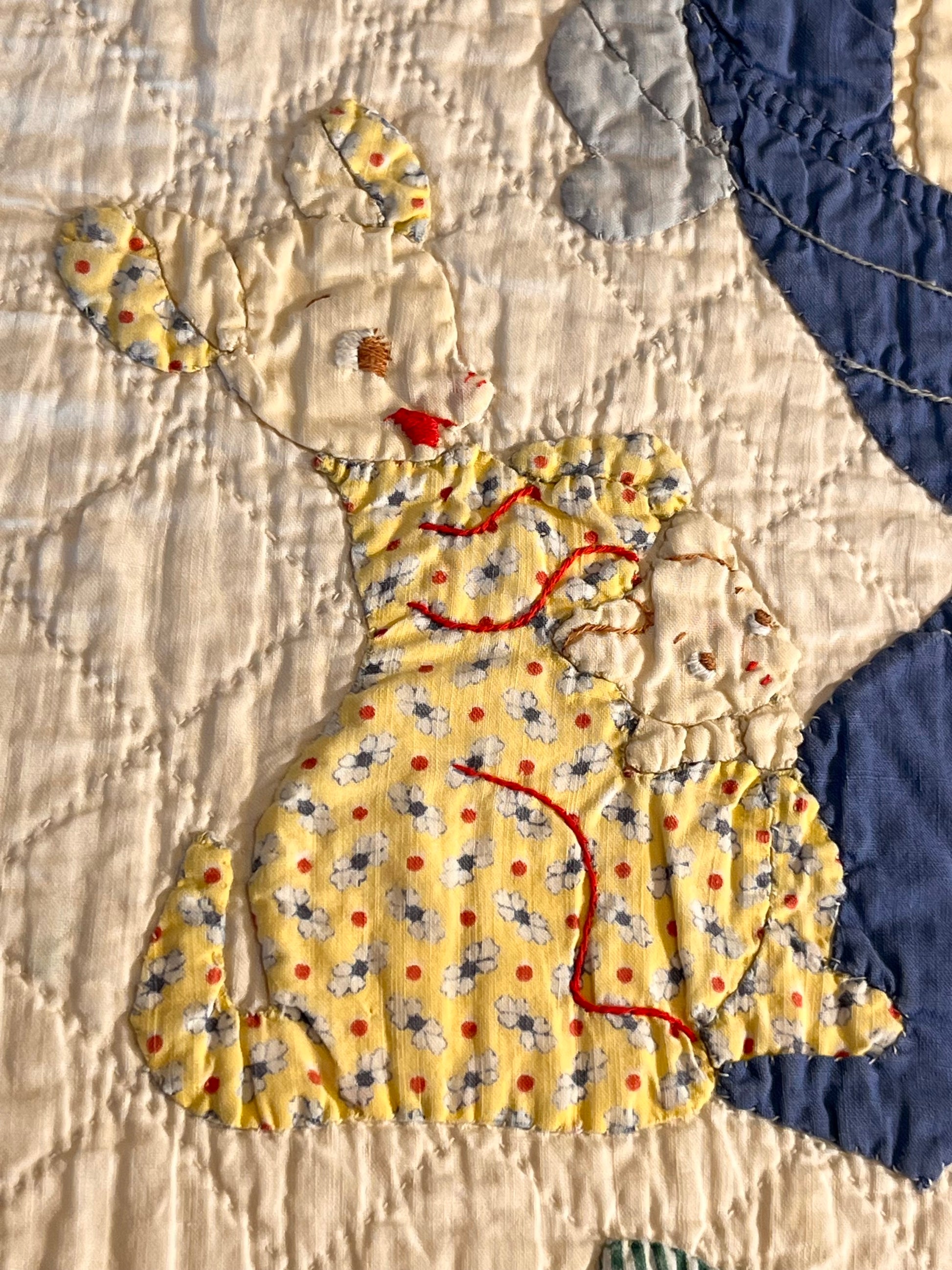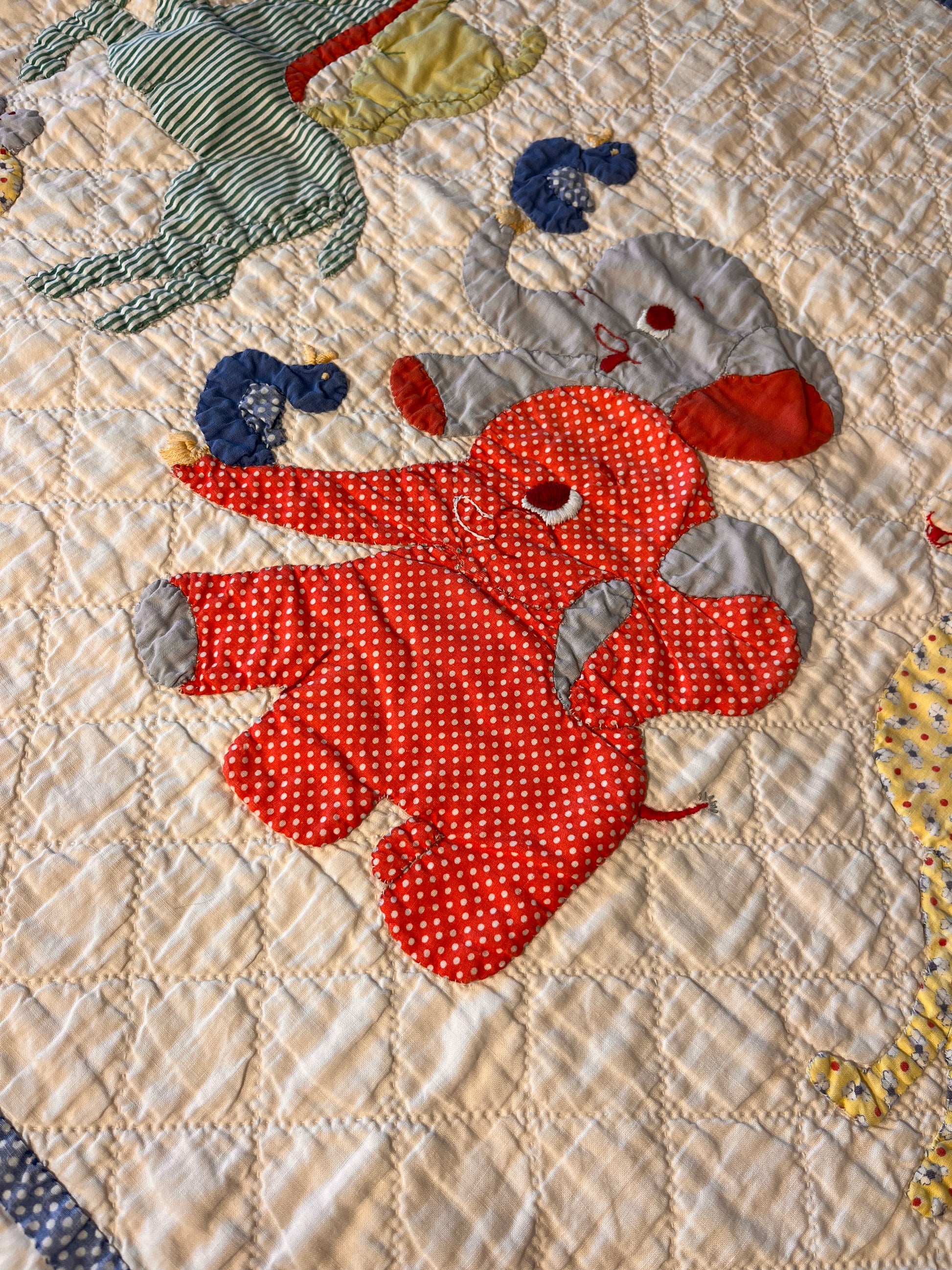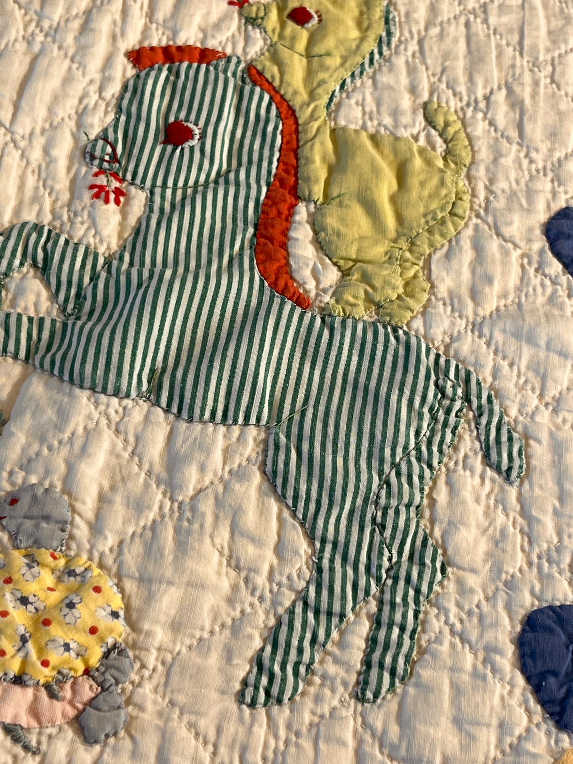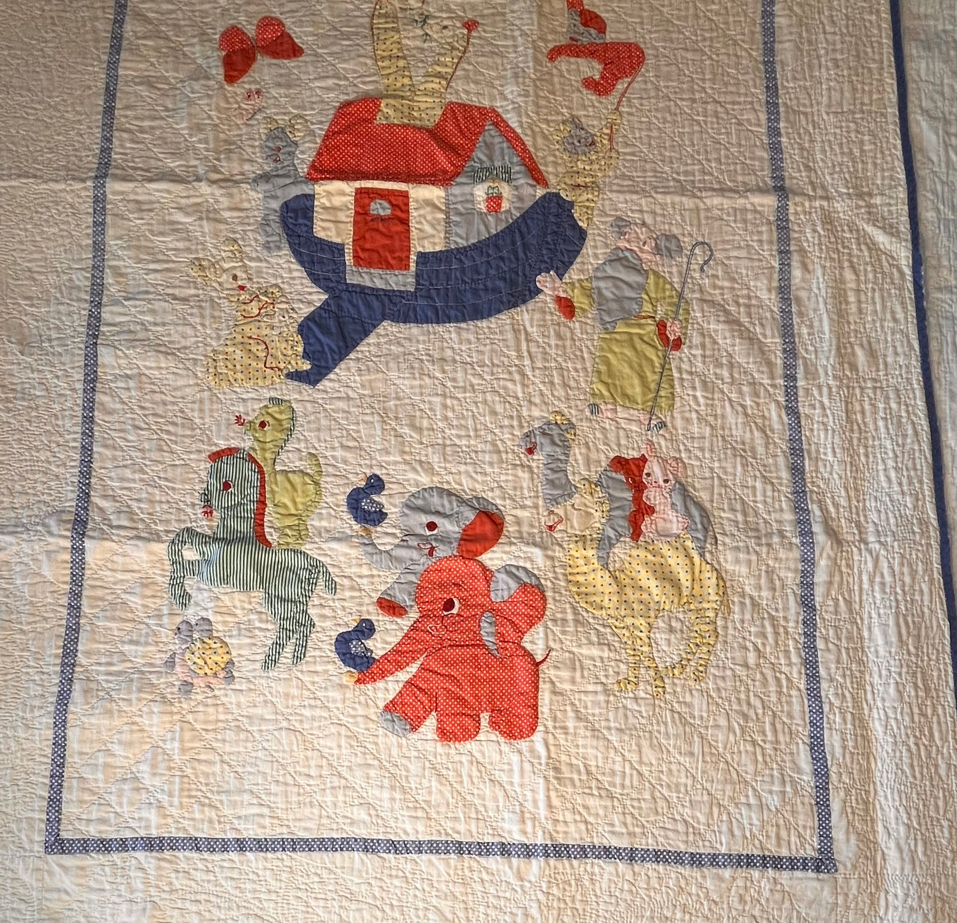 Charming appliqué authentic crib sized quilt, Noah’s Ark.