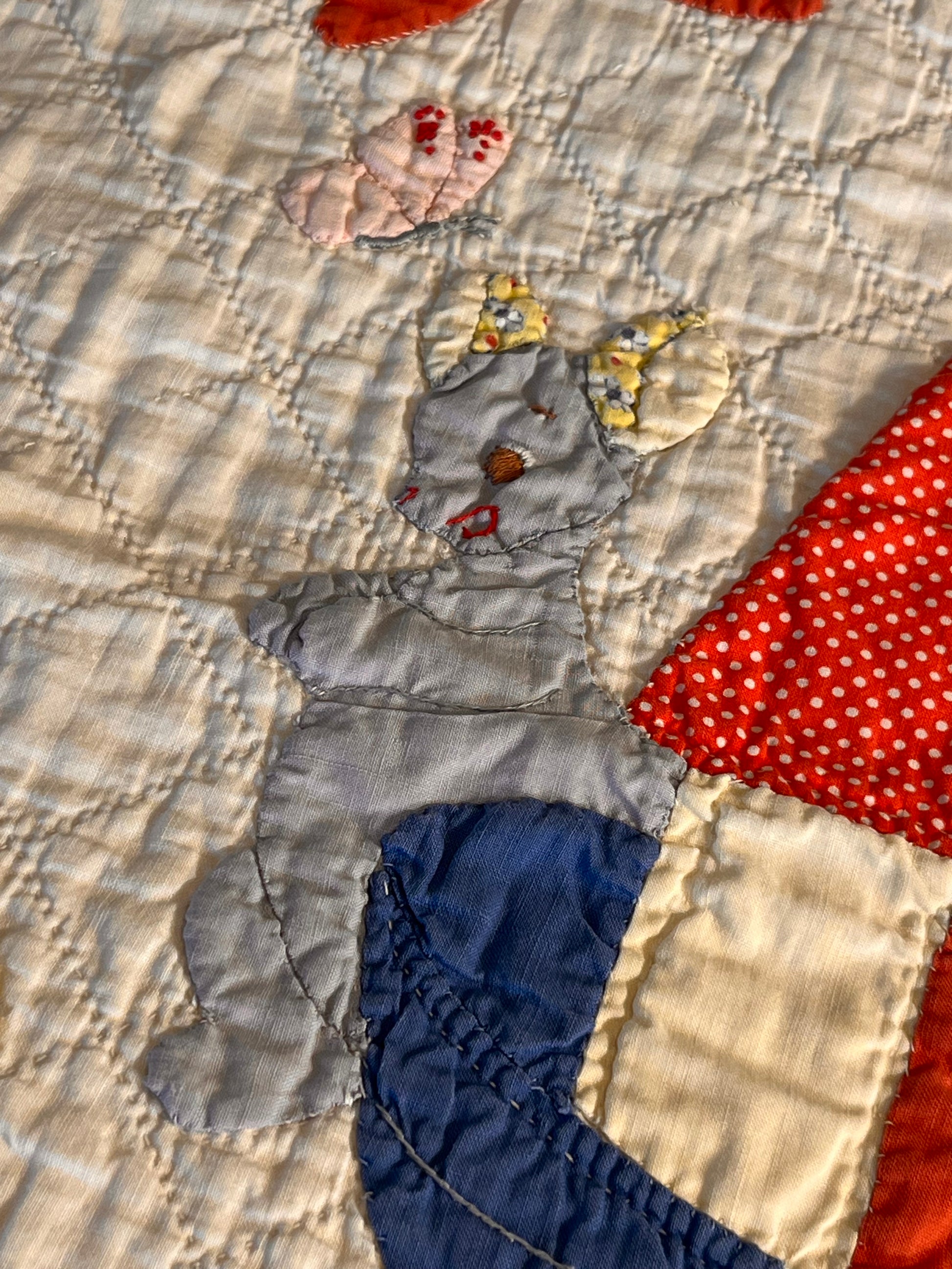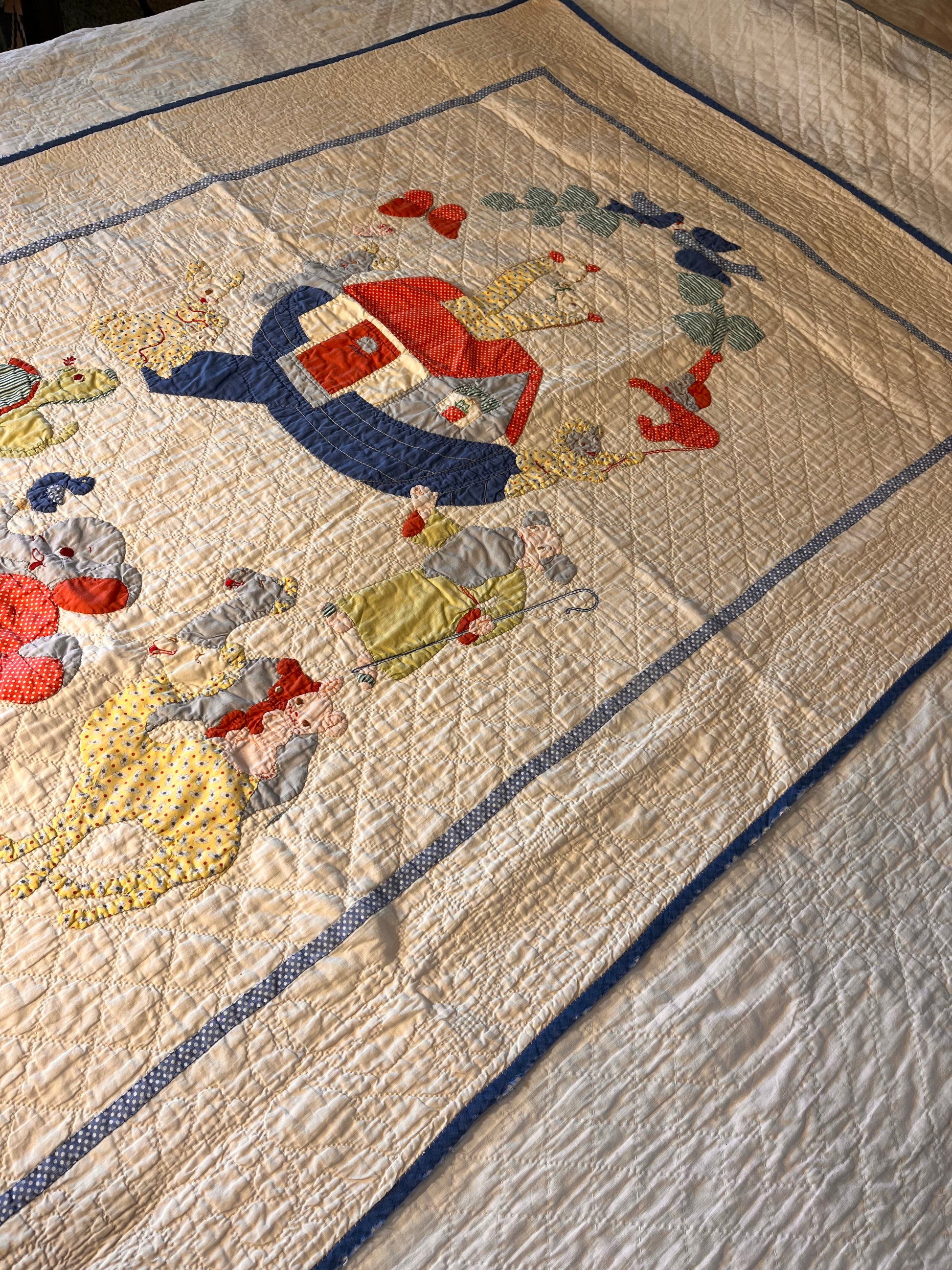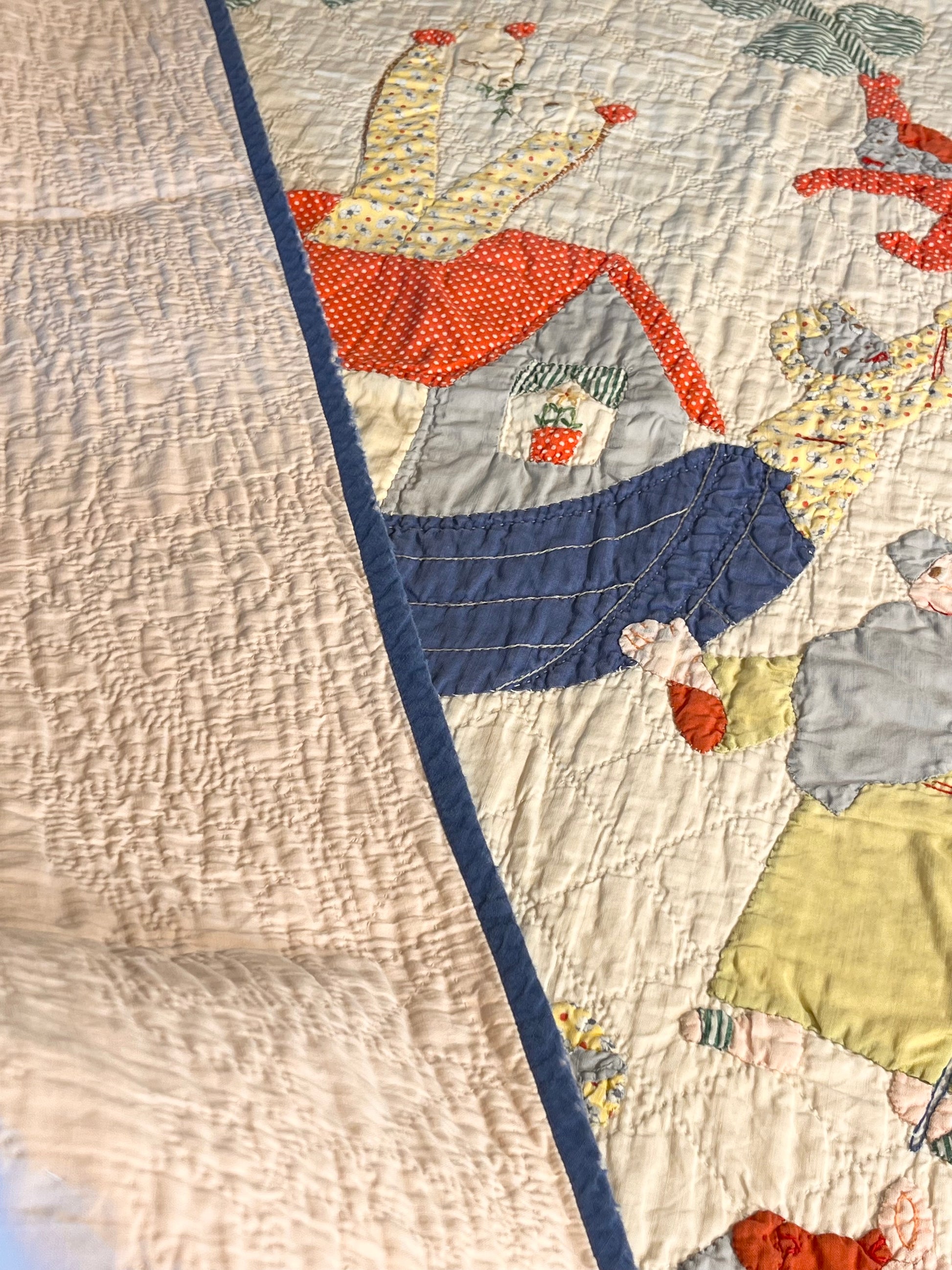 A vintage circa 1940’s hand quilted and hand appliqué quilt.