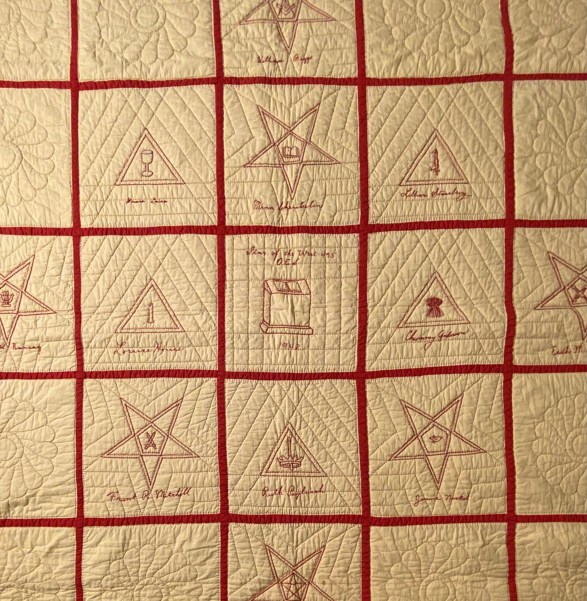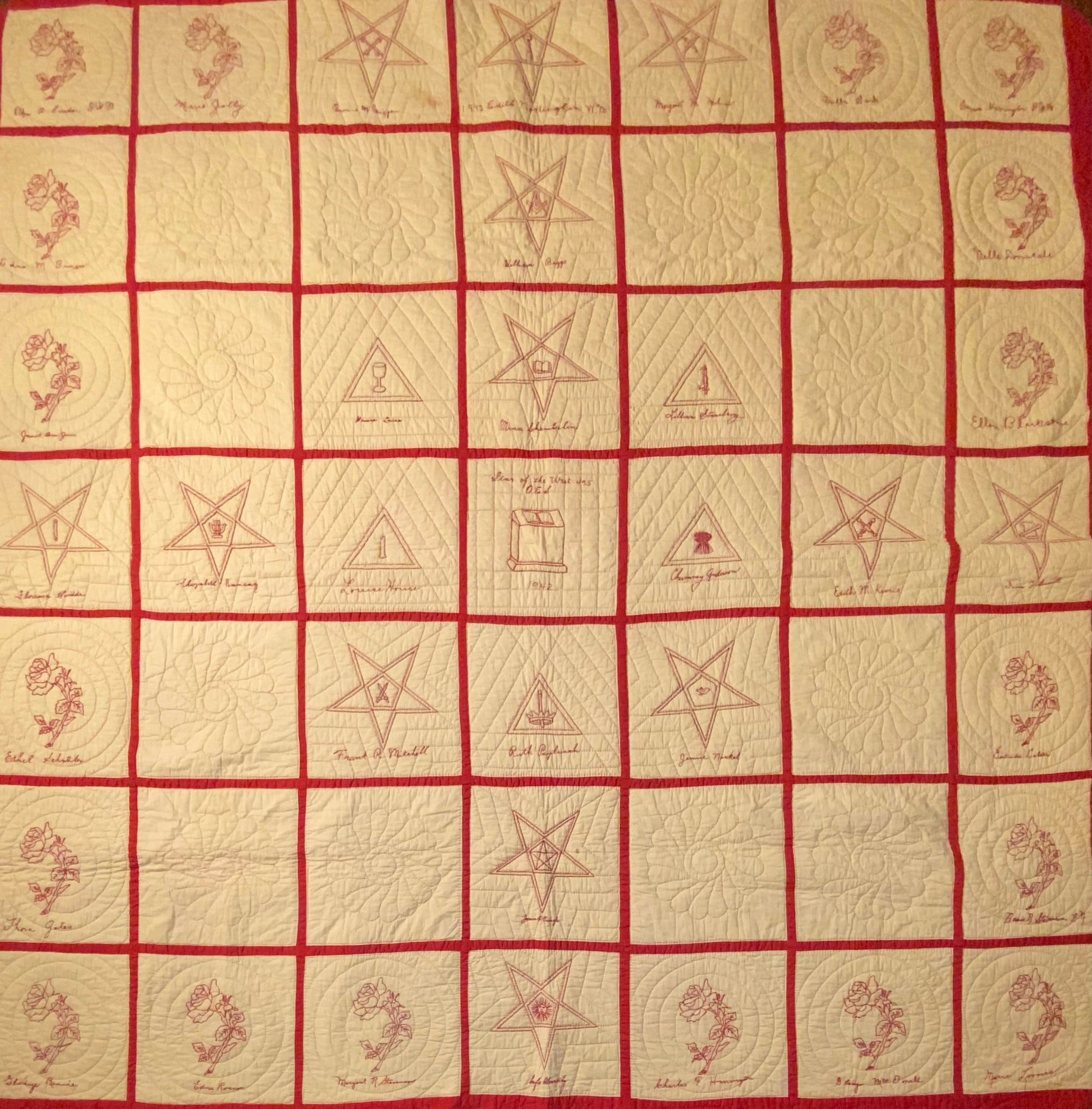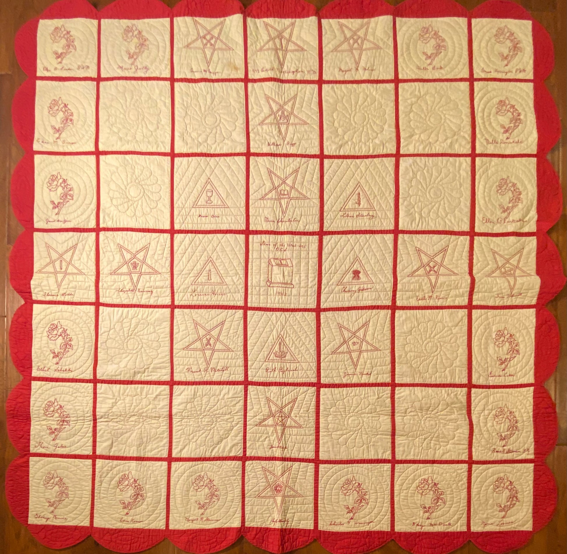 Historical highly detailed Order of the Eastern Star Quilt with provenance.