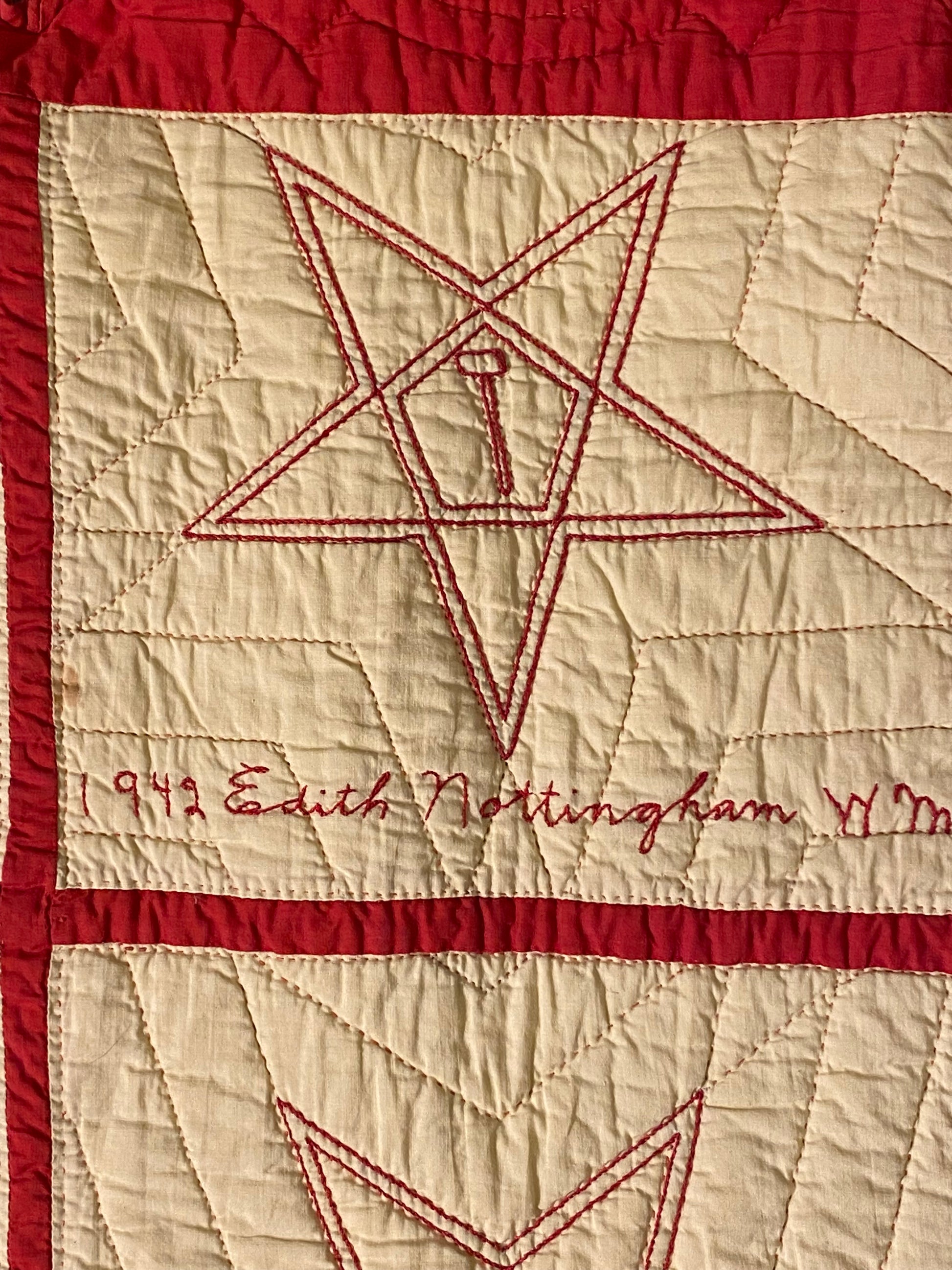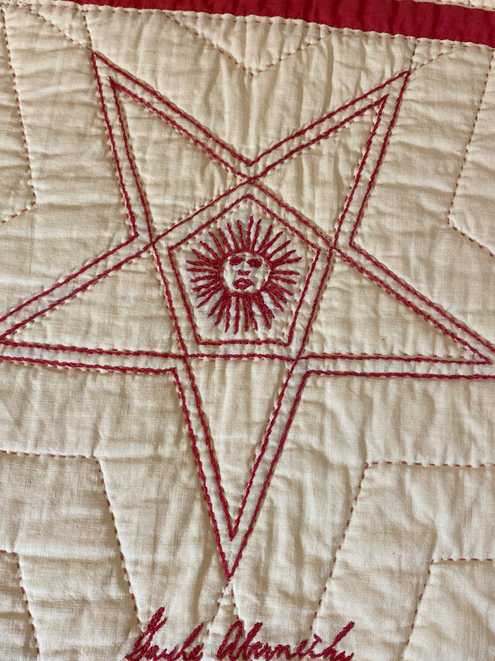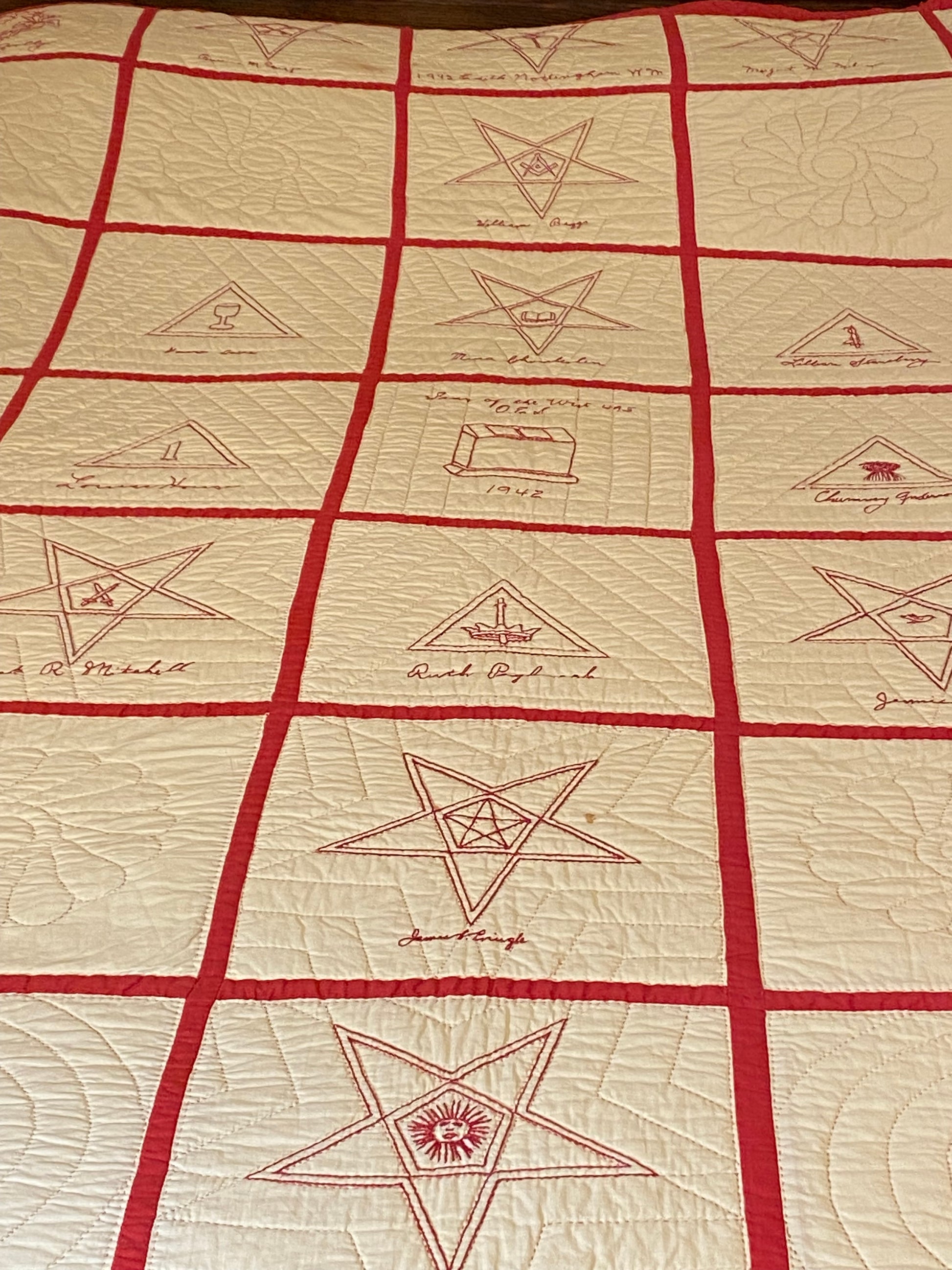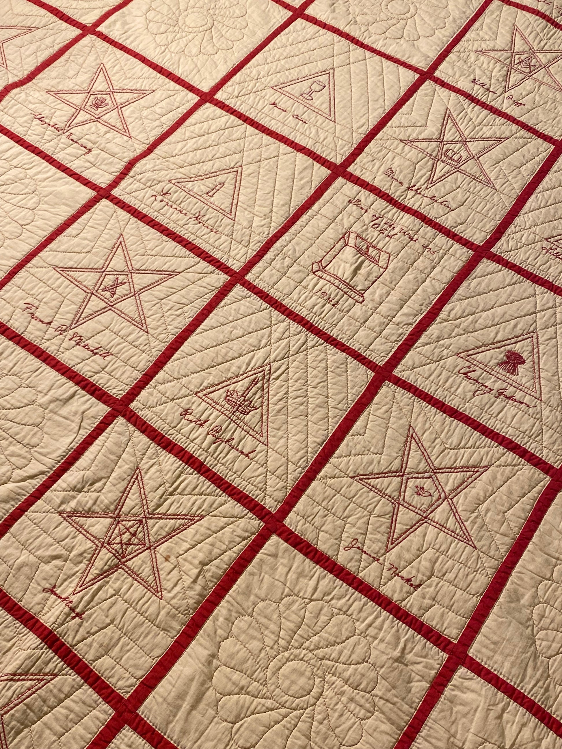 Historical highly detailed Order of the Eastern Star Quilt with provenance.