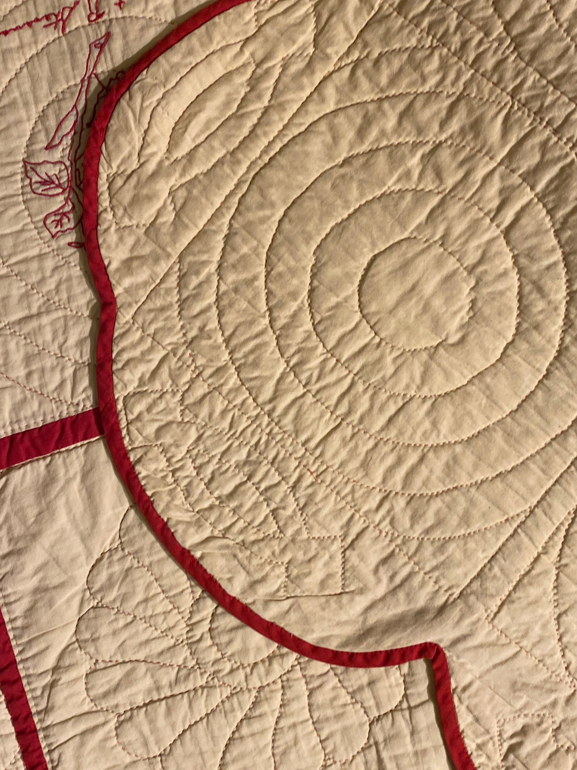 The quilt looks Ike it was really just stored and unused, maybe displayed. It has some minor age toning as it’s unwashed and noting no wear.