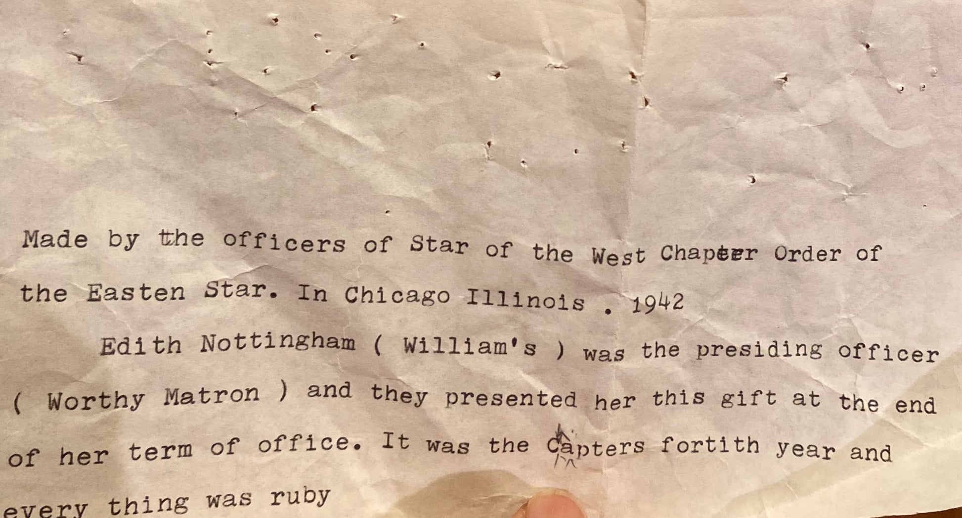 The officers of the Star of the West Chapter in the Chicago, Illinois area made the quilt.