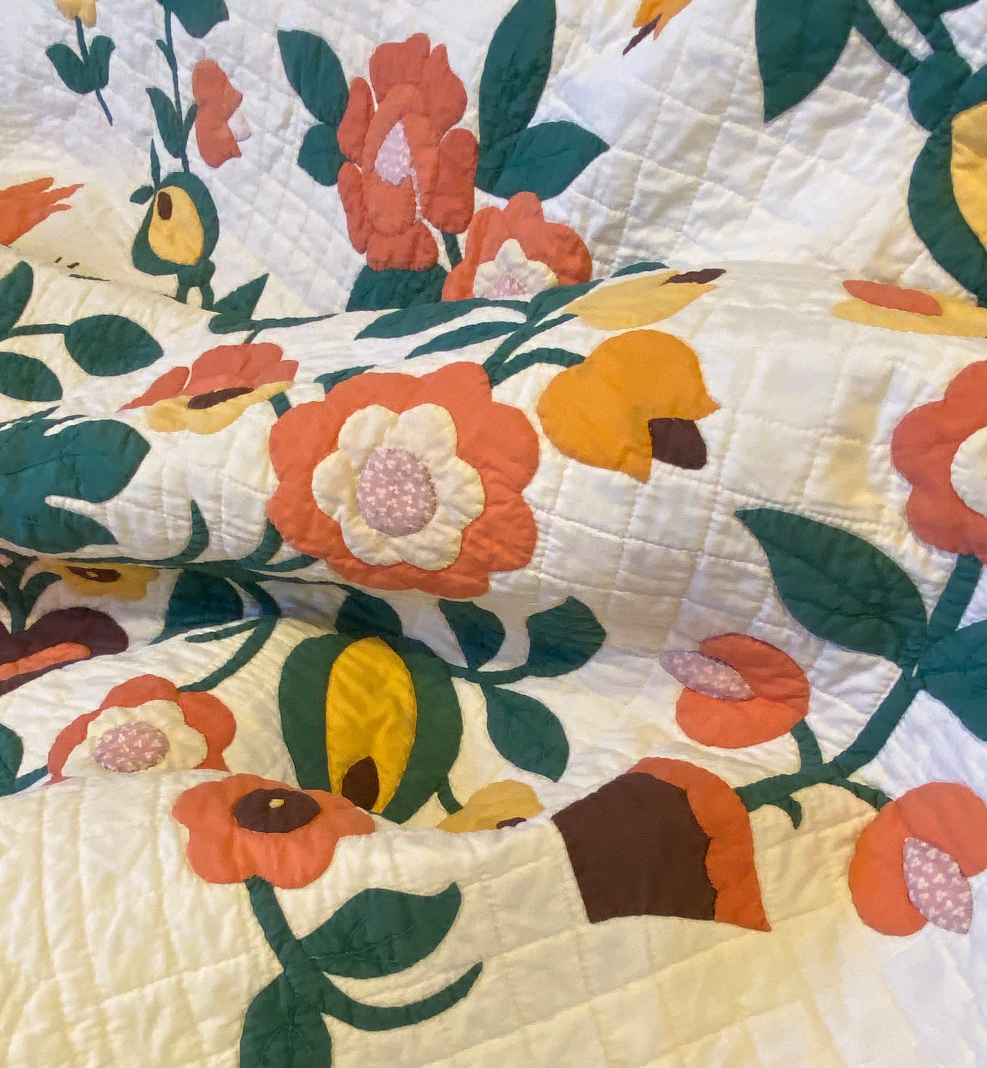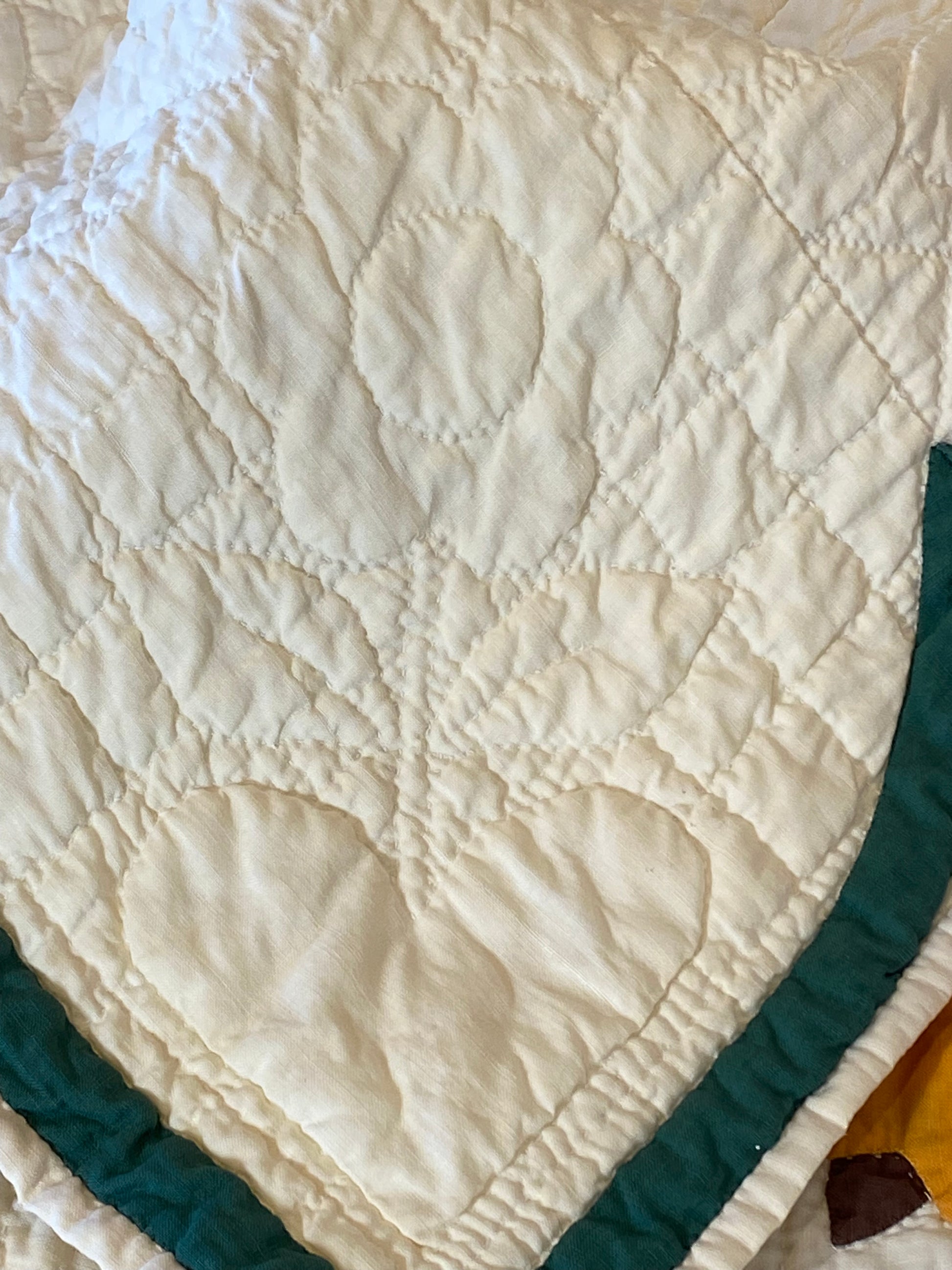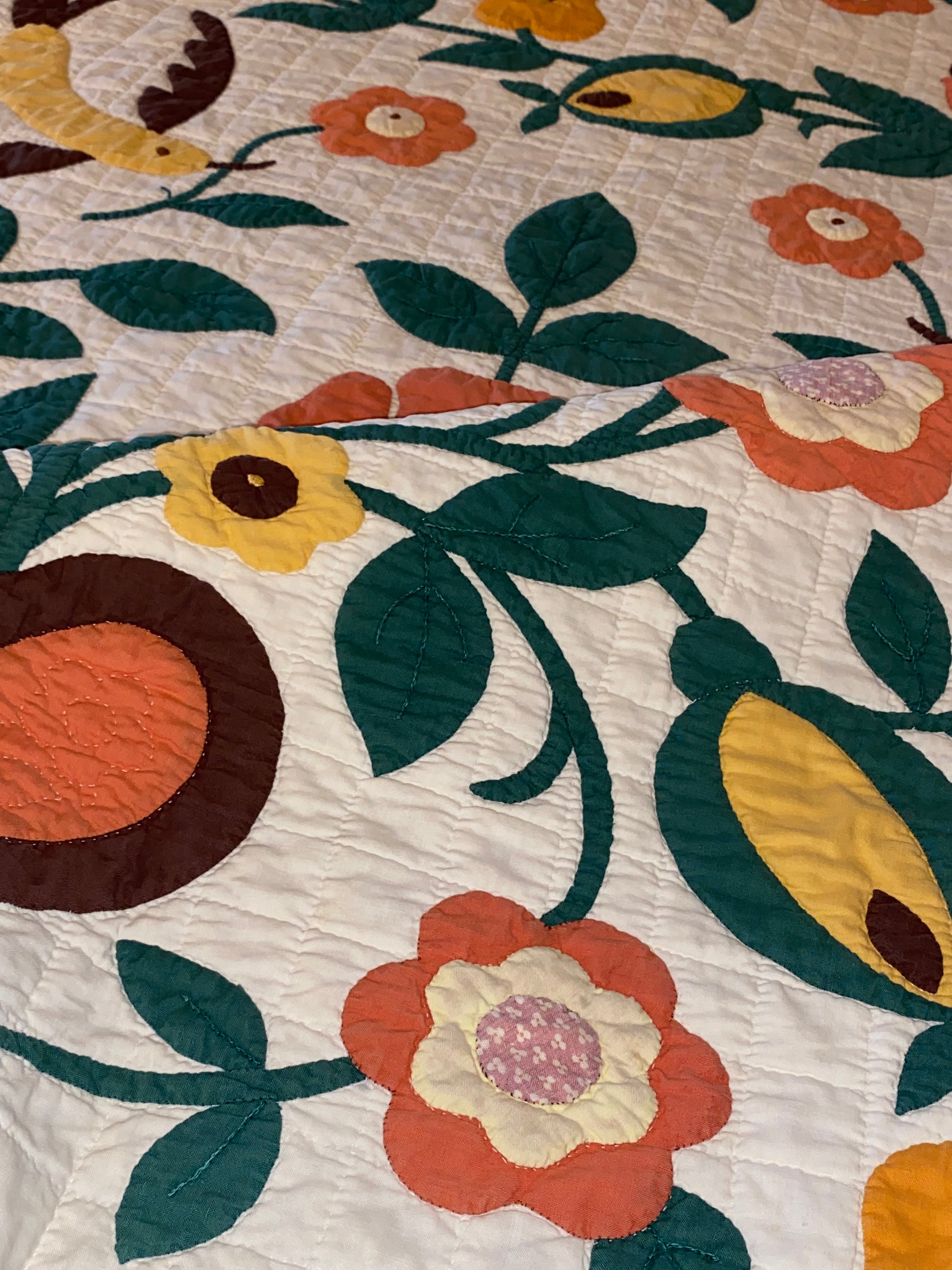 A circa 1940’s vintage quilt that is also beautifully hand quilted and hand applique.
