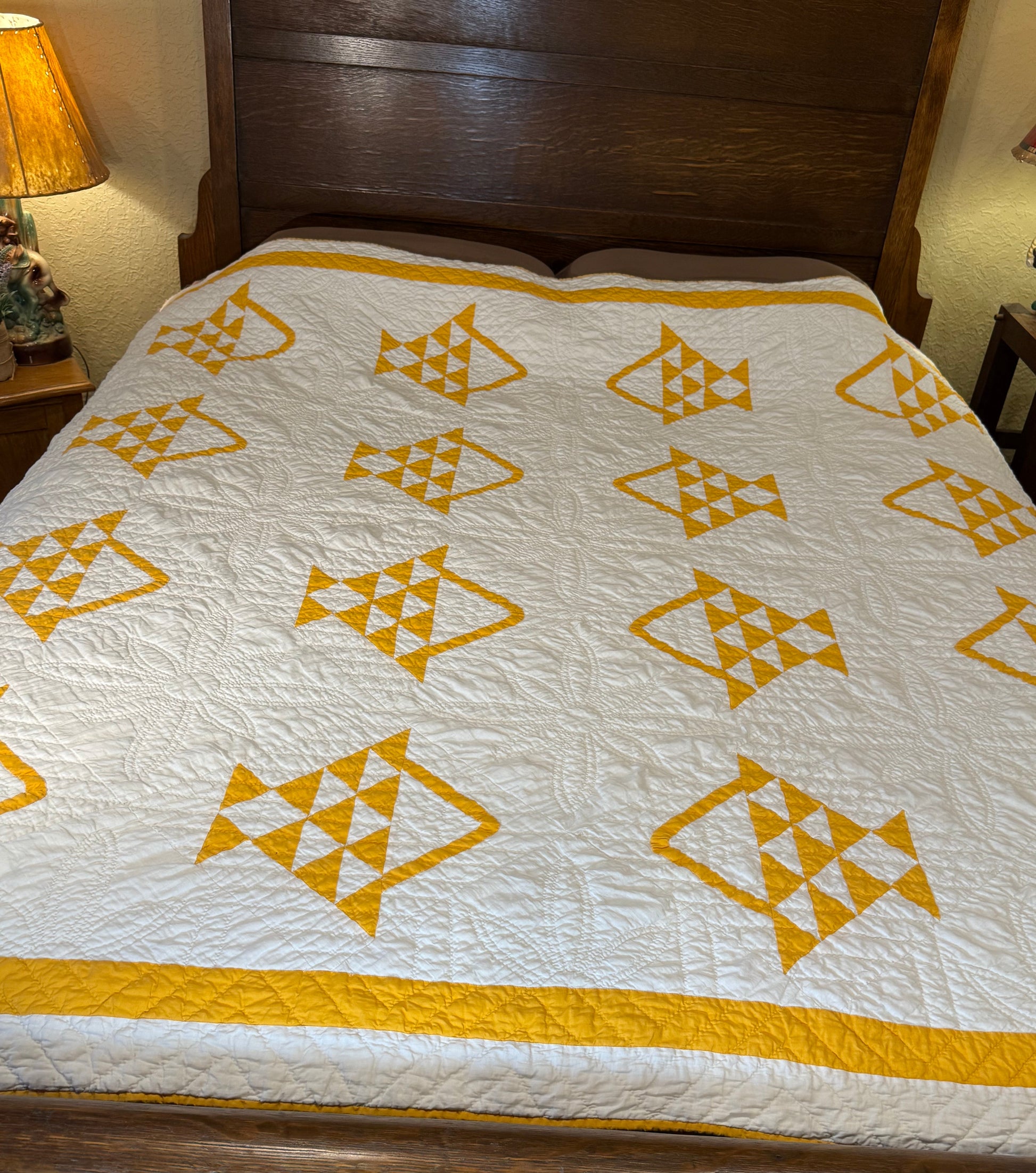 The condition of the quilt is excellent. One tiny spot of binding wear was noted.
