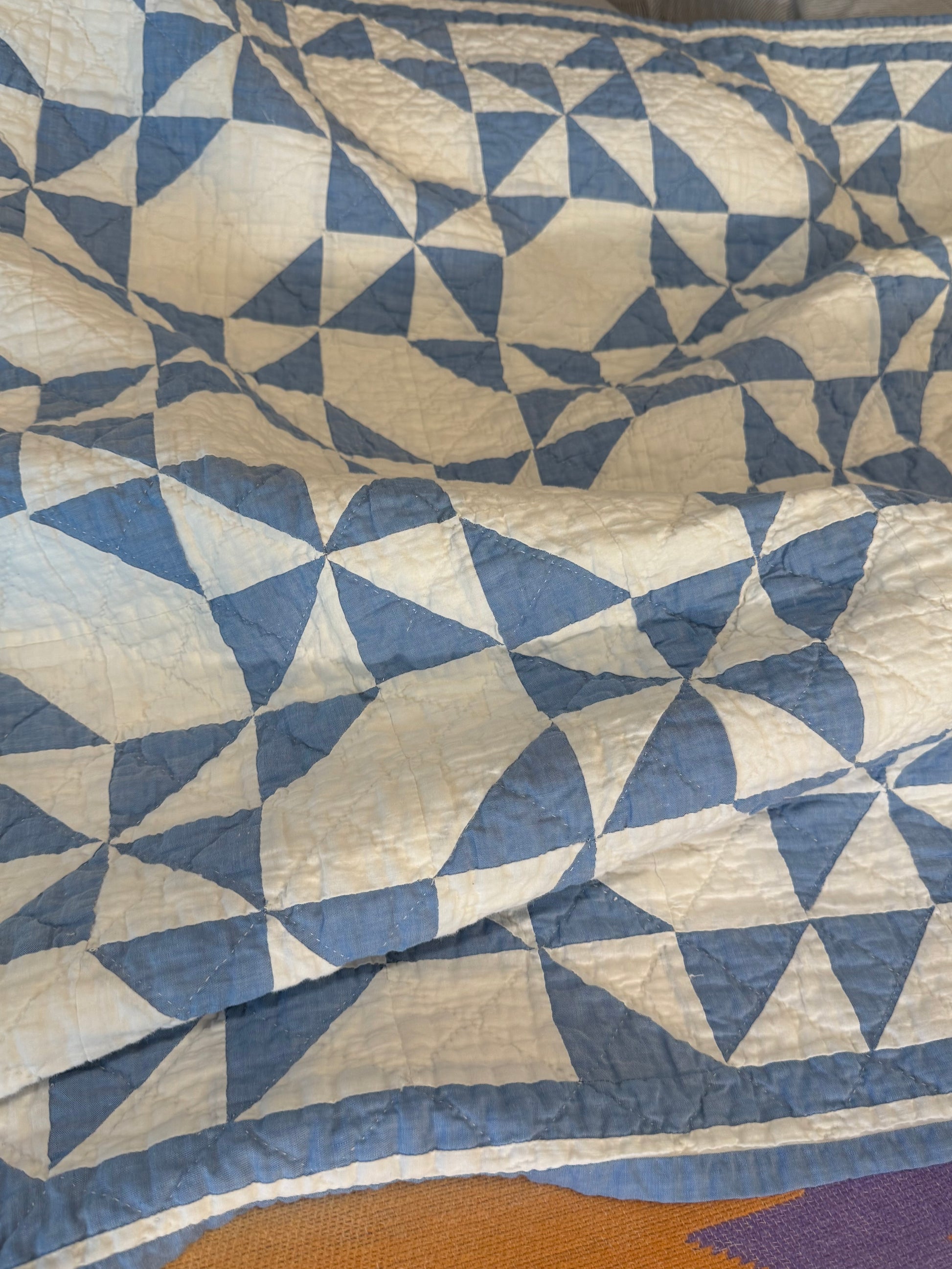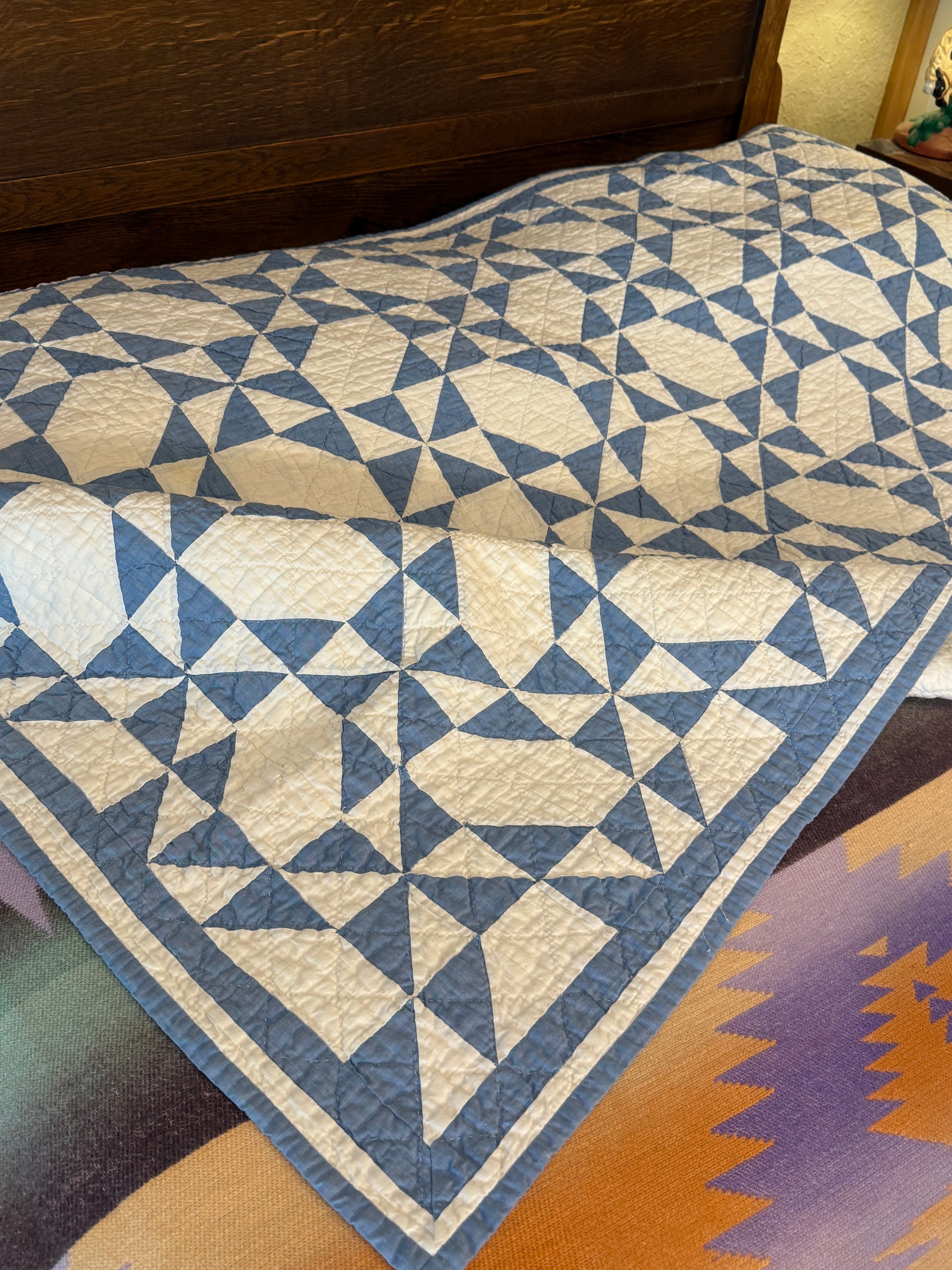 Pinwheel Stars in Blue and White - Crib/Youth Quilt