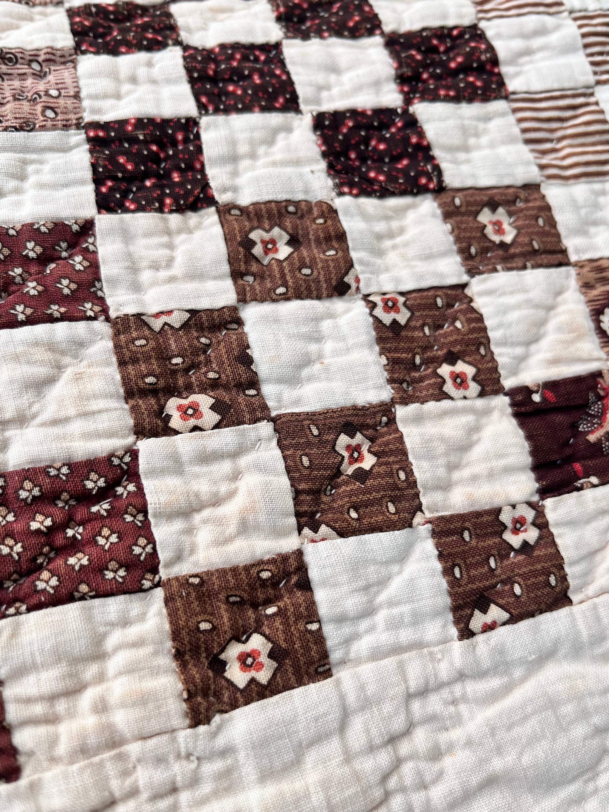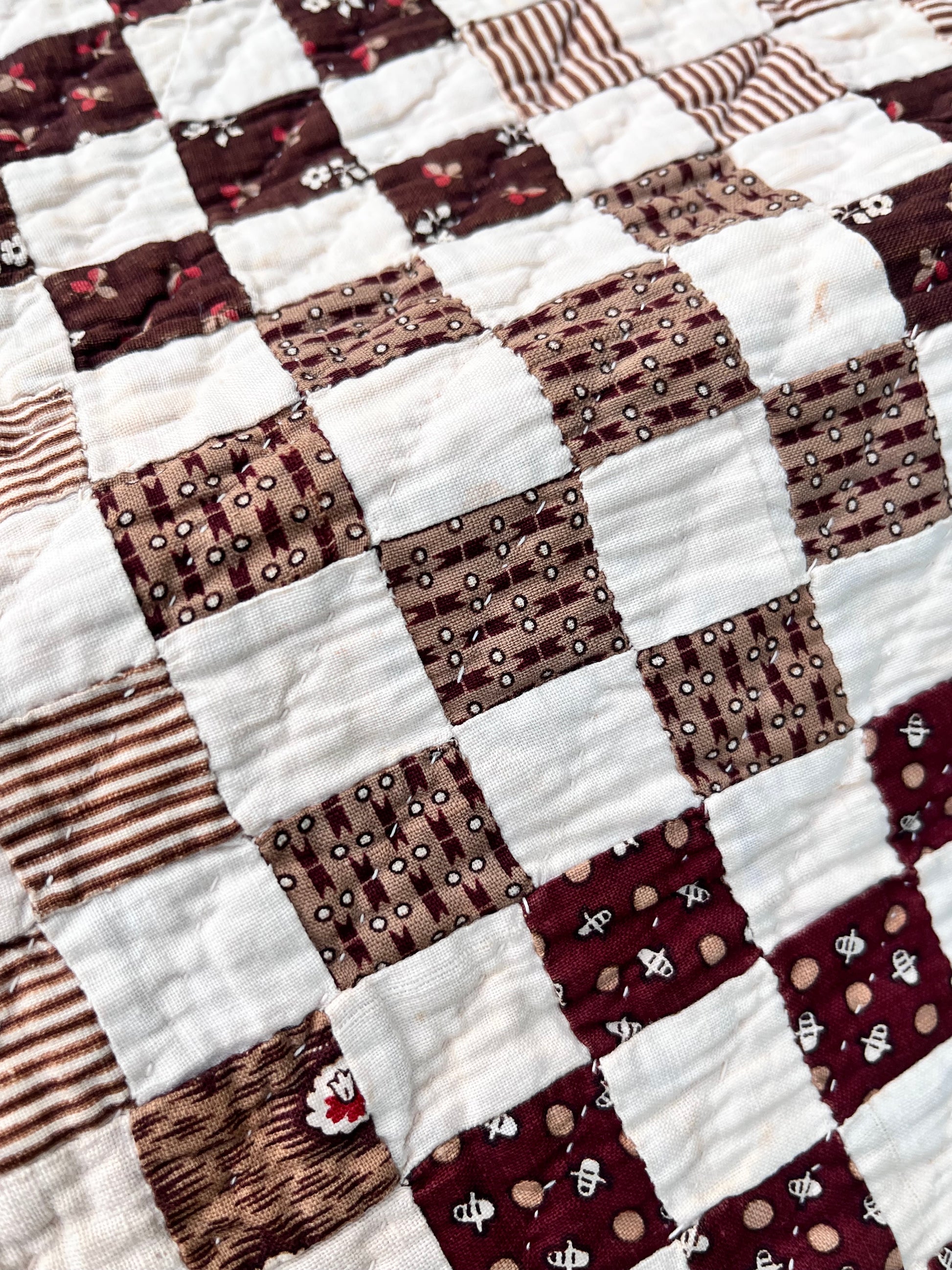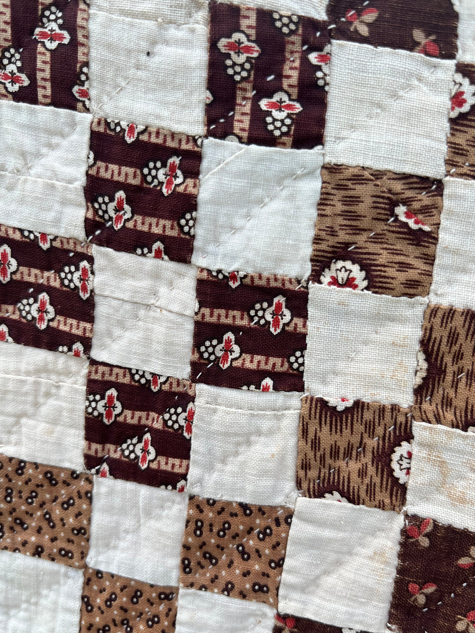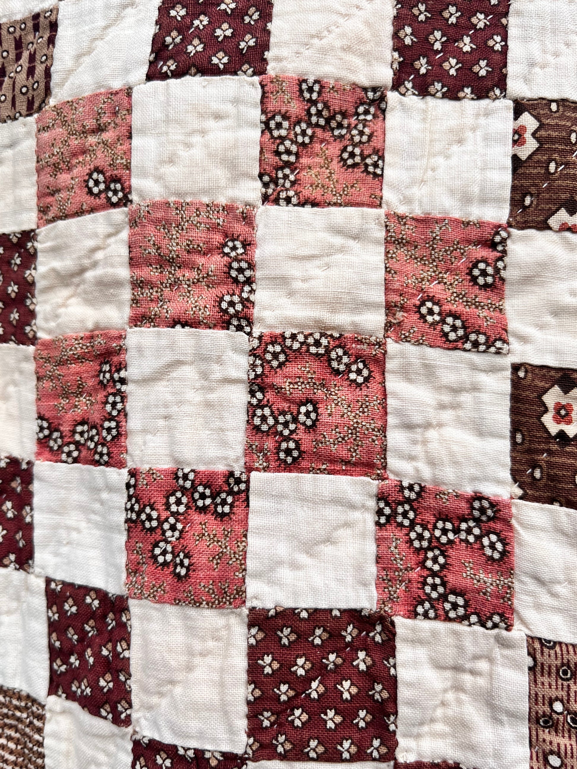 This early One Patch unwashed quilt has some great varieties of fabrics we love from the circa 1860-70’s time period.