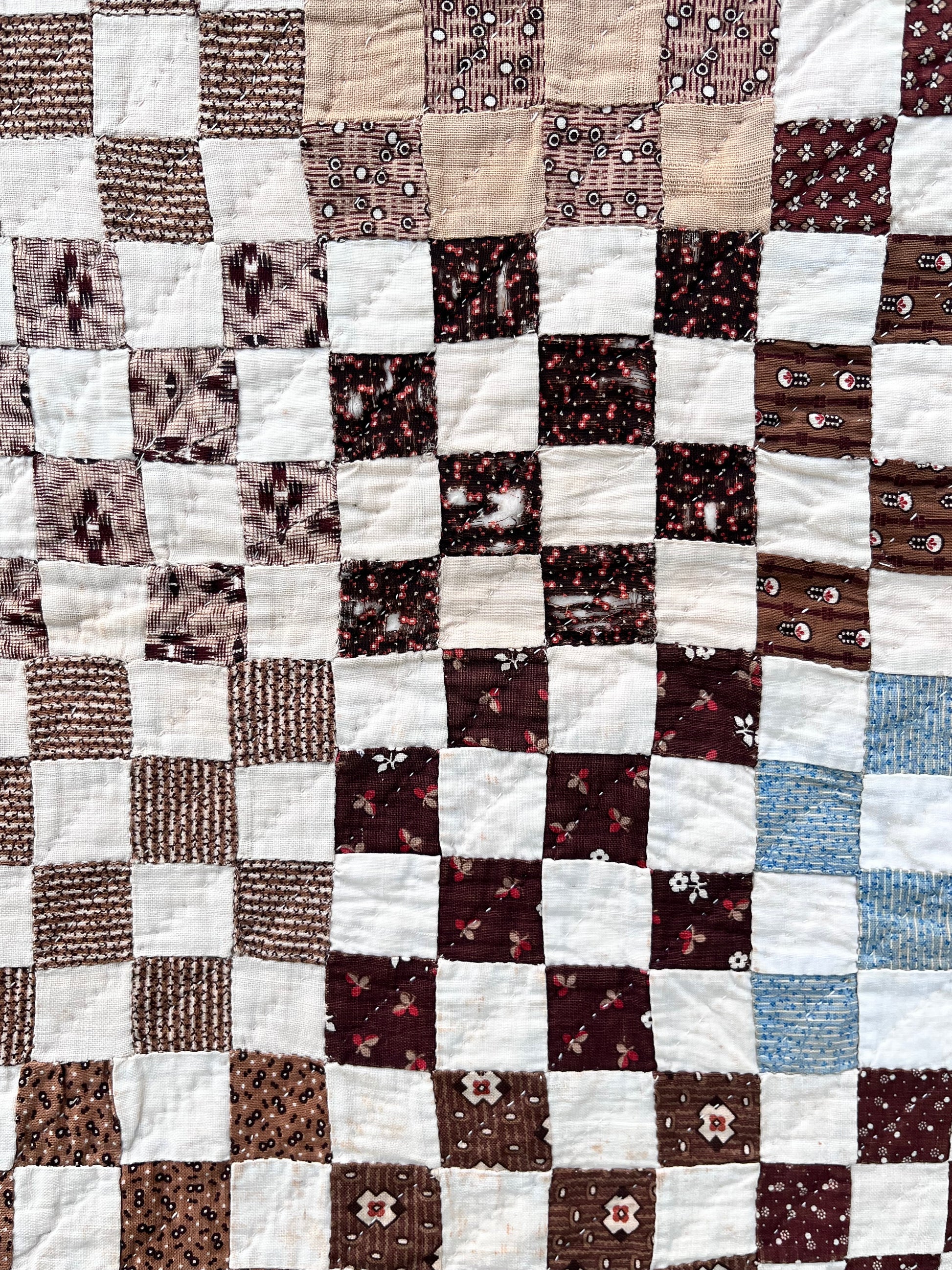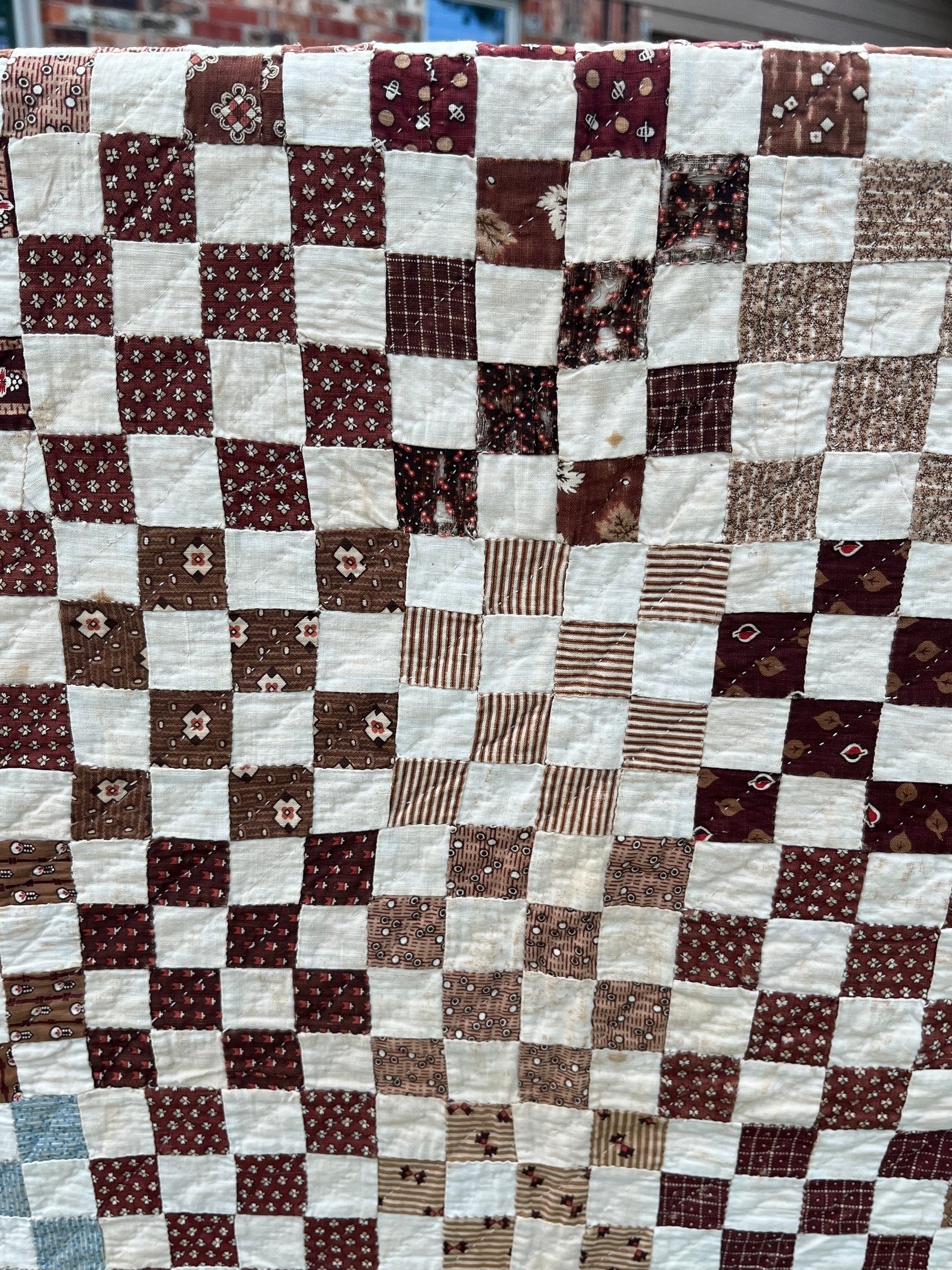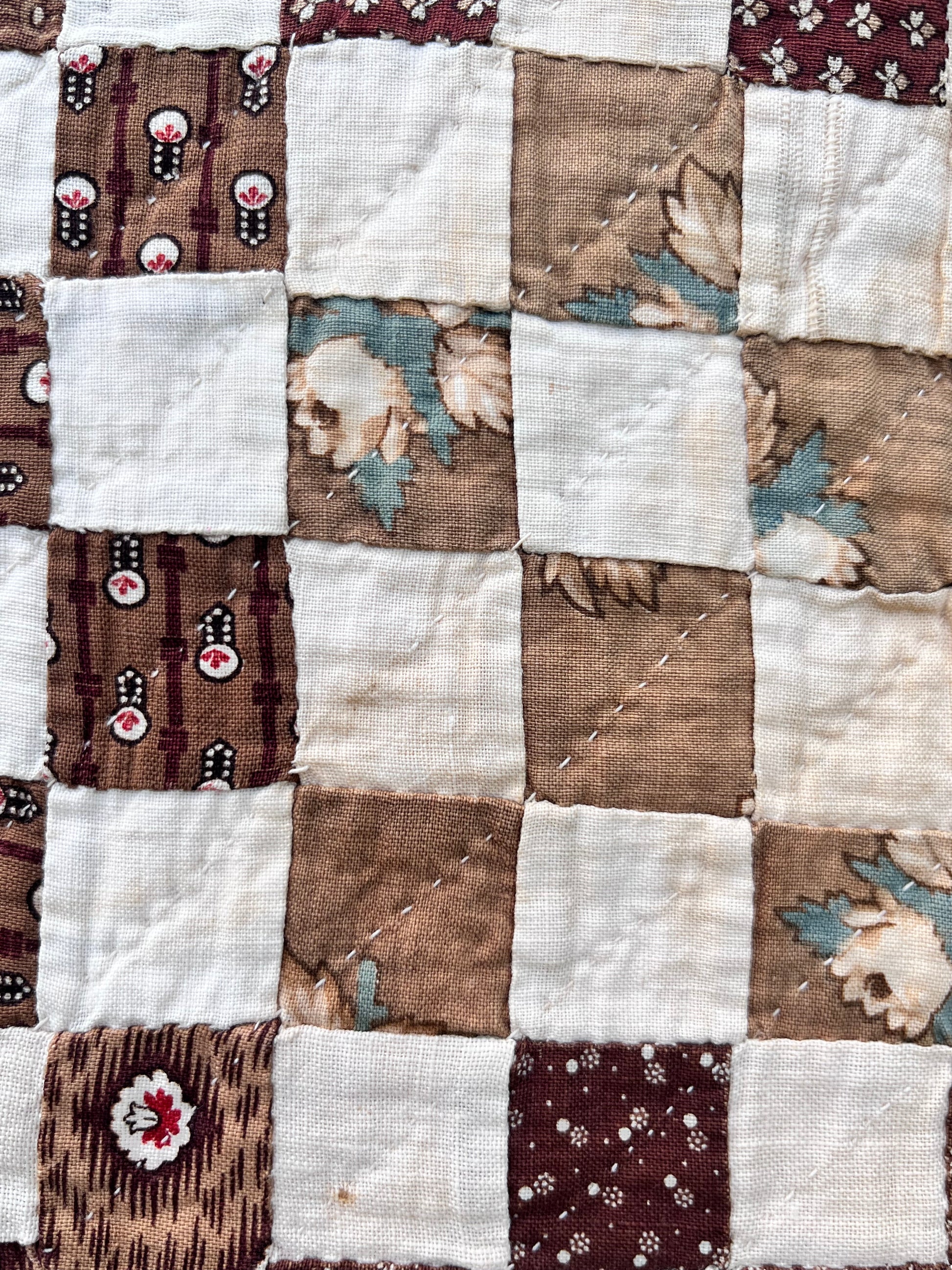 This early One Patch unwashed quilt has some great varieties of fabrics we love from the circa 1860-70’s time period.