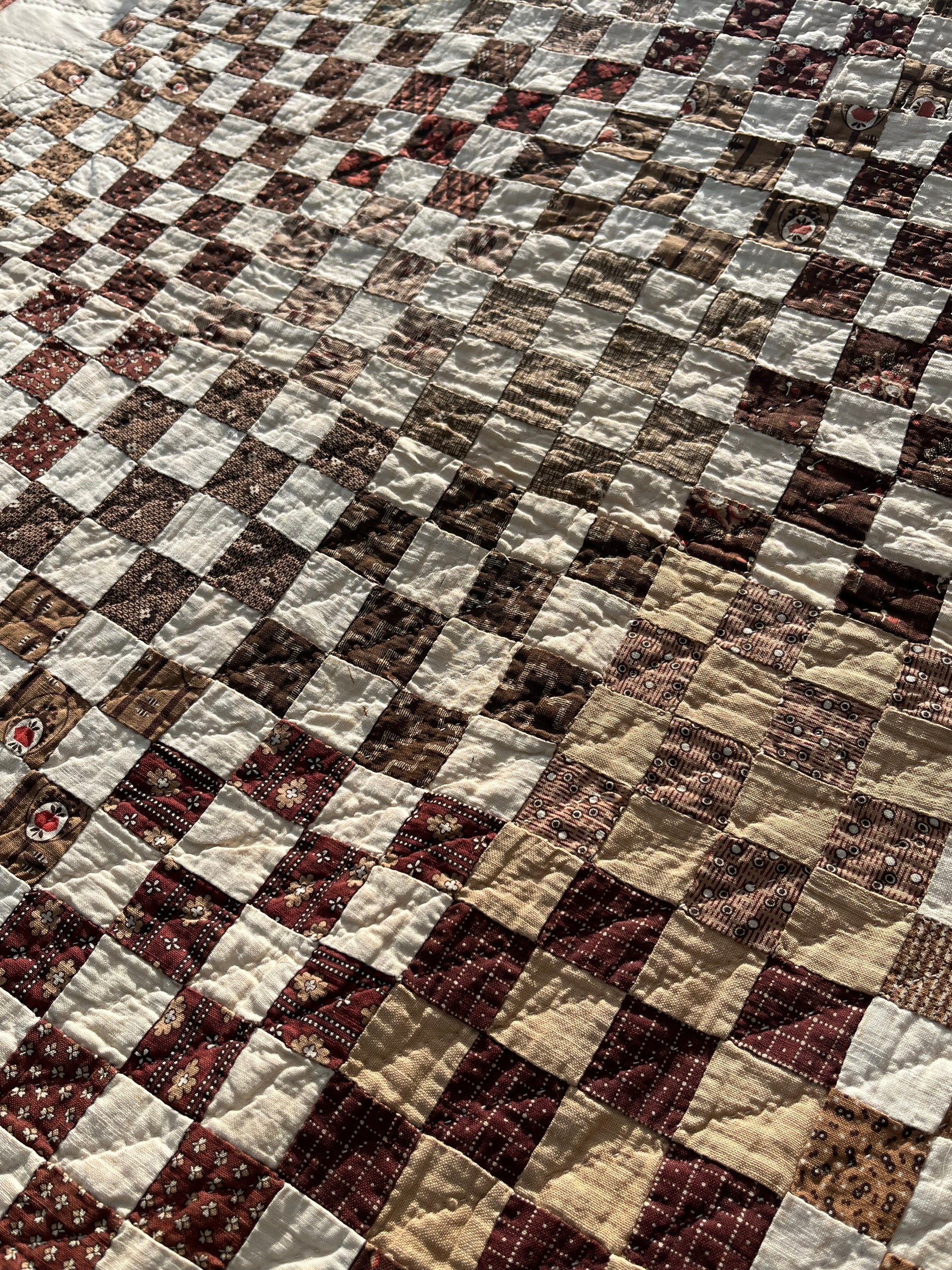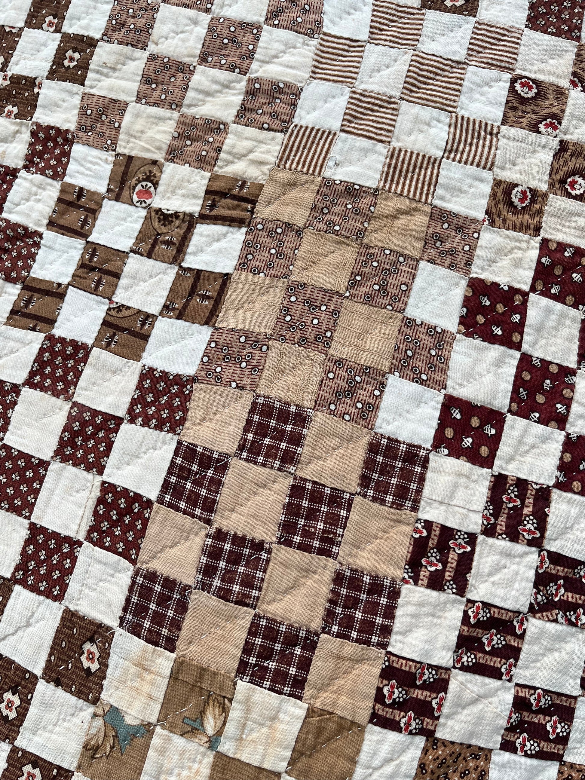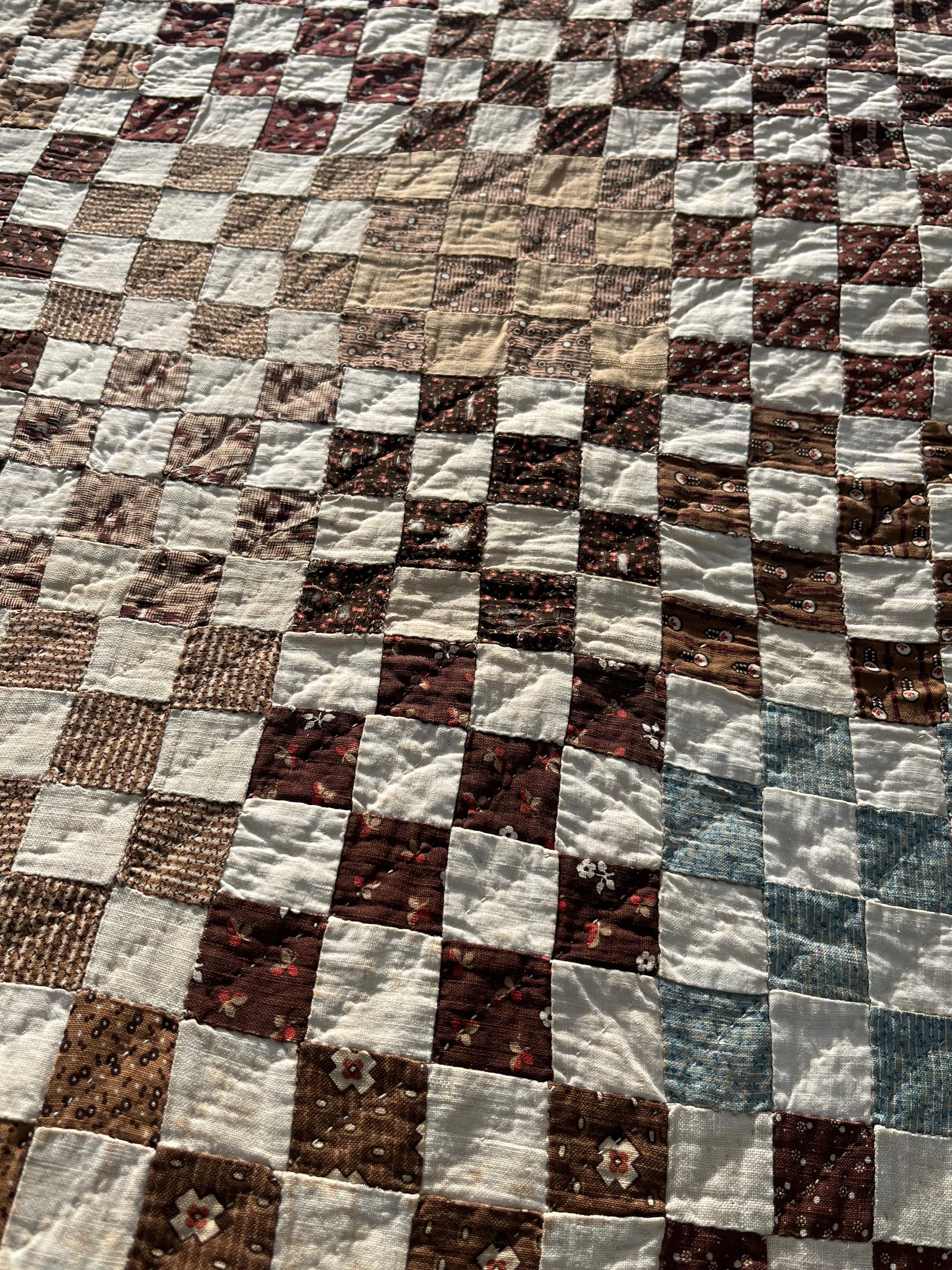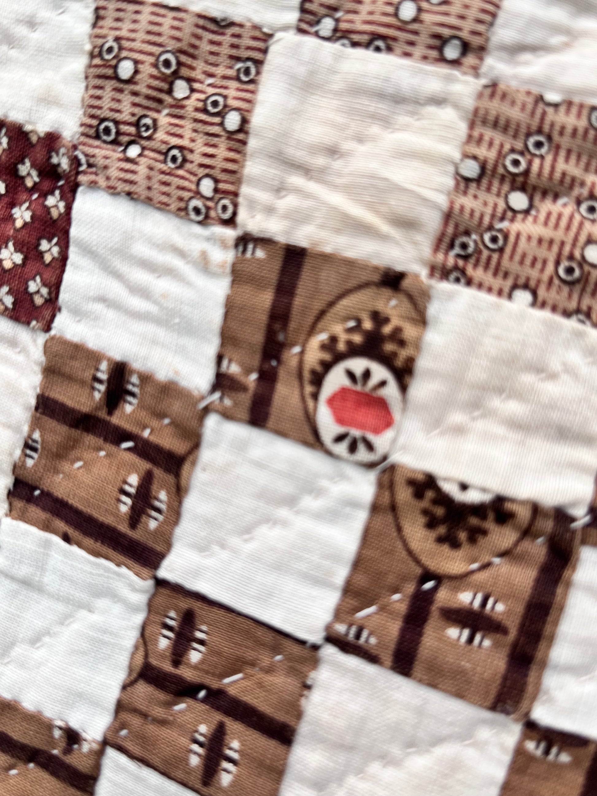 This early One Patch unwashed quilt has some great varieties of fabrics we love from the circa 1860-70’s time period.