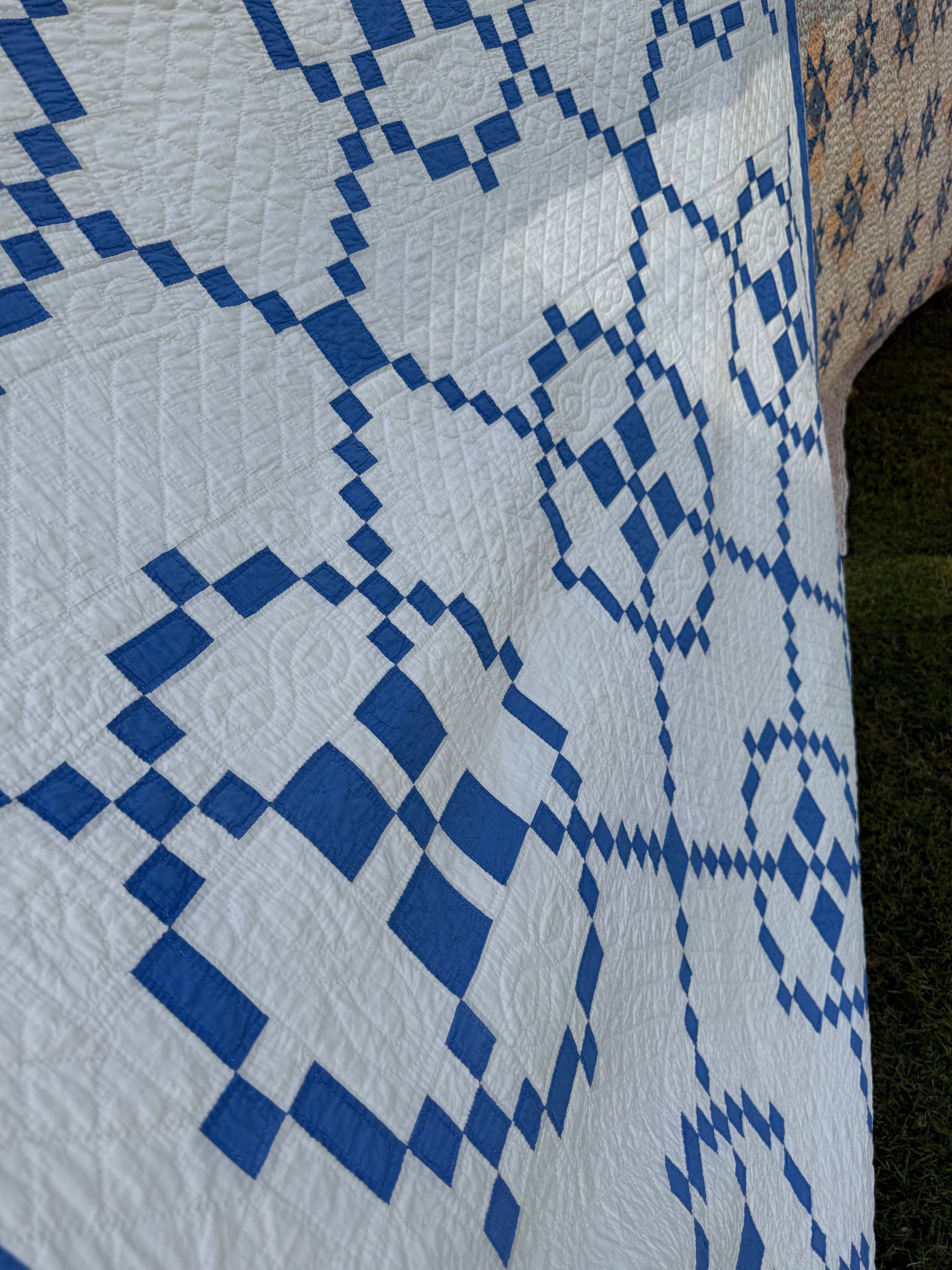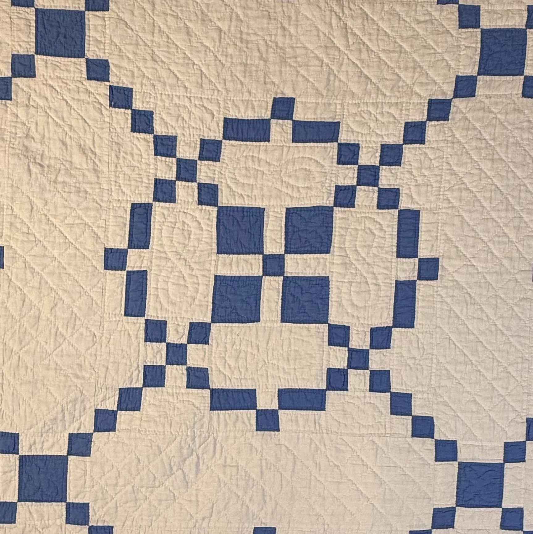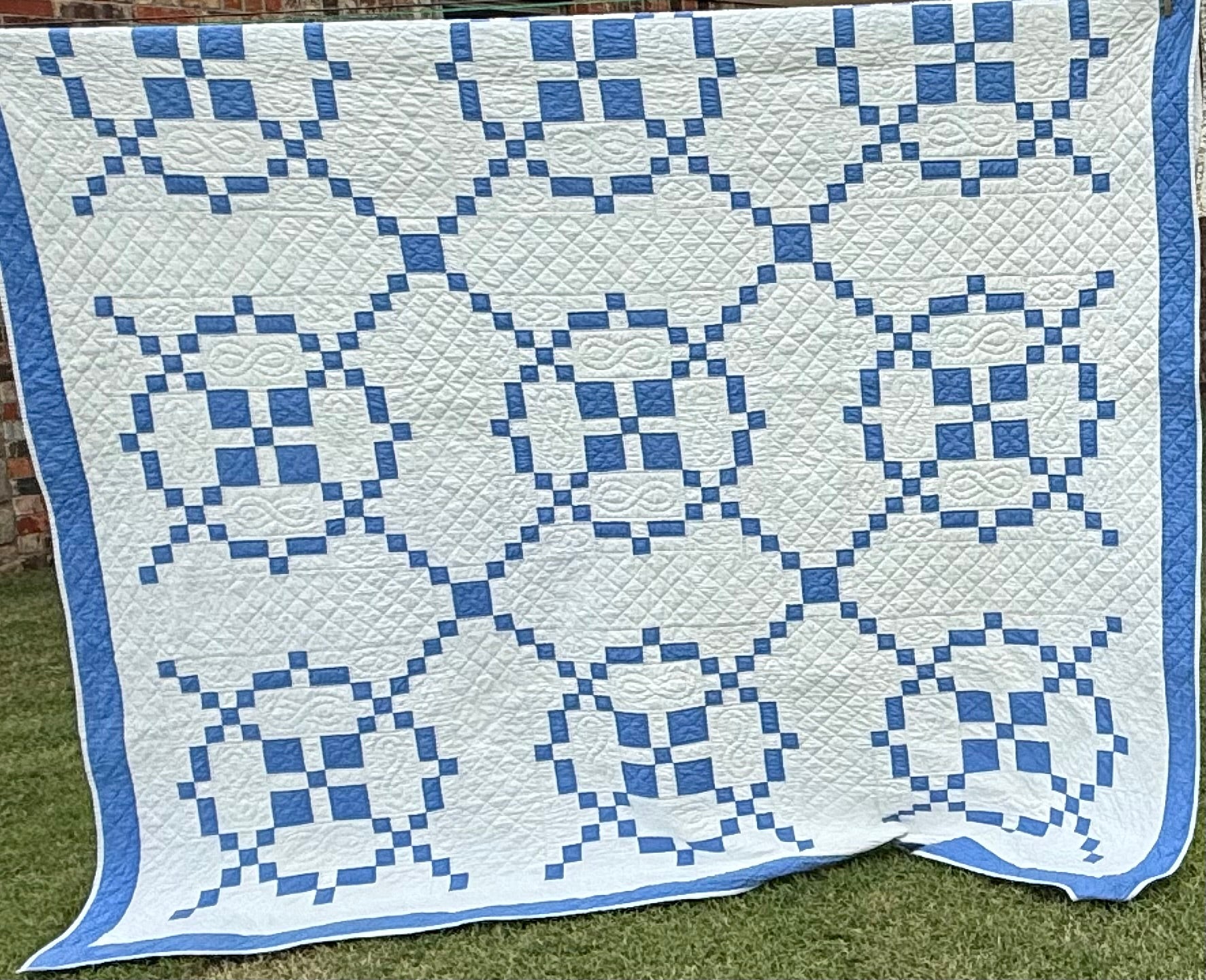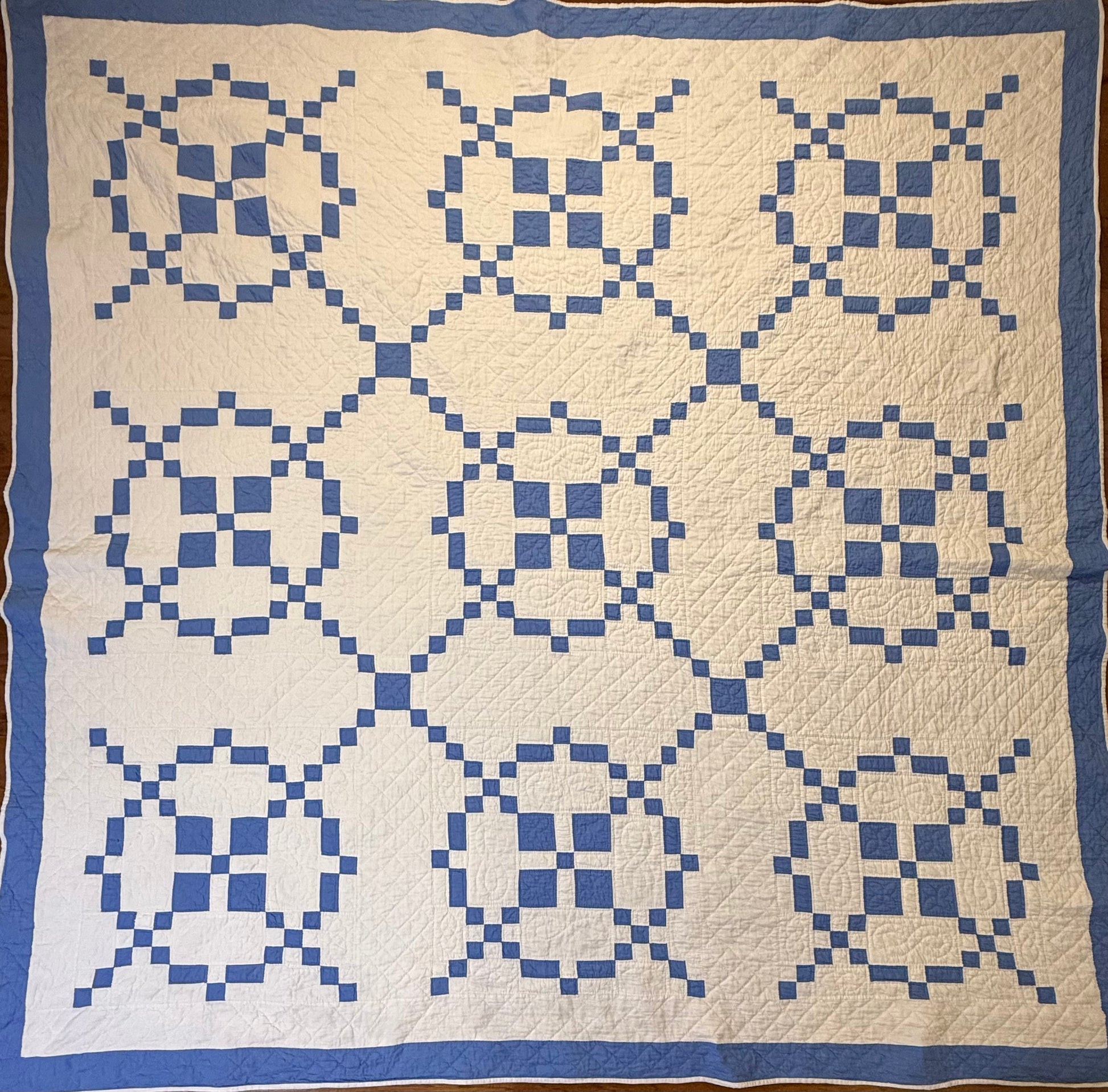 This is an exceptional blue and white quilt, an all American classic, the Burgoyne Surrounded pattern.