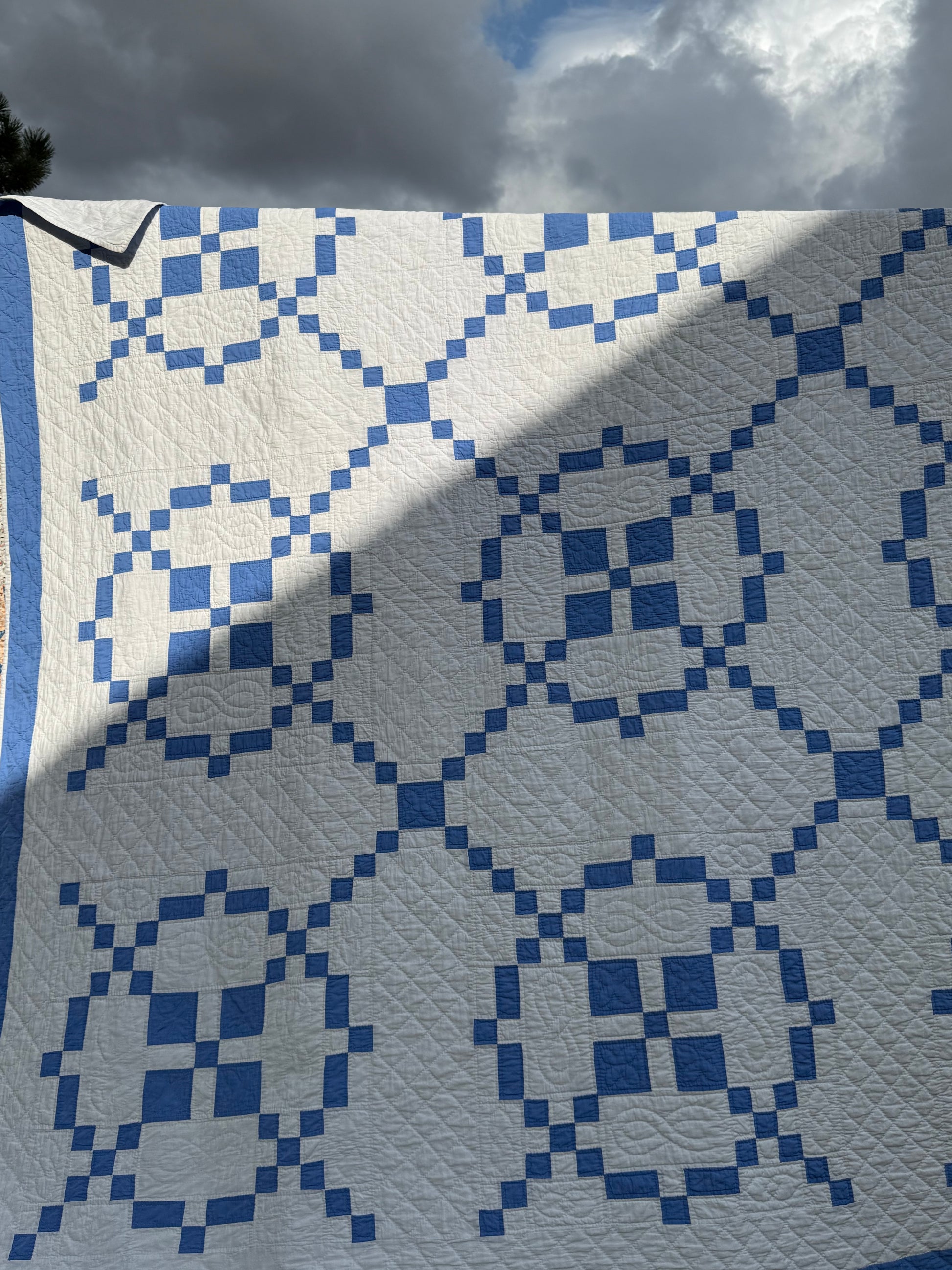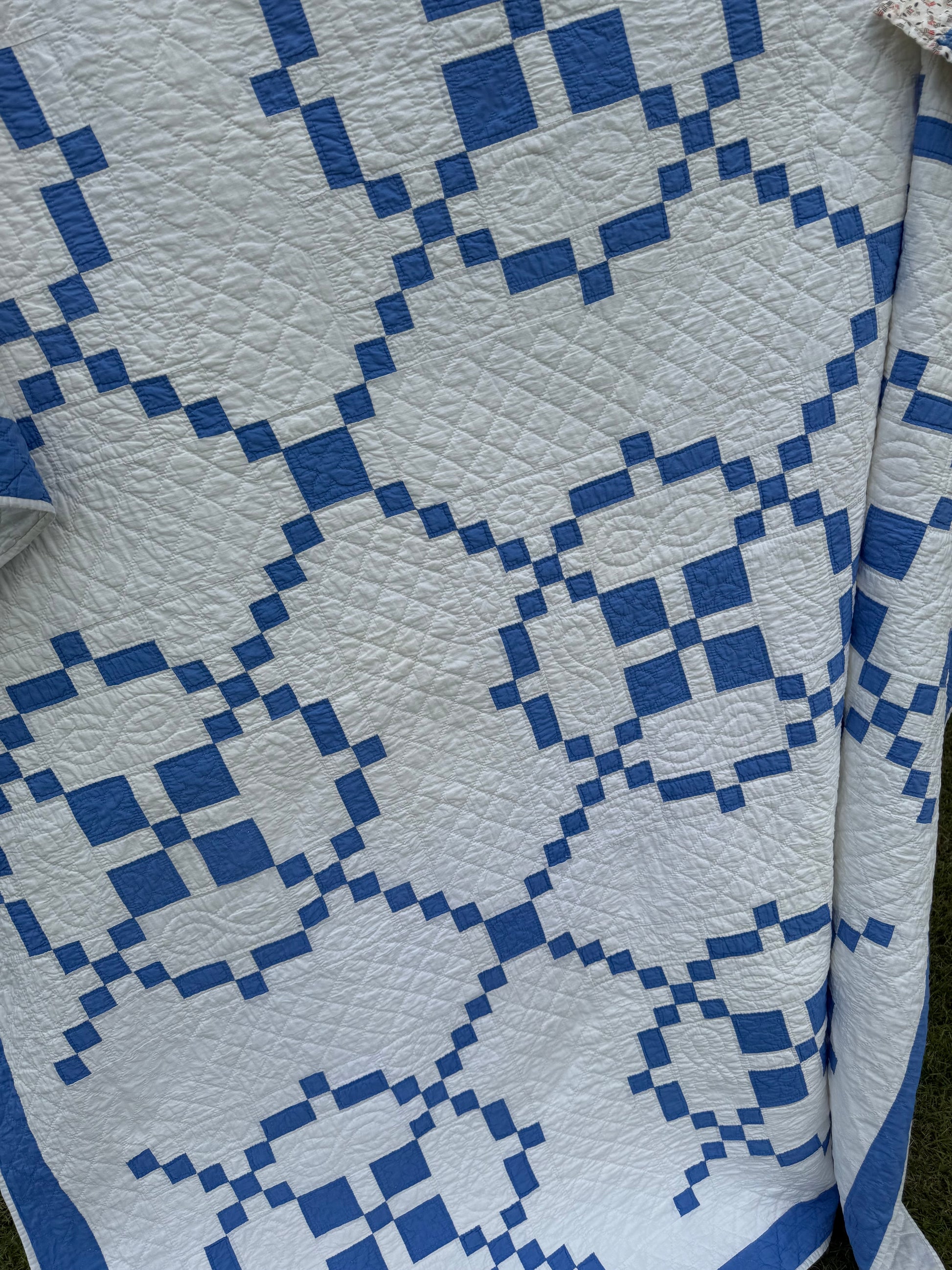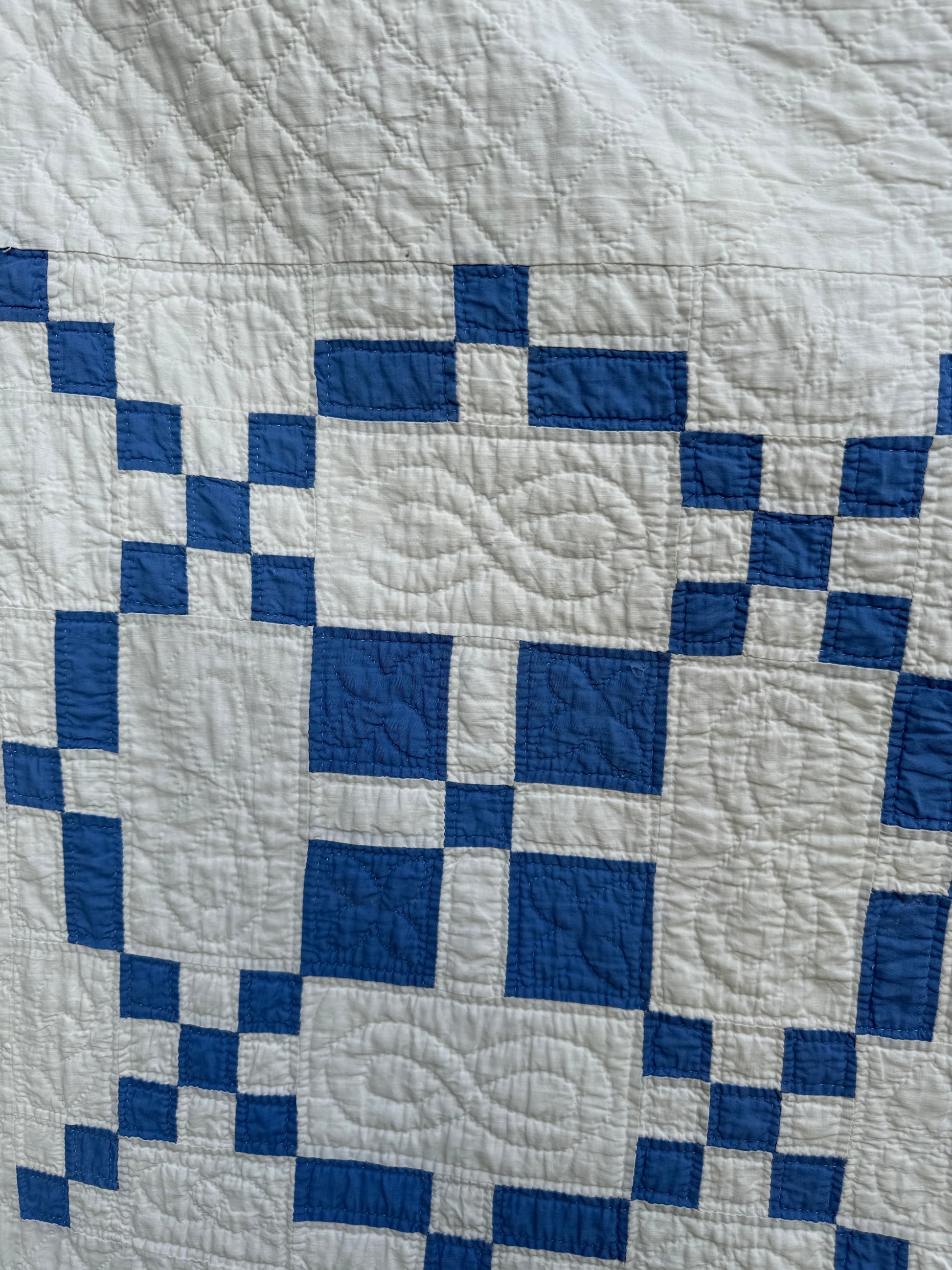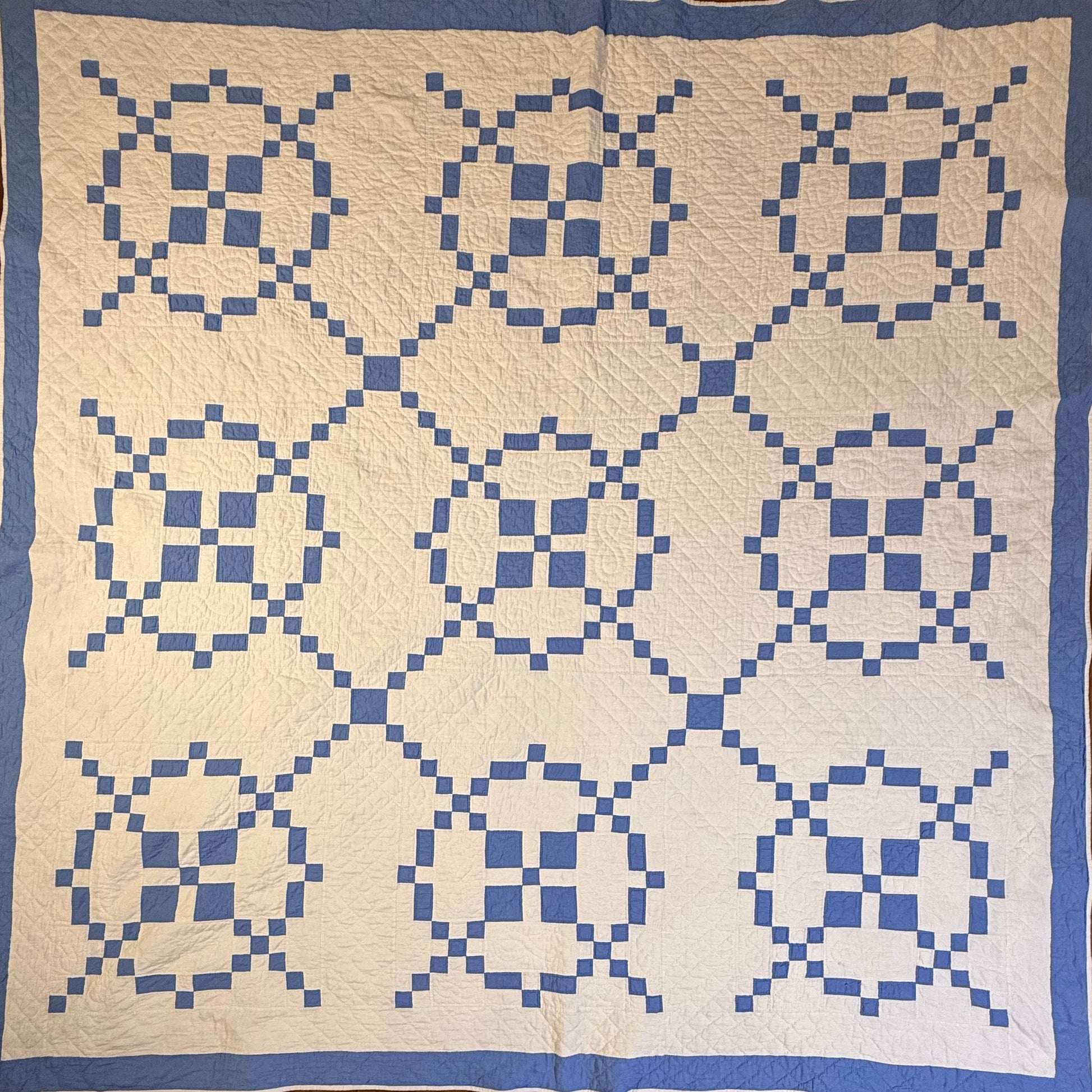 This is an exceptional blue and white quilt, an all American classic, the Burgoyne Surrounded pattern.