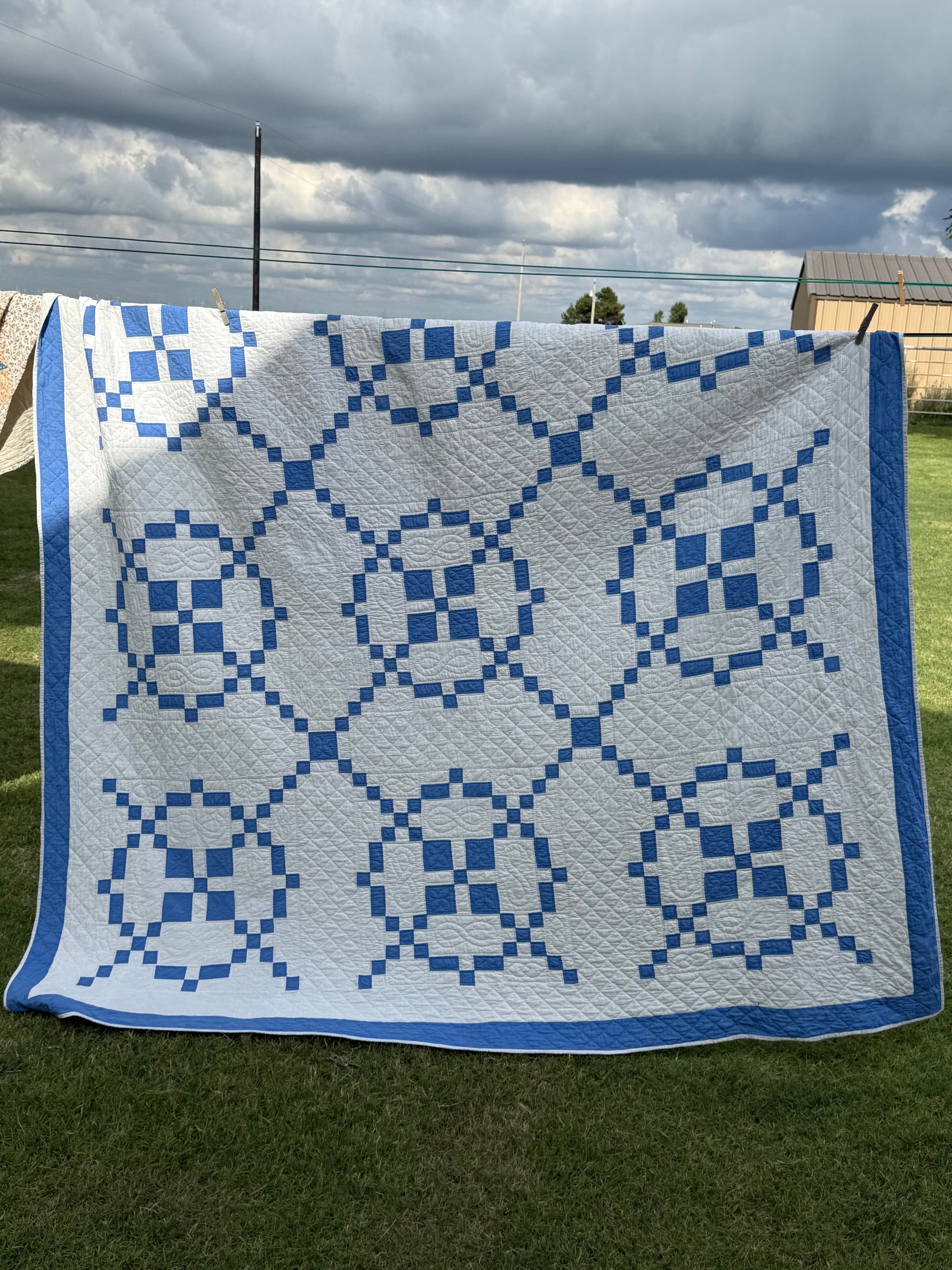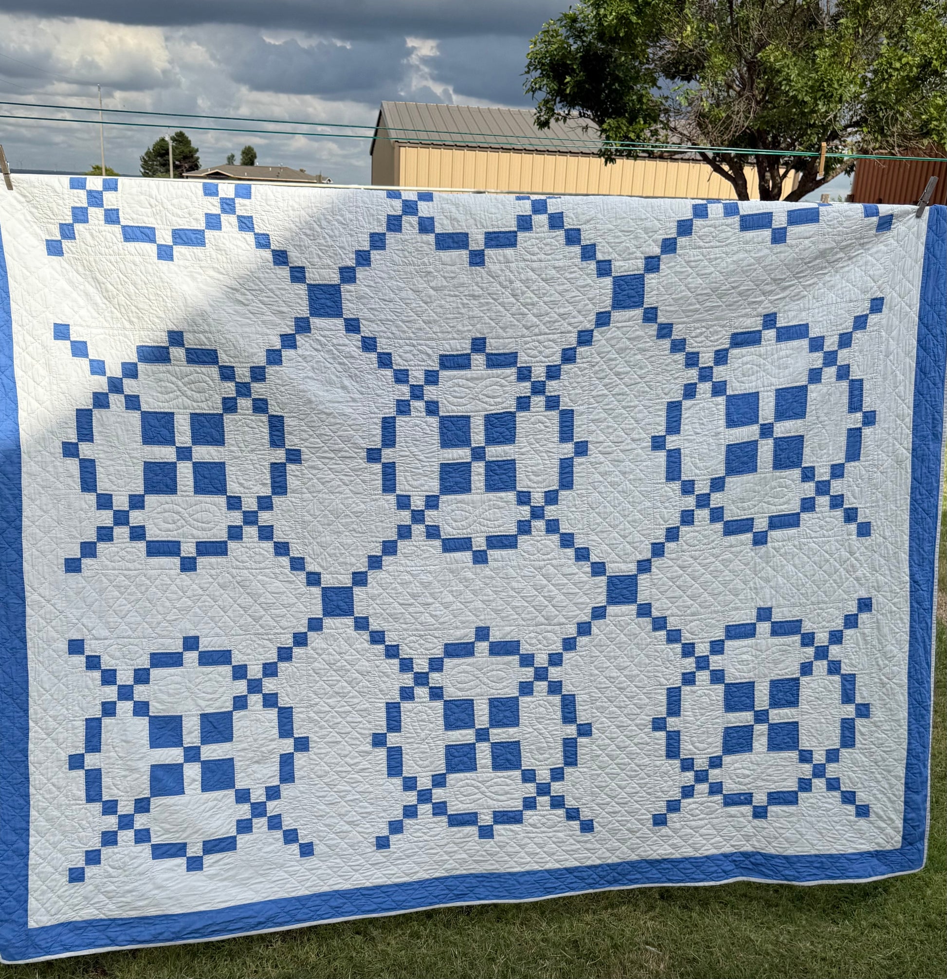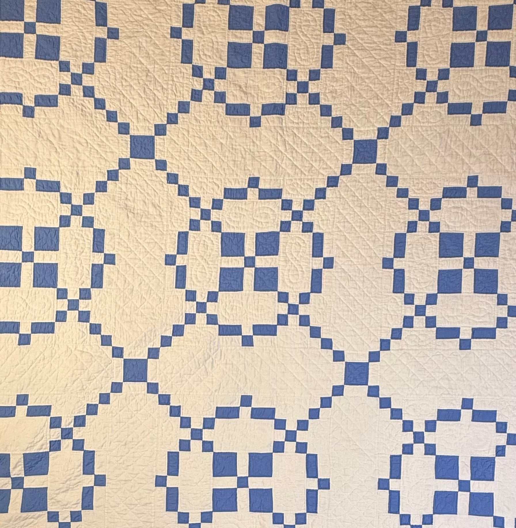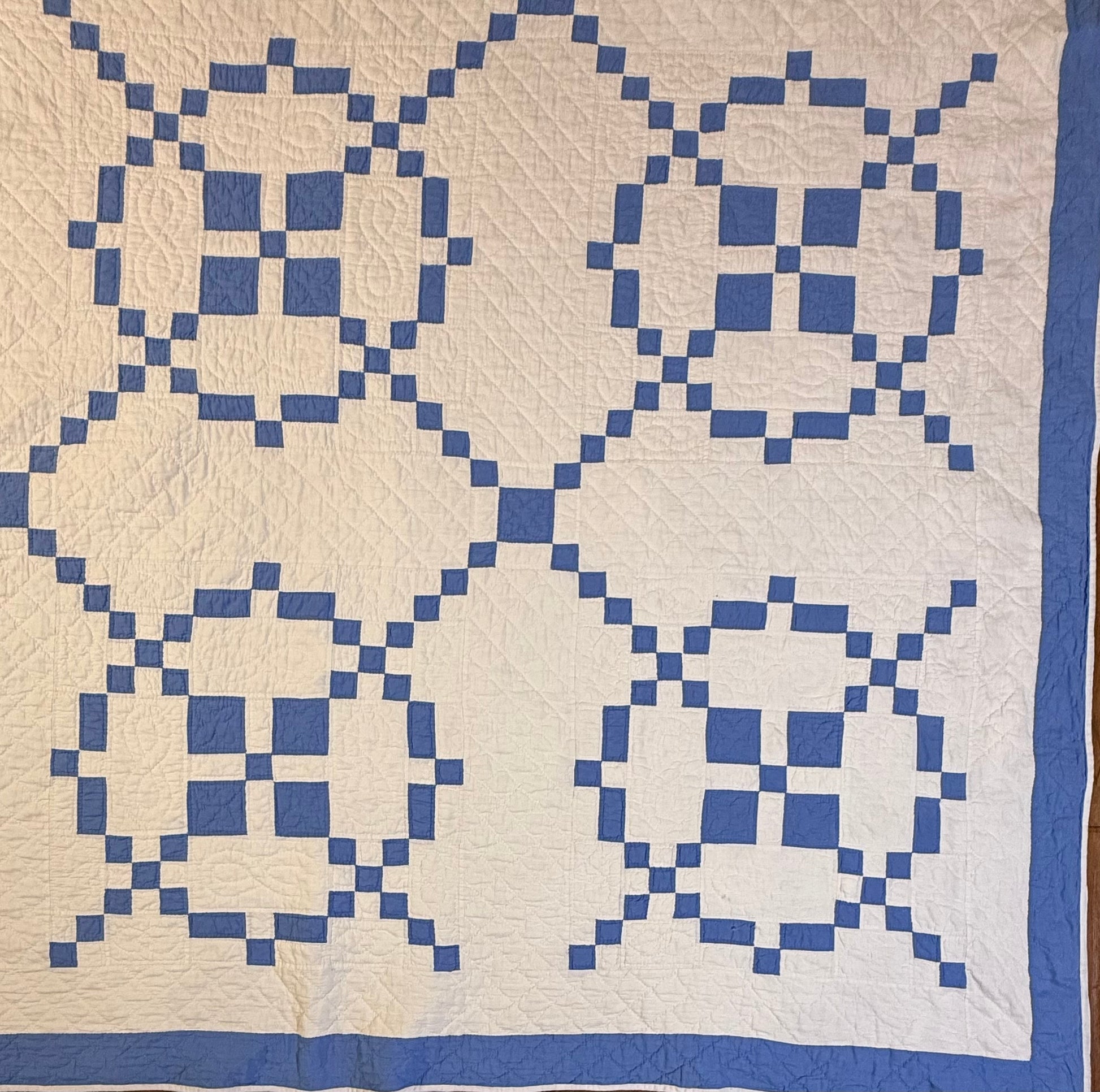 This is an exceptional blue and white quilt, an all American classic, the Burgoyne Surrounded pattern.