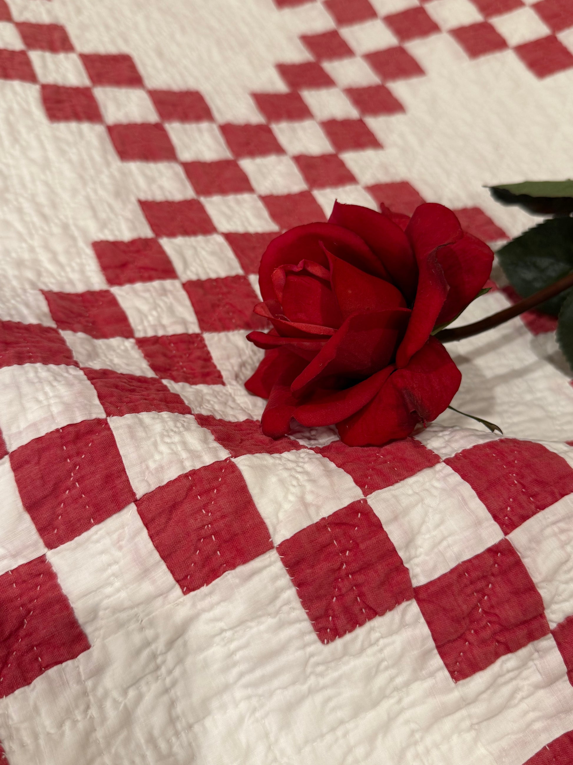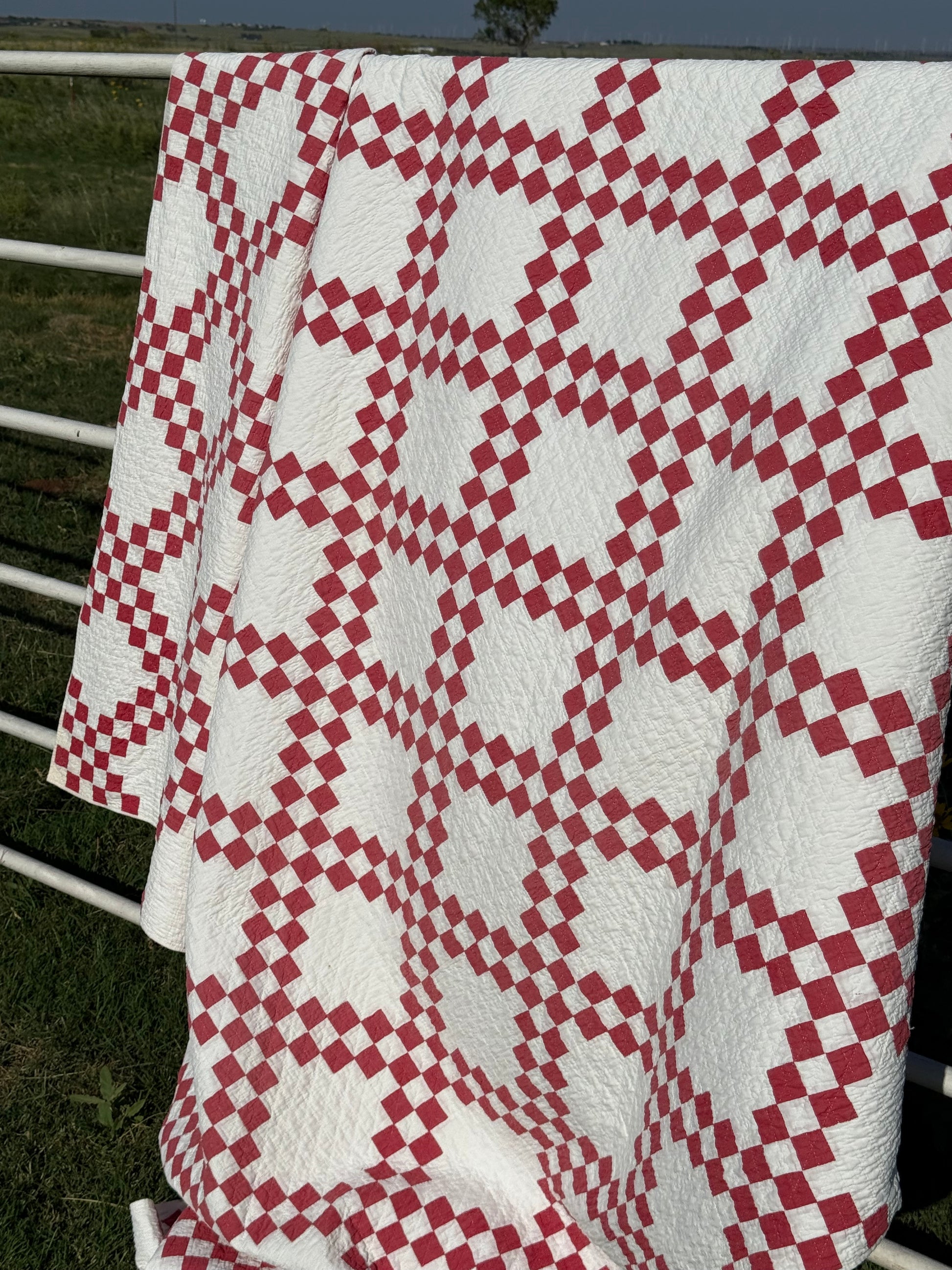 This is the neatest Double Irish Chain quilt with a super nice shade of red.