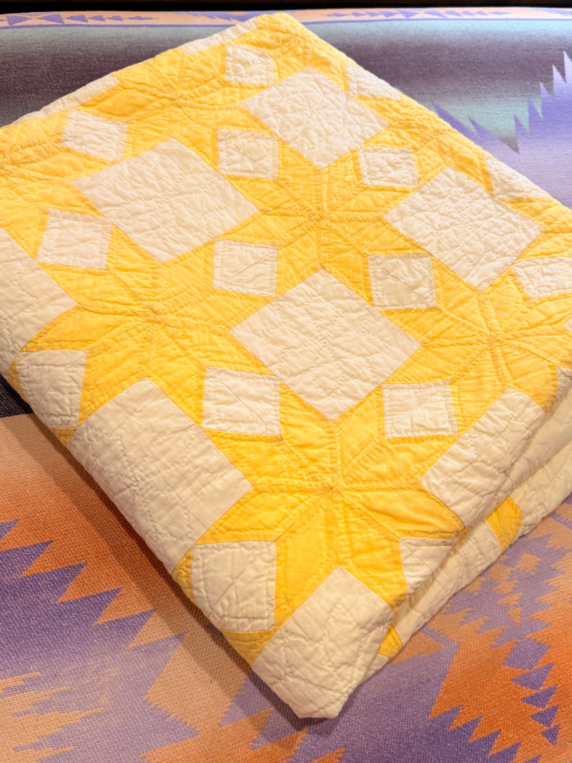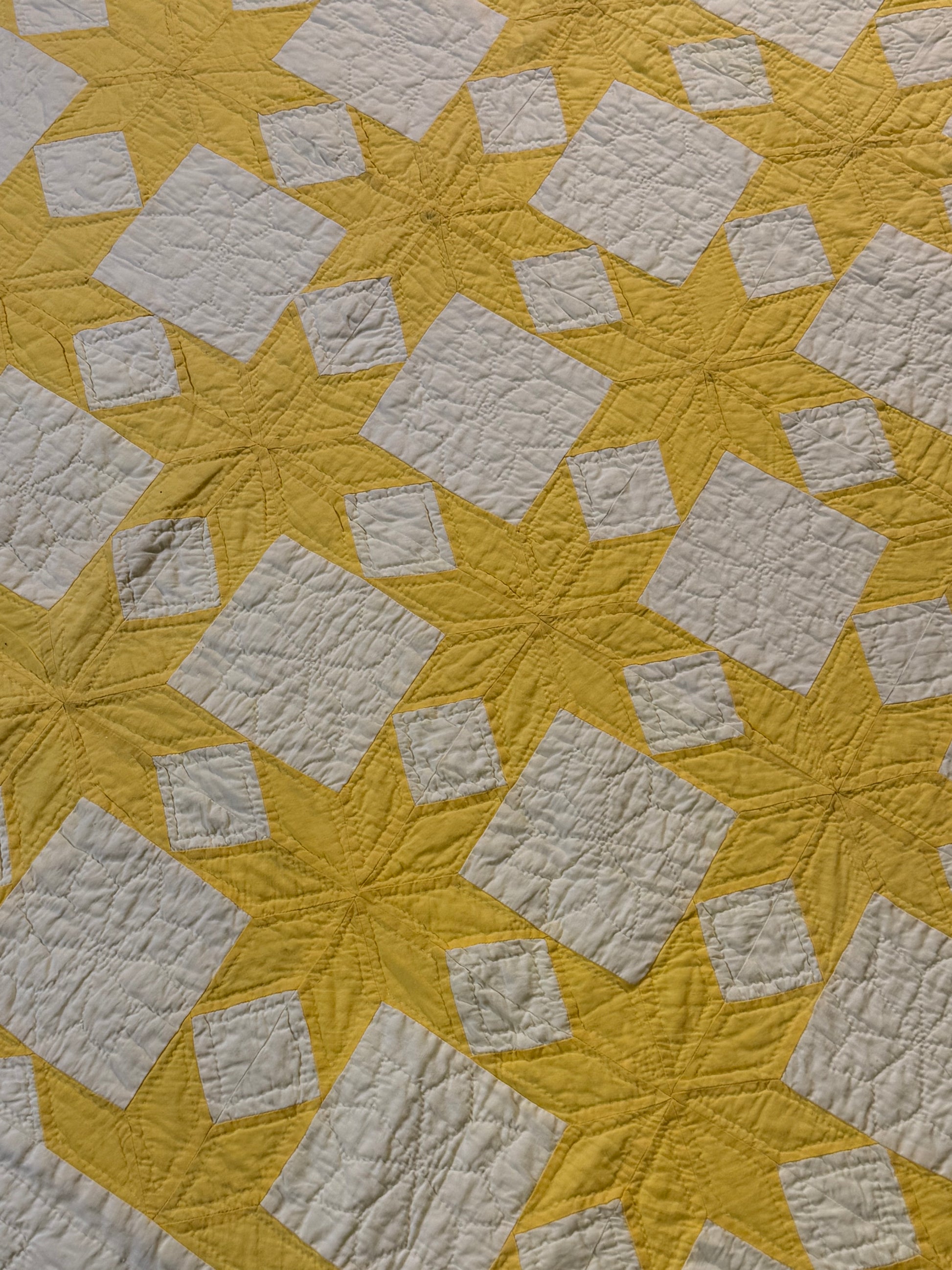 Buttery Yellow and White Stars of LeMoyne Quilt