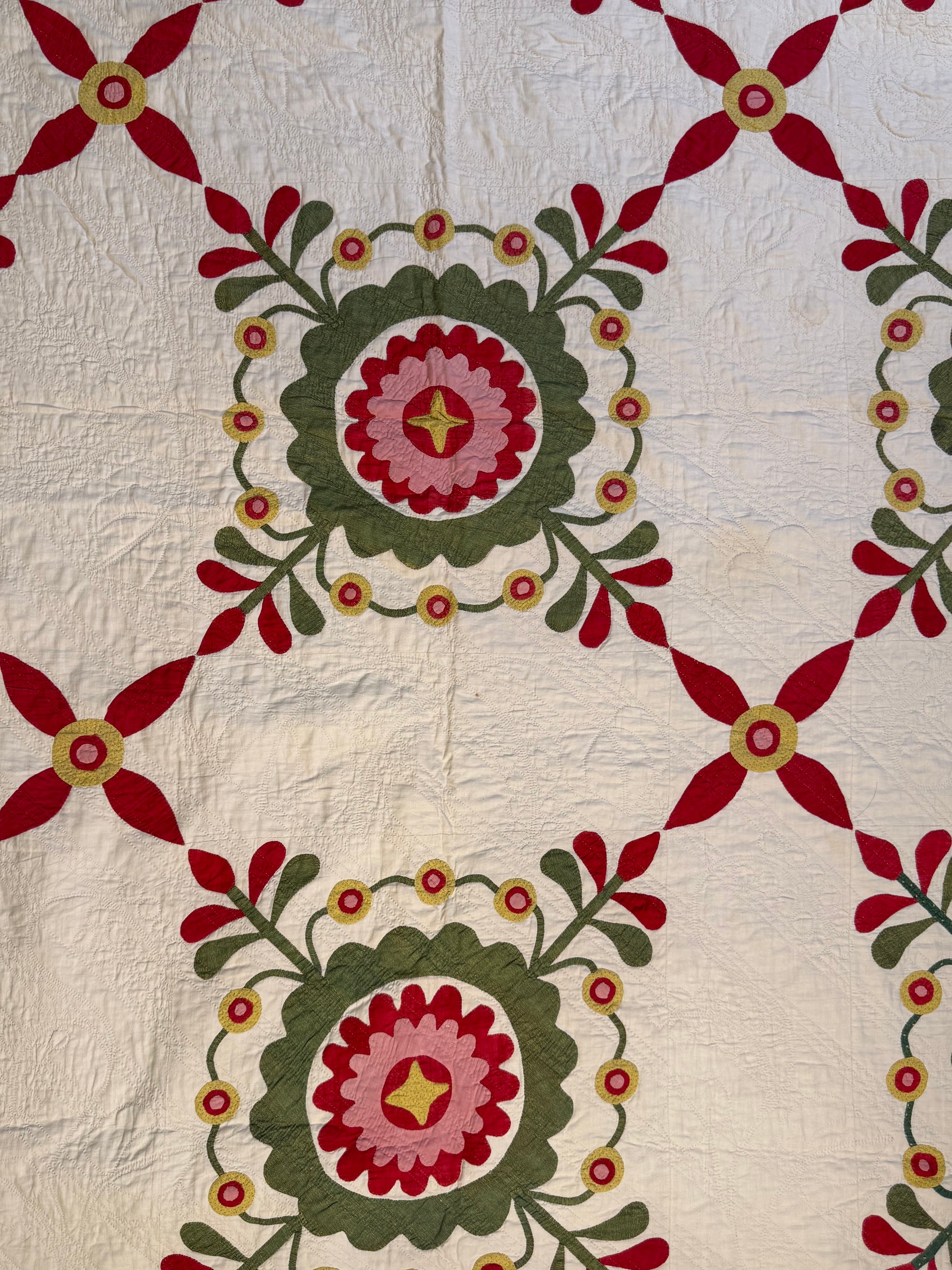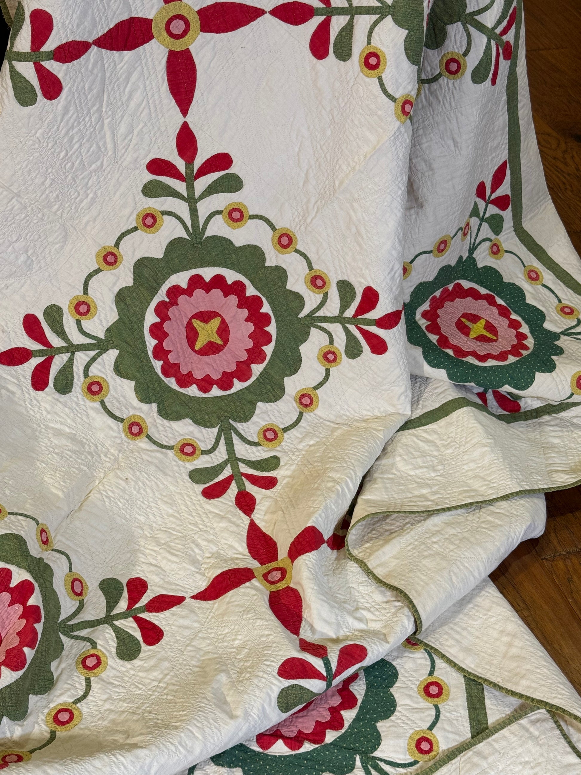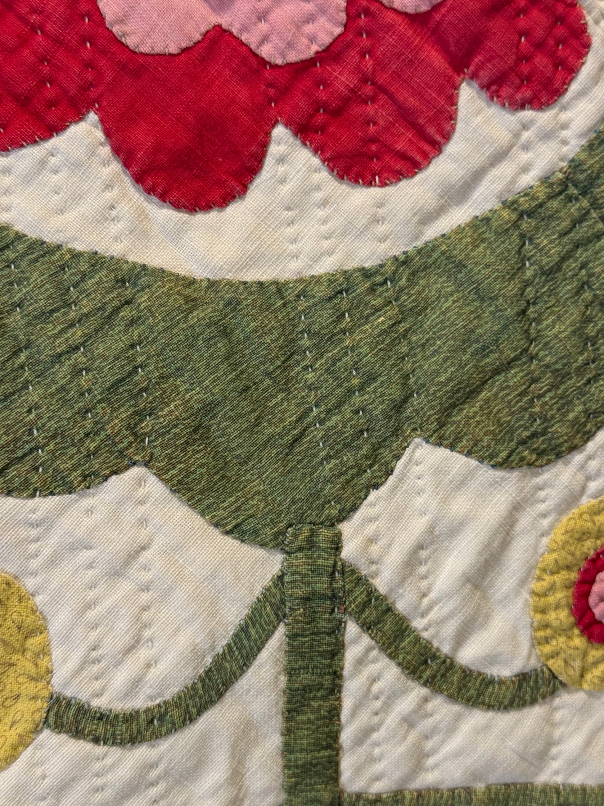 This exciting whimsical applique, a circa 1870’s treasure is such a unique quit in design.