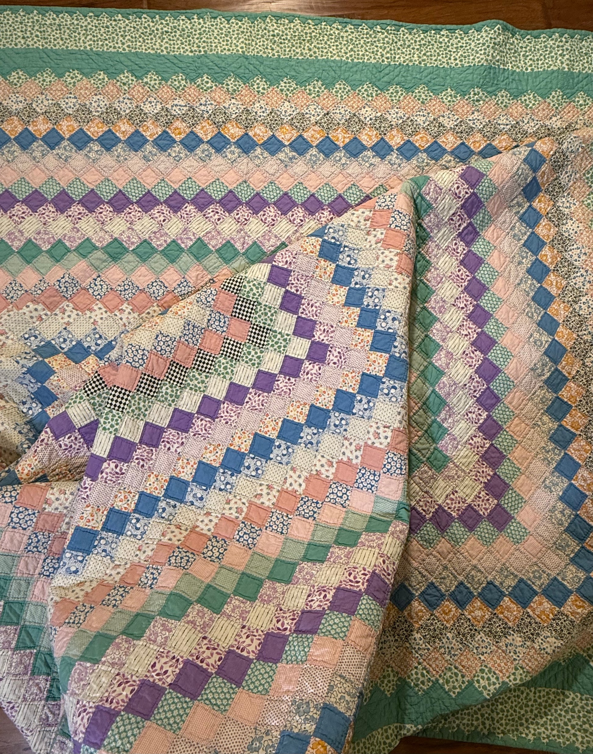 An outstanding patchwork quilt, a Trip Around the World from circa 1930’s.
