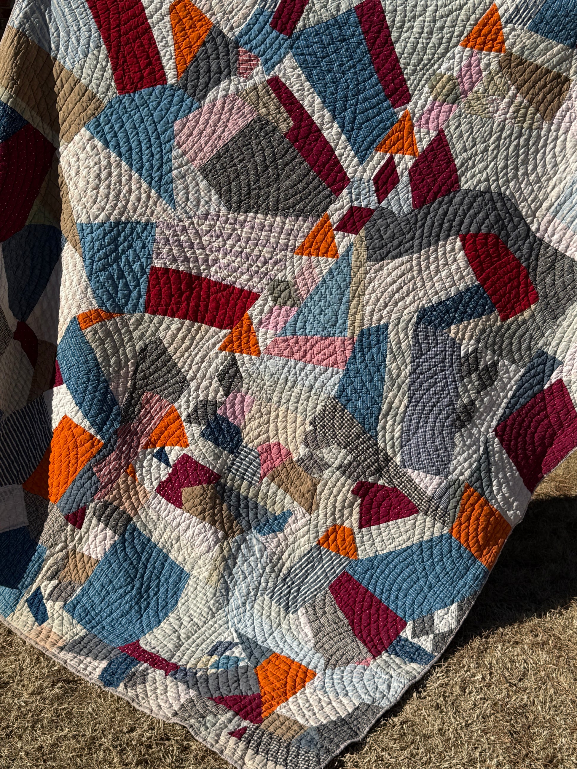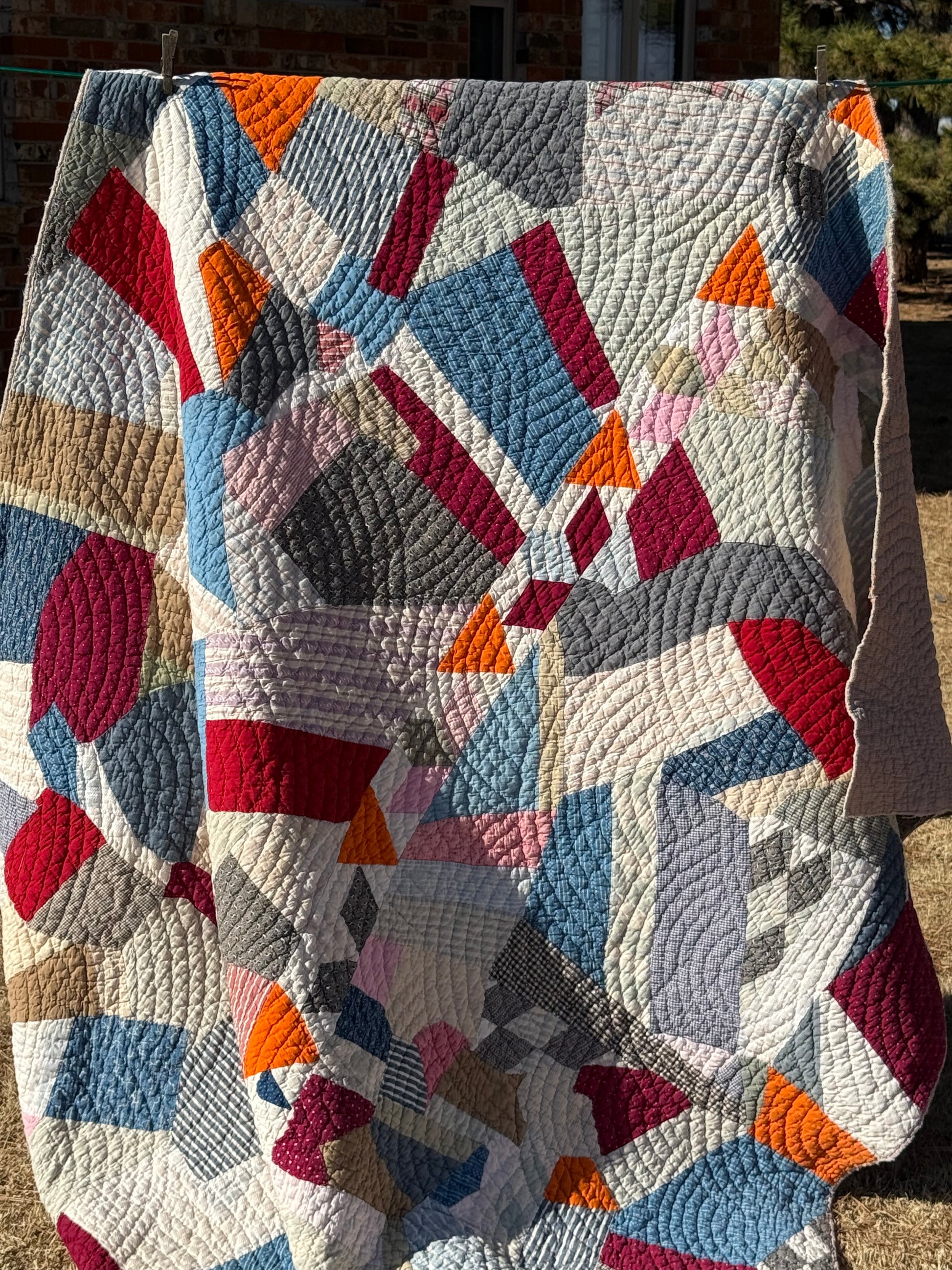 This patchwork was more of a quilt made from lots of scraps, and more a make do quilt, that in today’s world can be looked upon as art, like an abstract painting.