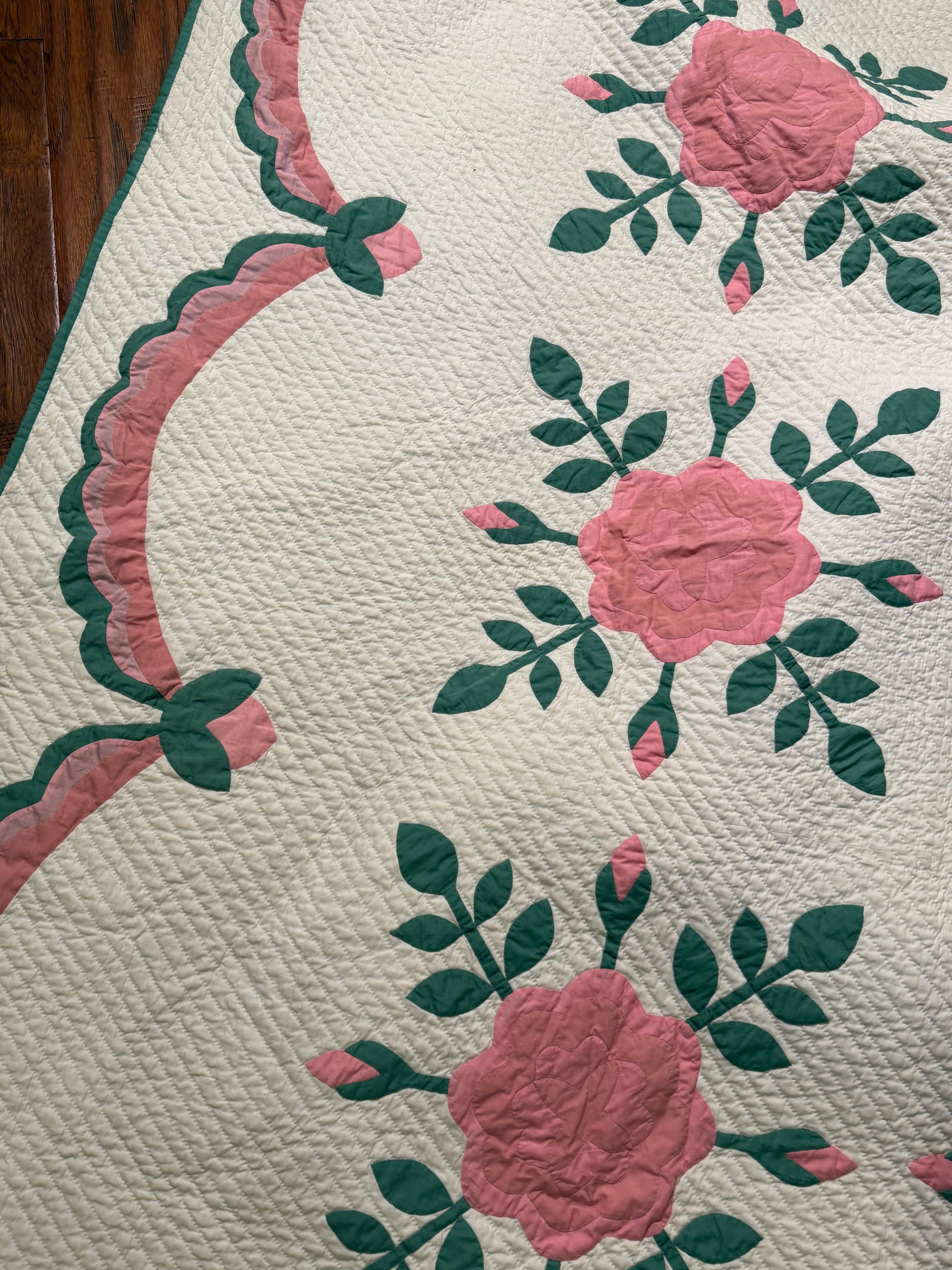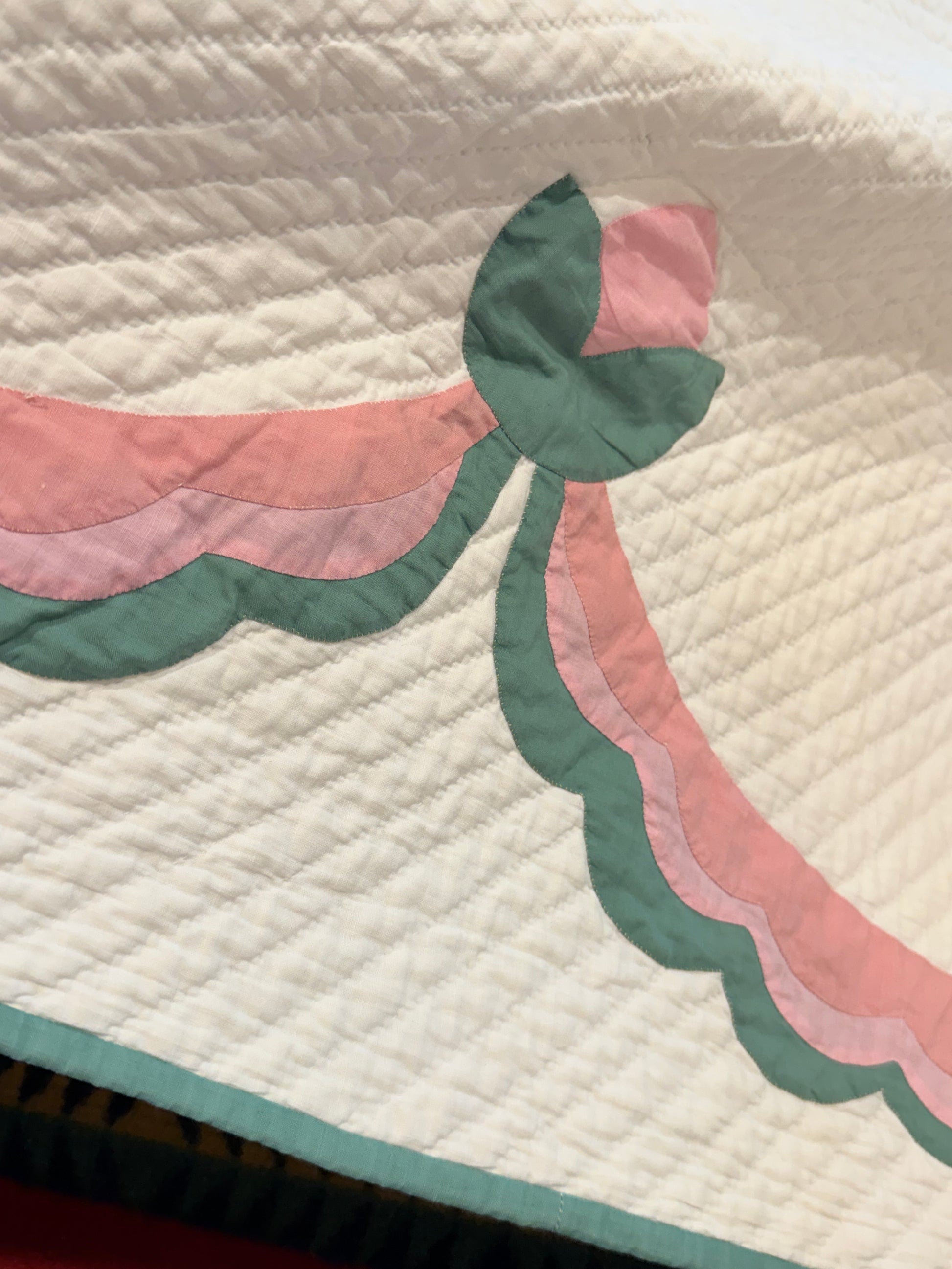 The condition is so fine and the hand quilting, a standout. The fine tiny stitches at 10 stitches per inch is a testament to the quality of this quilt and the skill of the quilt maker.