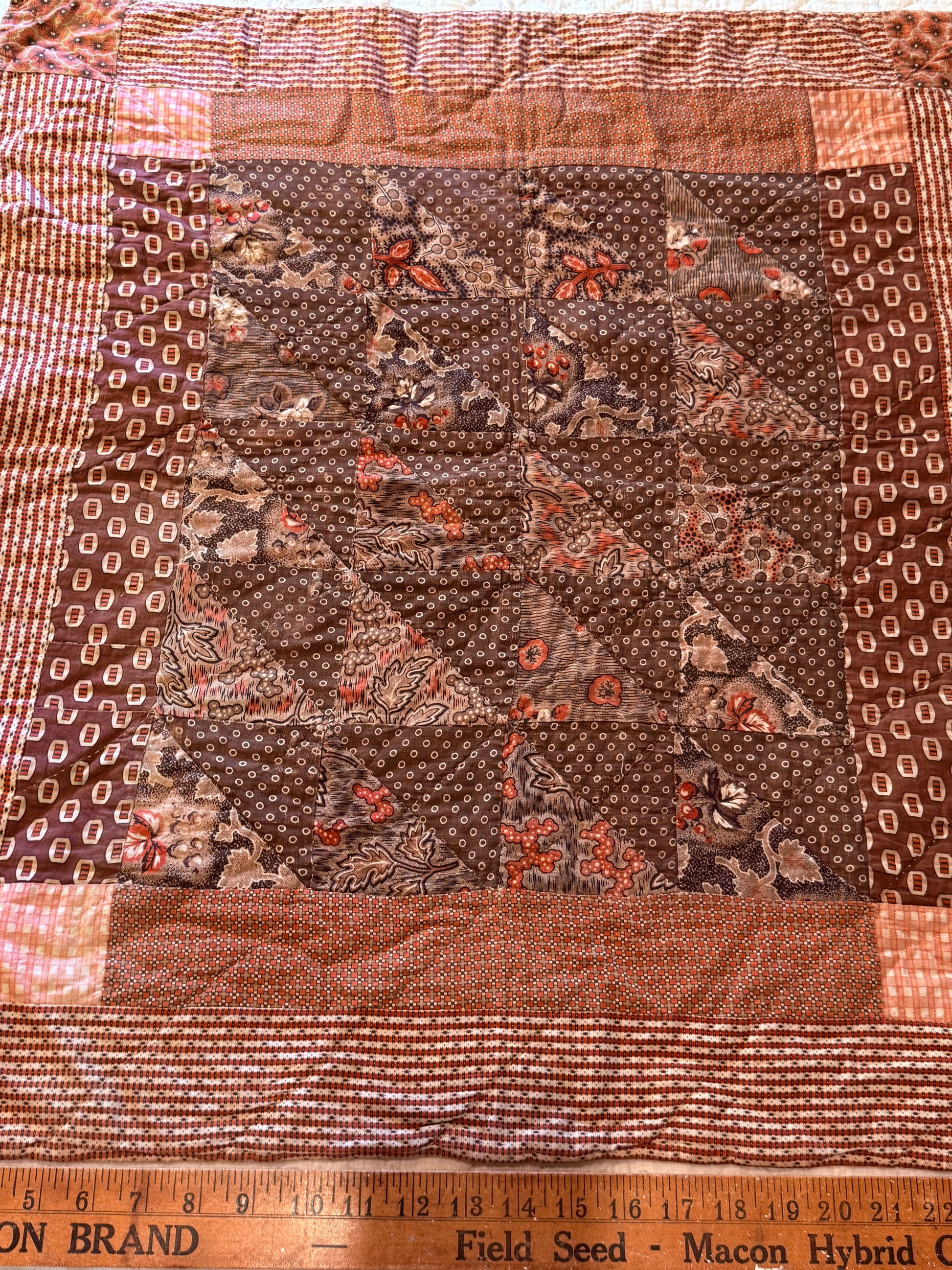 This original early, circa 1850’s quilt, a Framed Patchwork One Patch crib quilt is in wonderful condition.