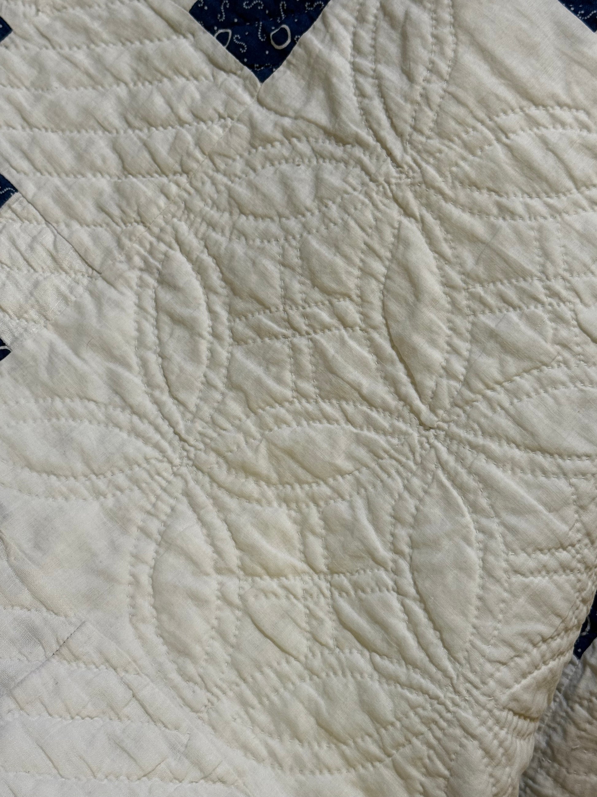 The maker did some fine hand quilting designs that perks up the ground areas of the quilt.