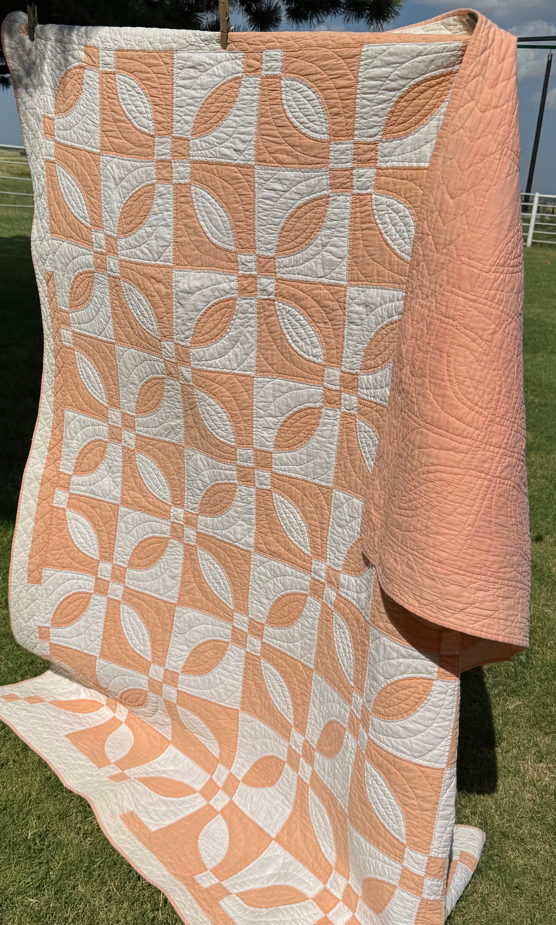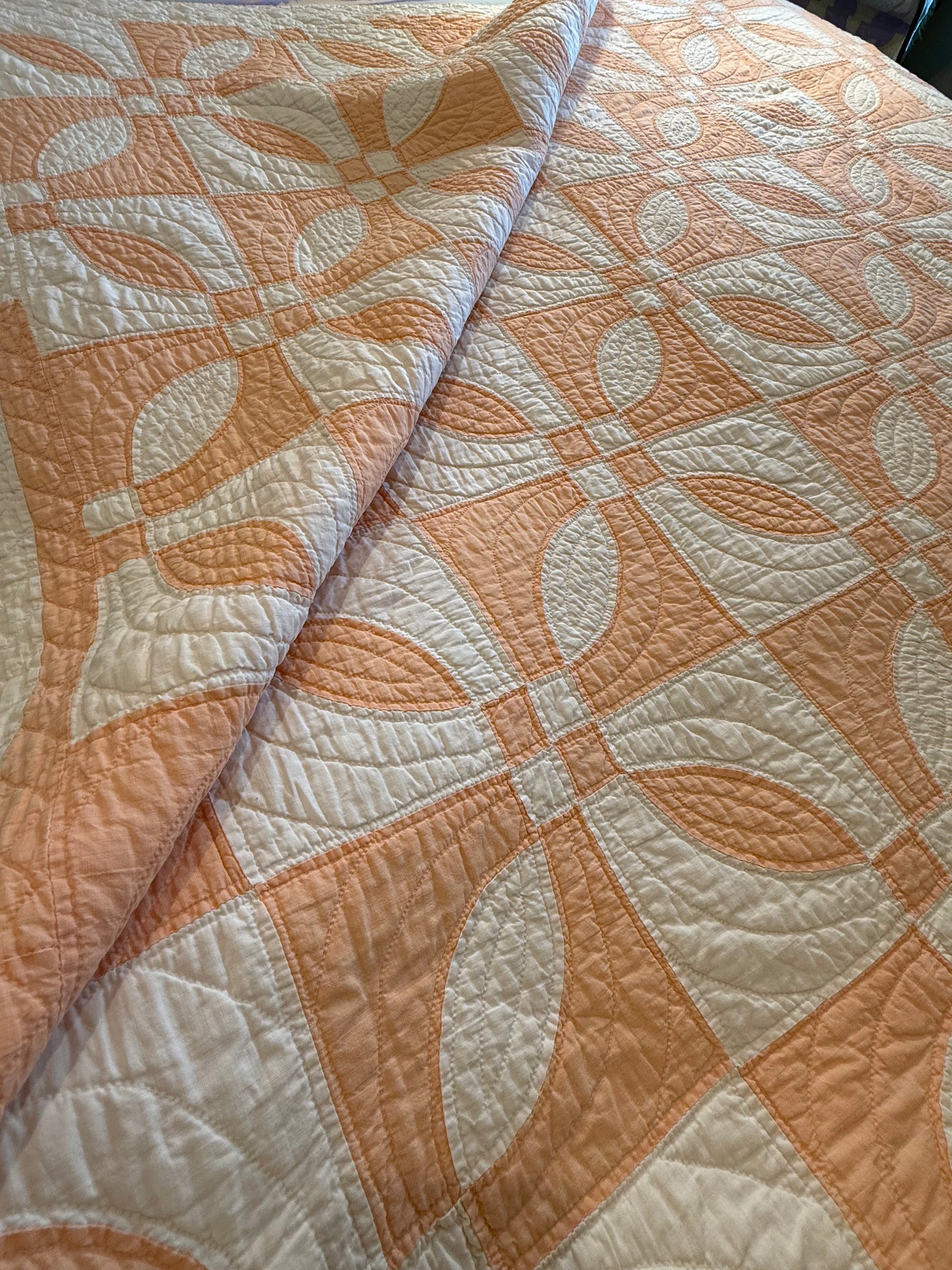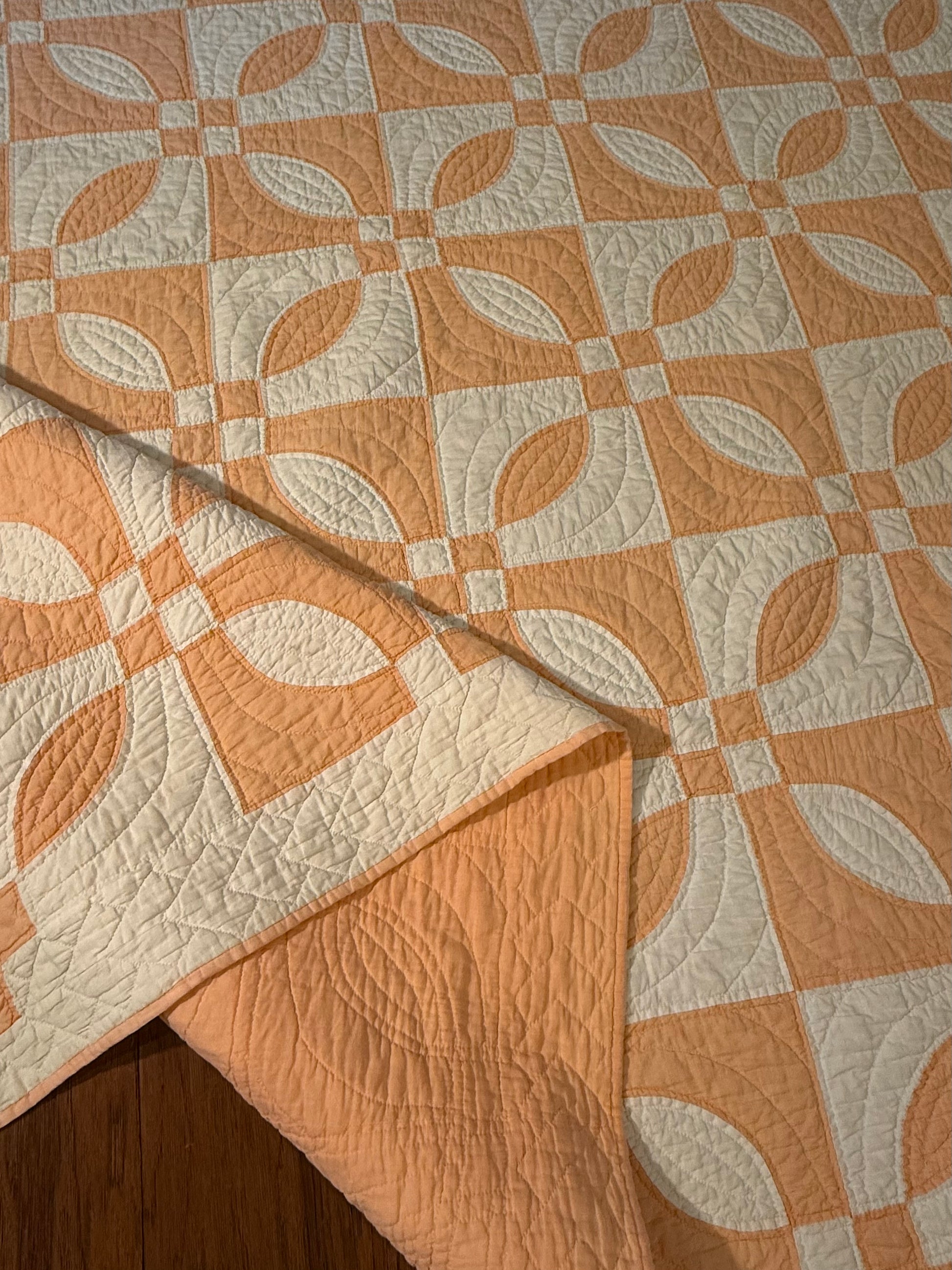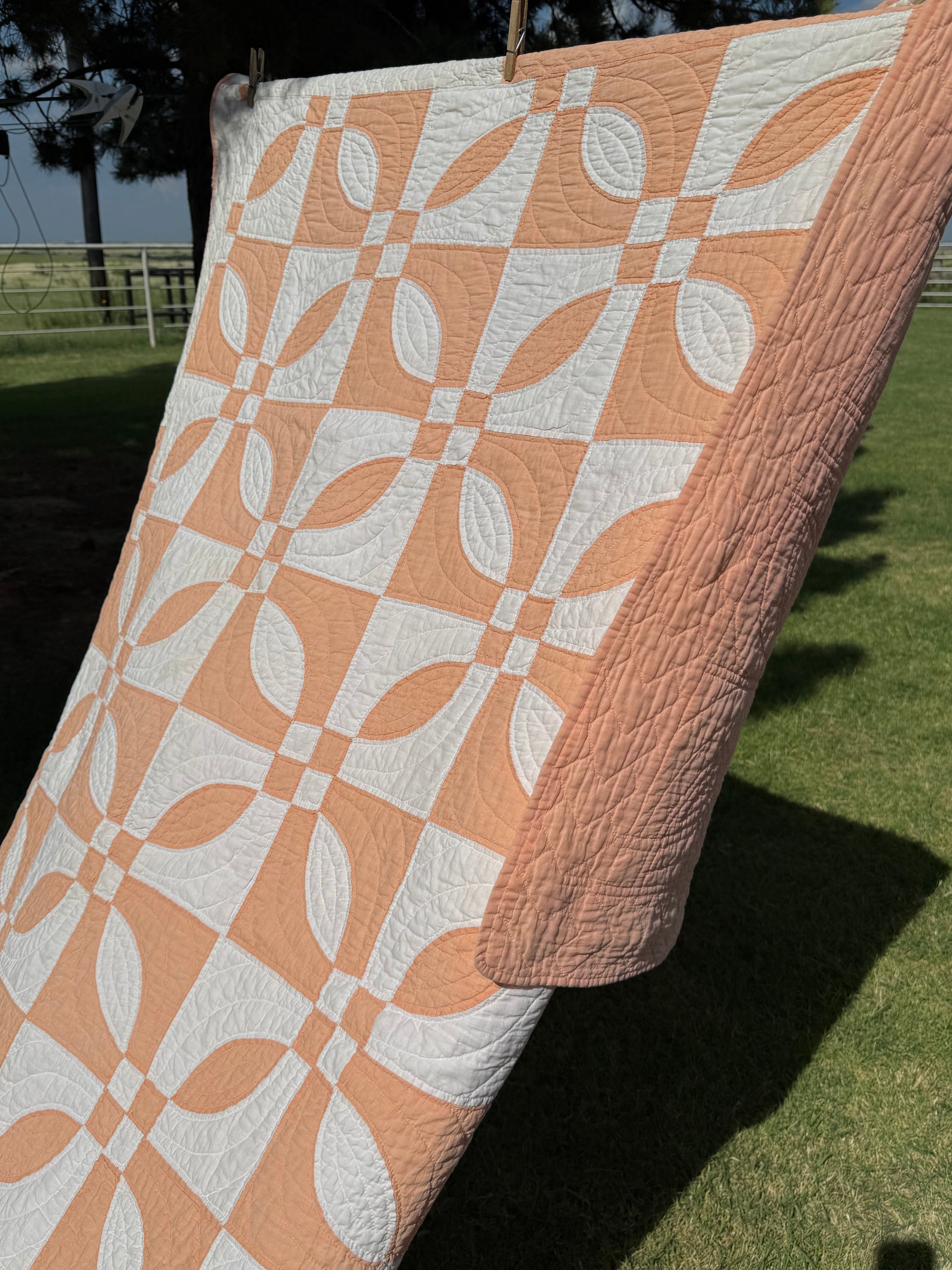 Super sweet shade of a melon, a cantaloupe or soft orange make up the 2 color Rose Dream quilt from Illinois.