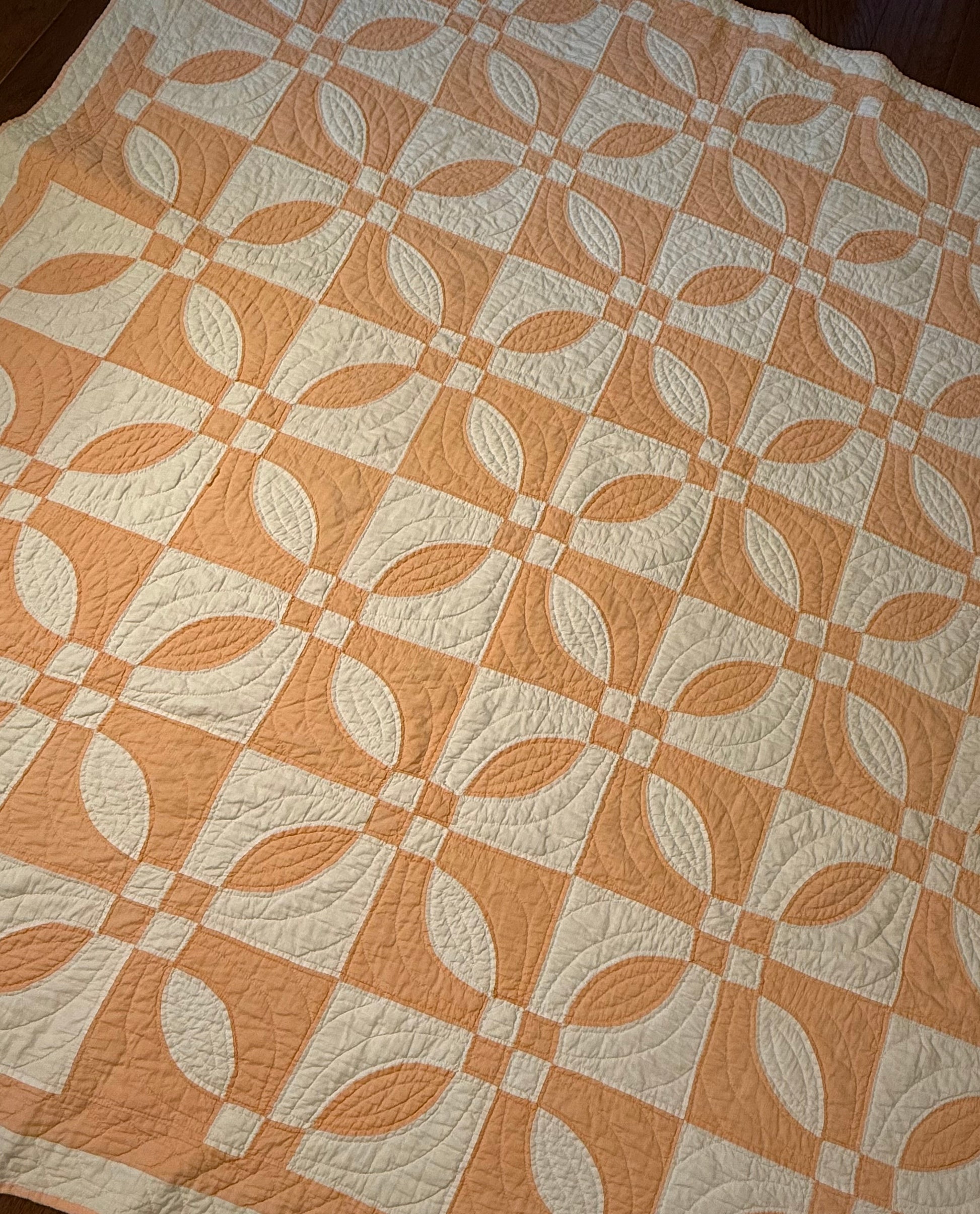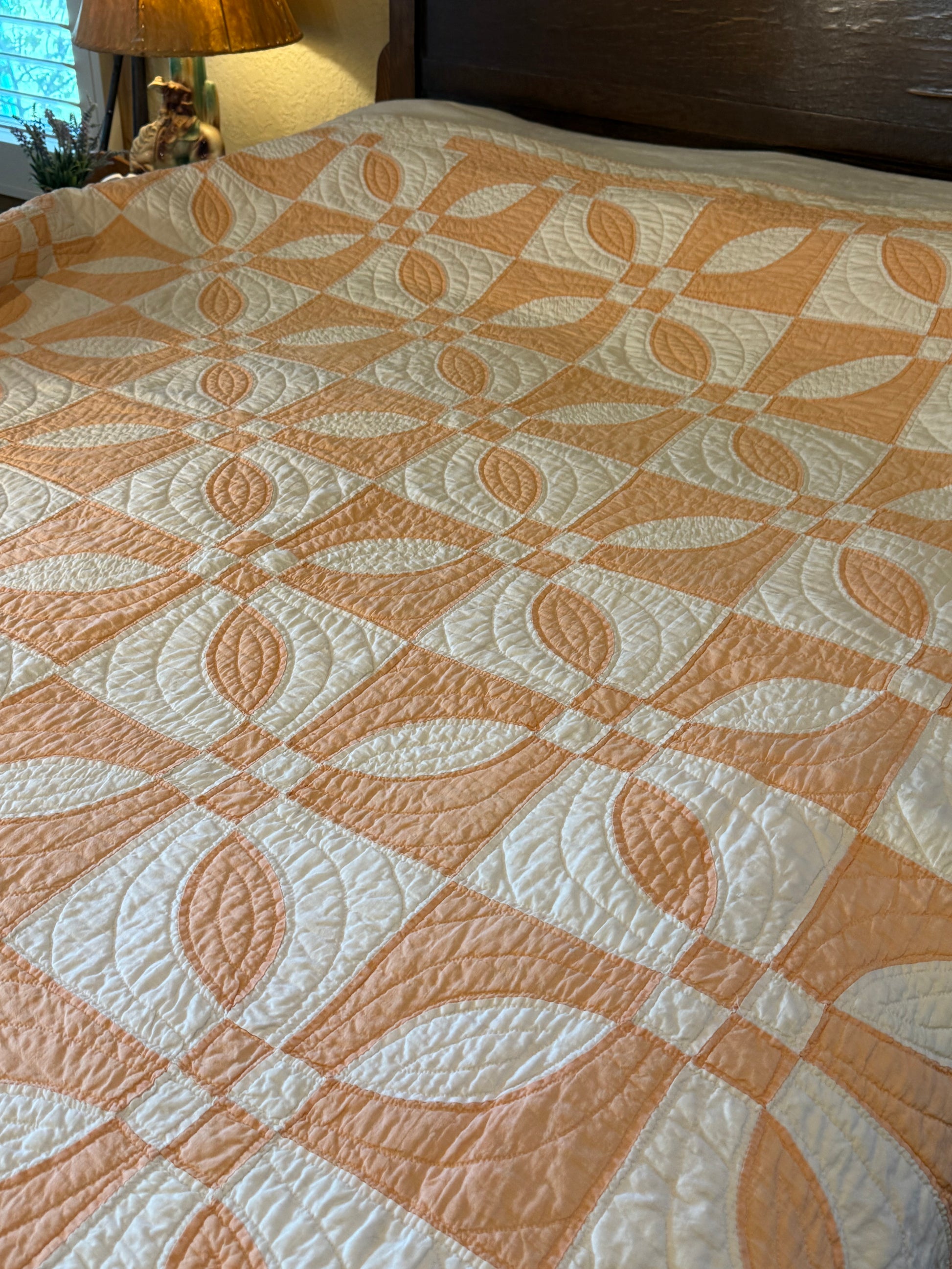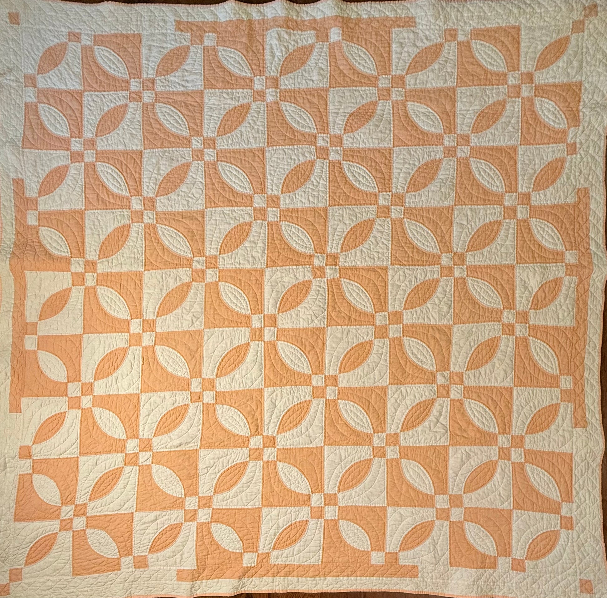 Super sweet shade of a melon, a cantaloupe or soft orange make up the 2 color Rose Dream quilt from Illinois.