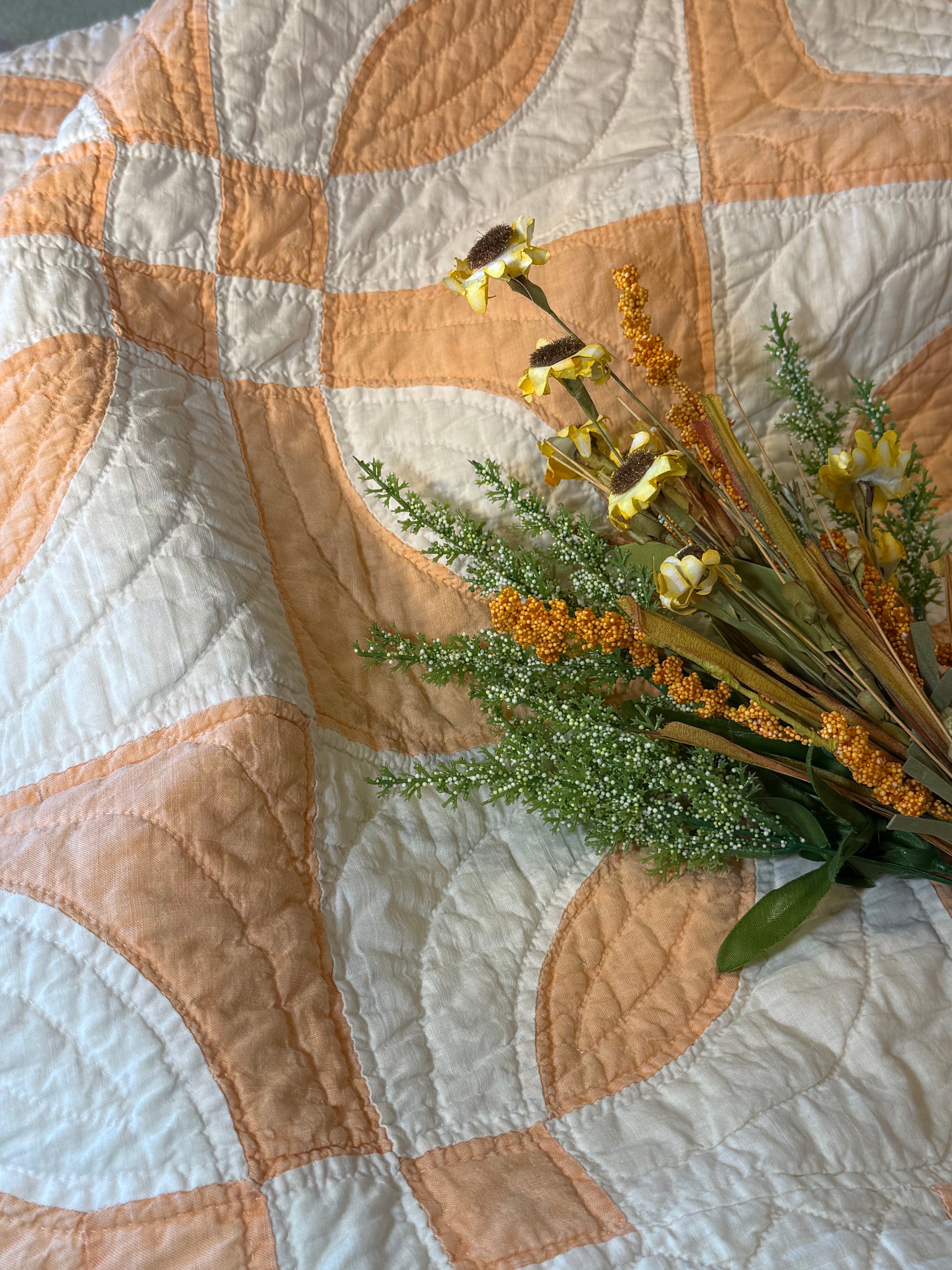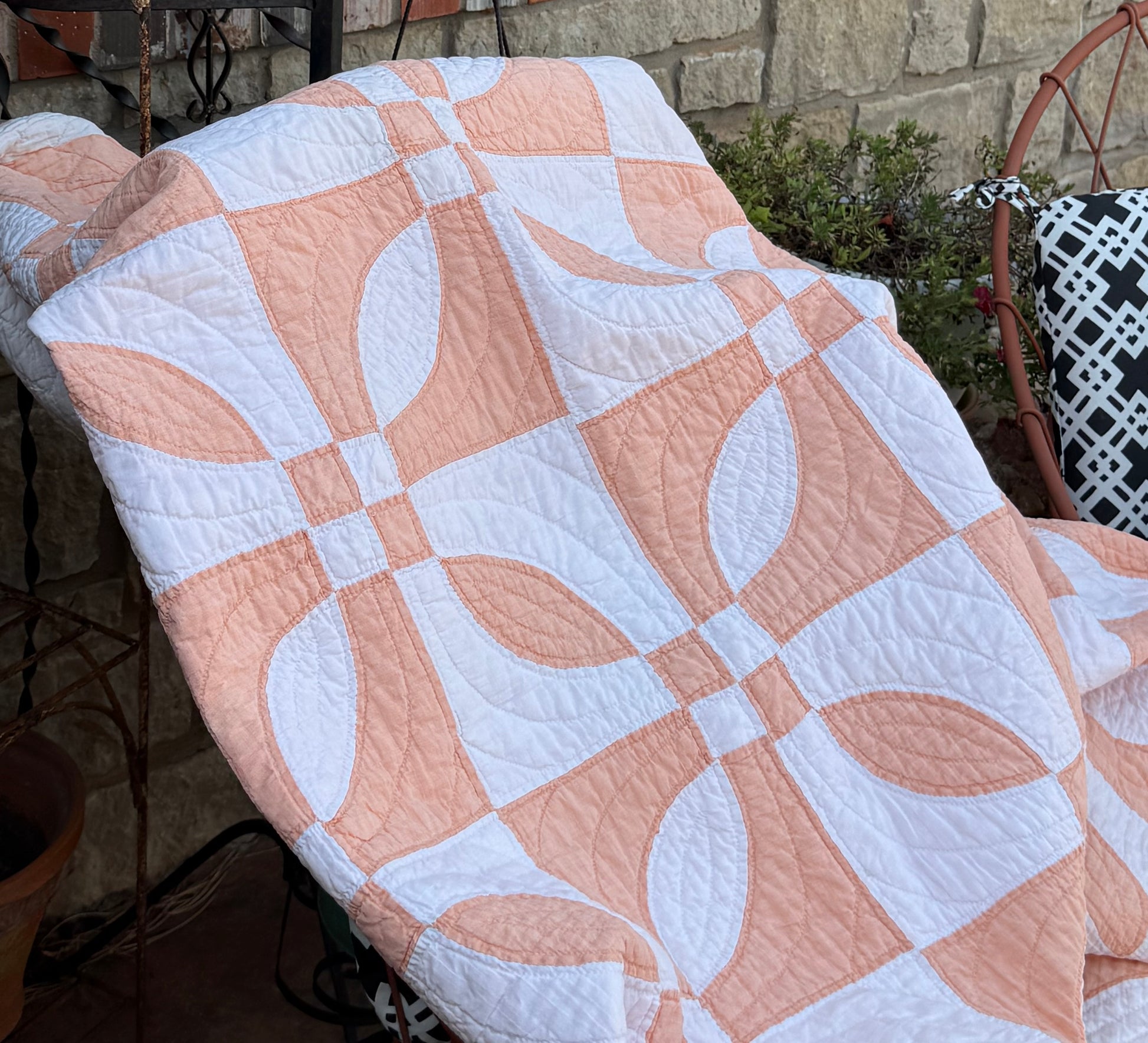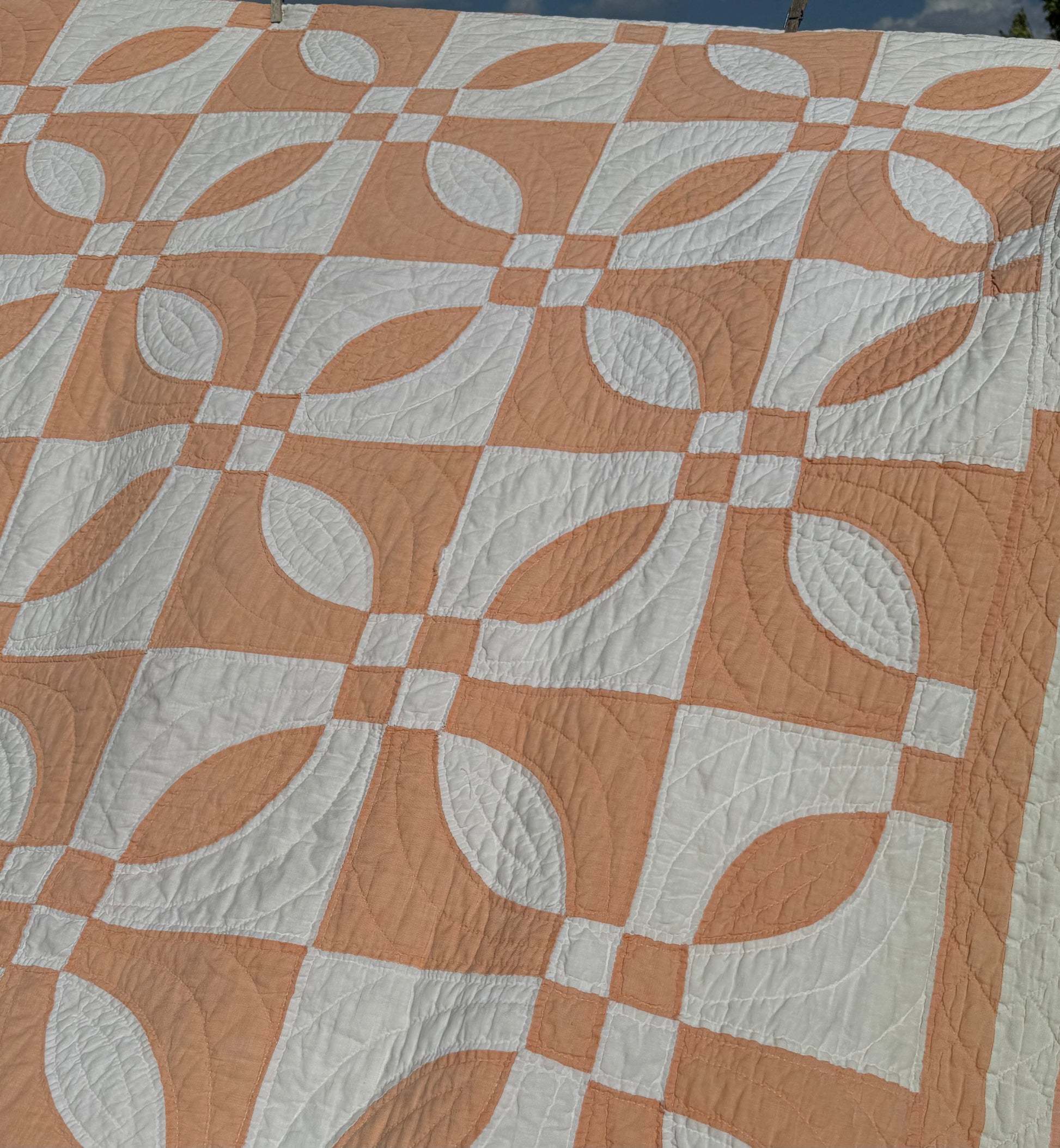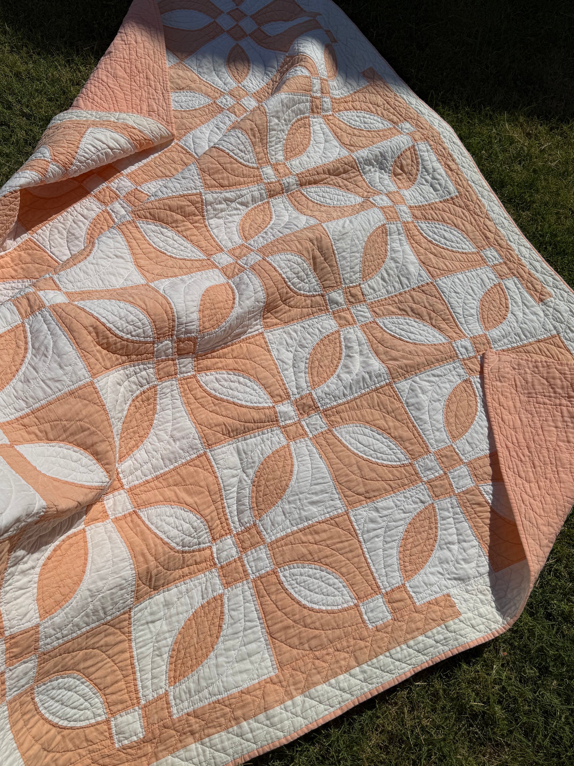 Super sweet shade of a melon, a cantaloupe or soft orange make up the 2 color Rose Dream quilt from Illinois.