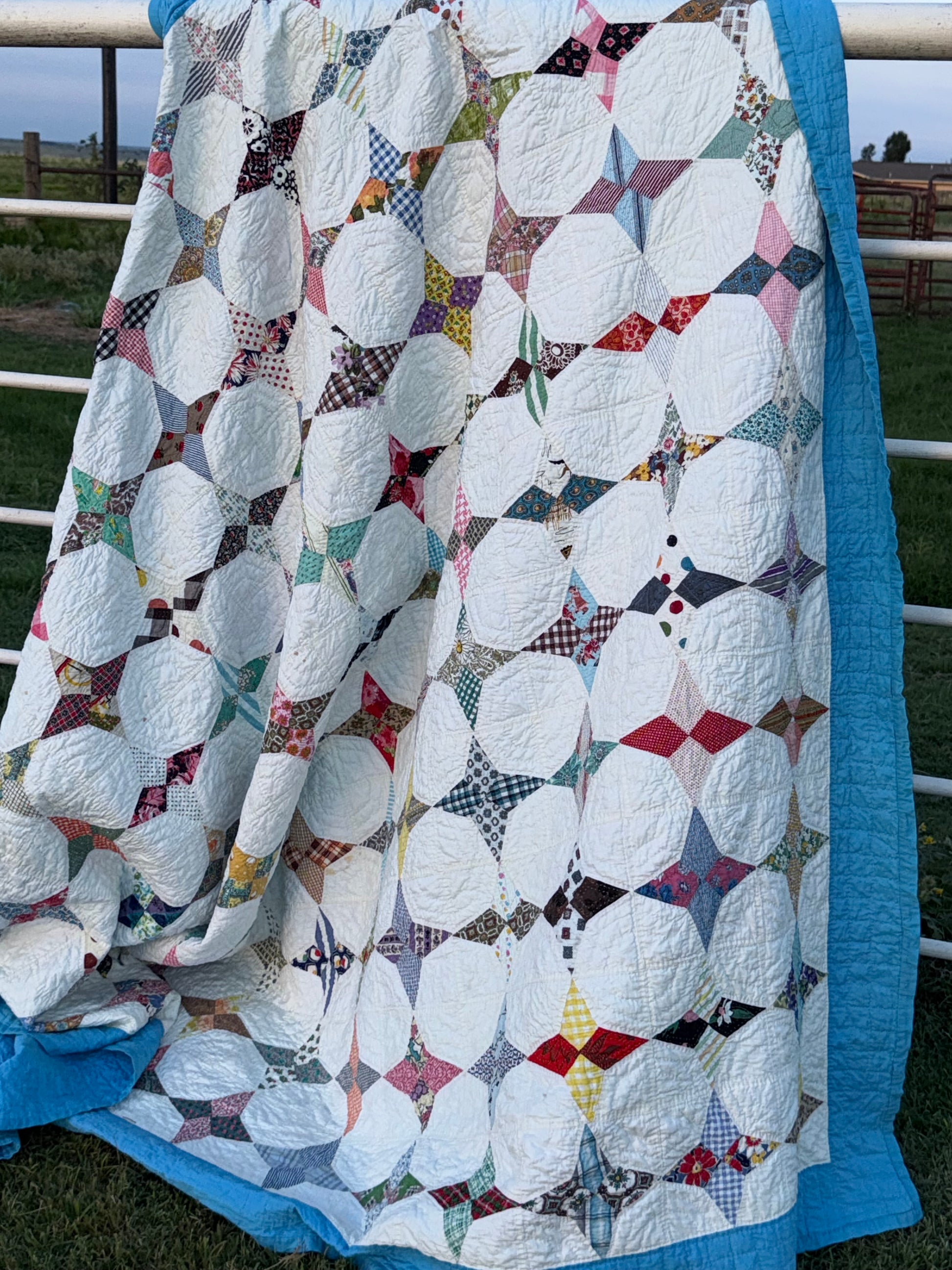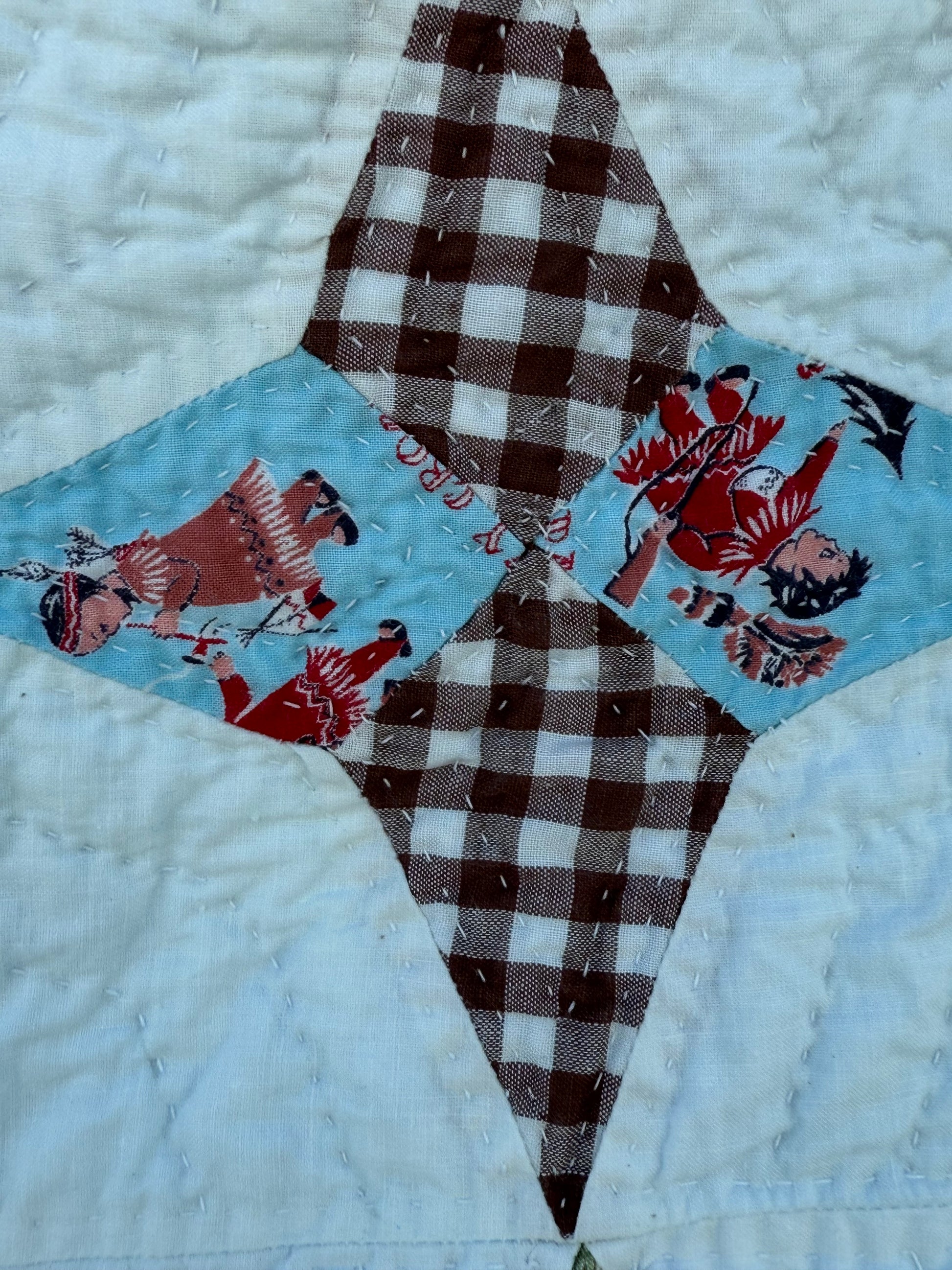This is such a charming quilt with the use of so many circa 1950’s fabrics.