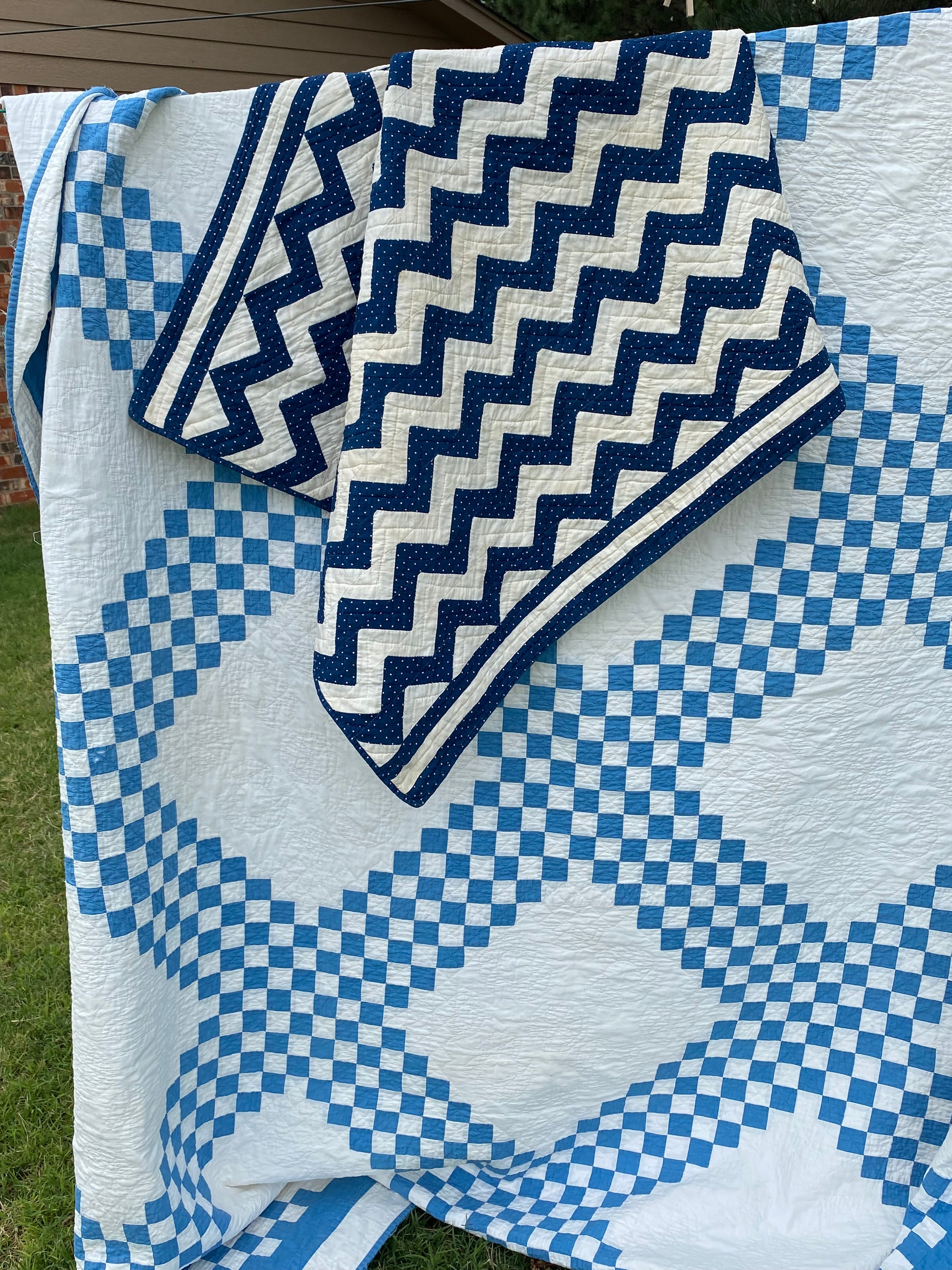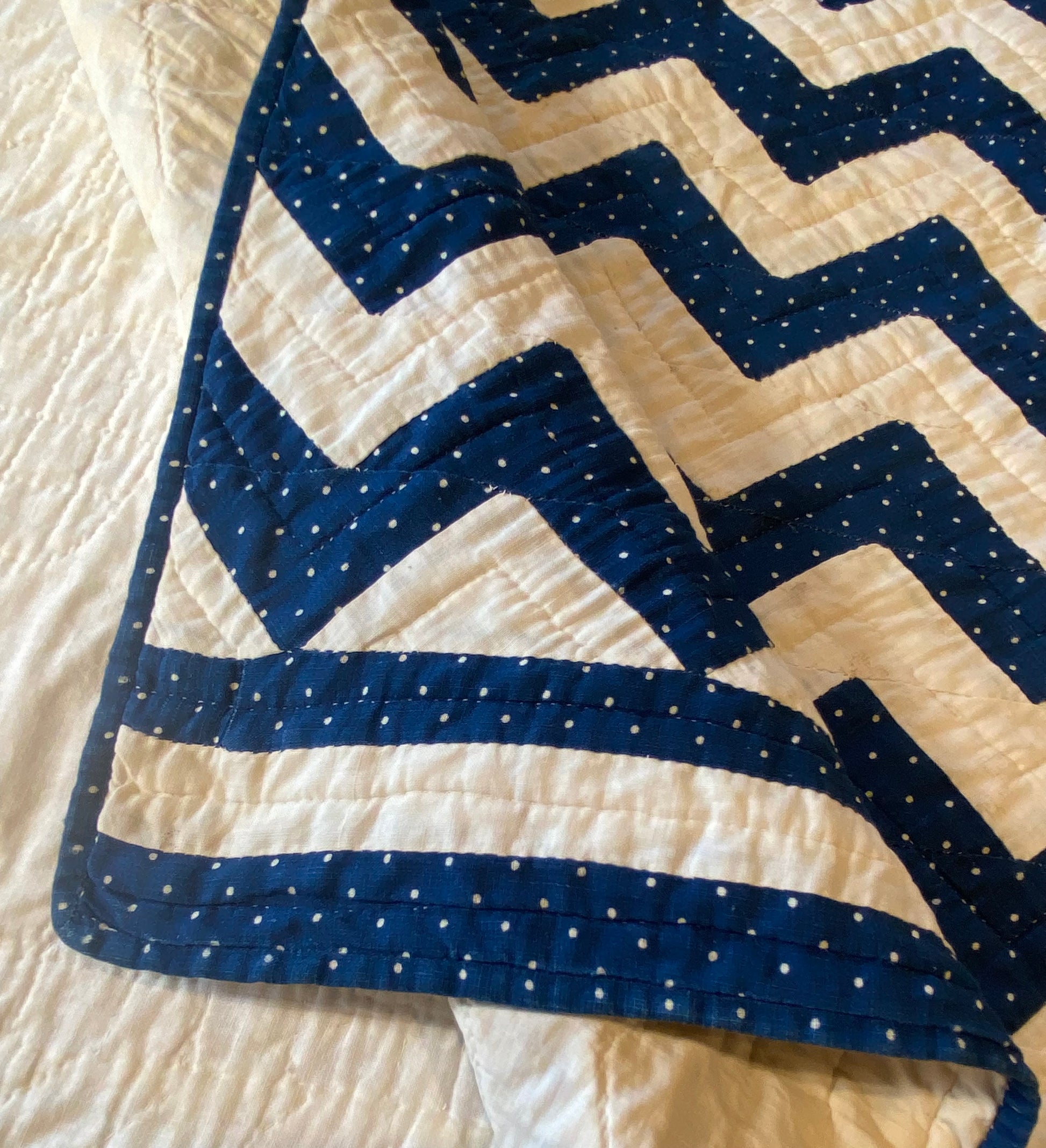 It’s all hand quilted and has a separate indigo blue binding that is also stitched on by hand.