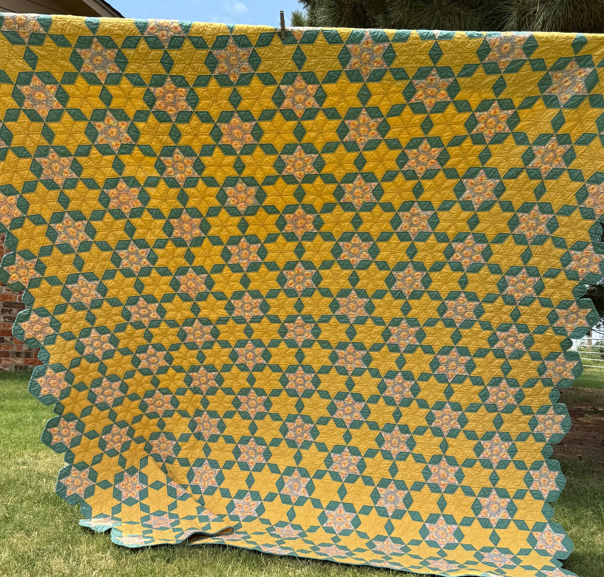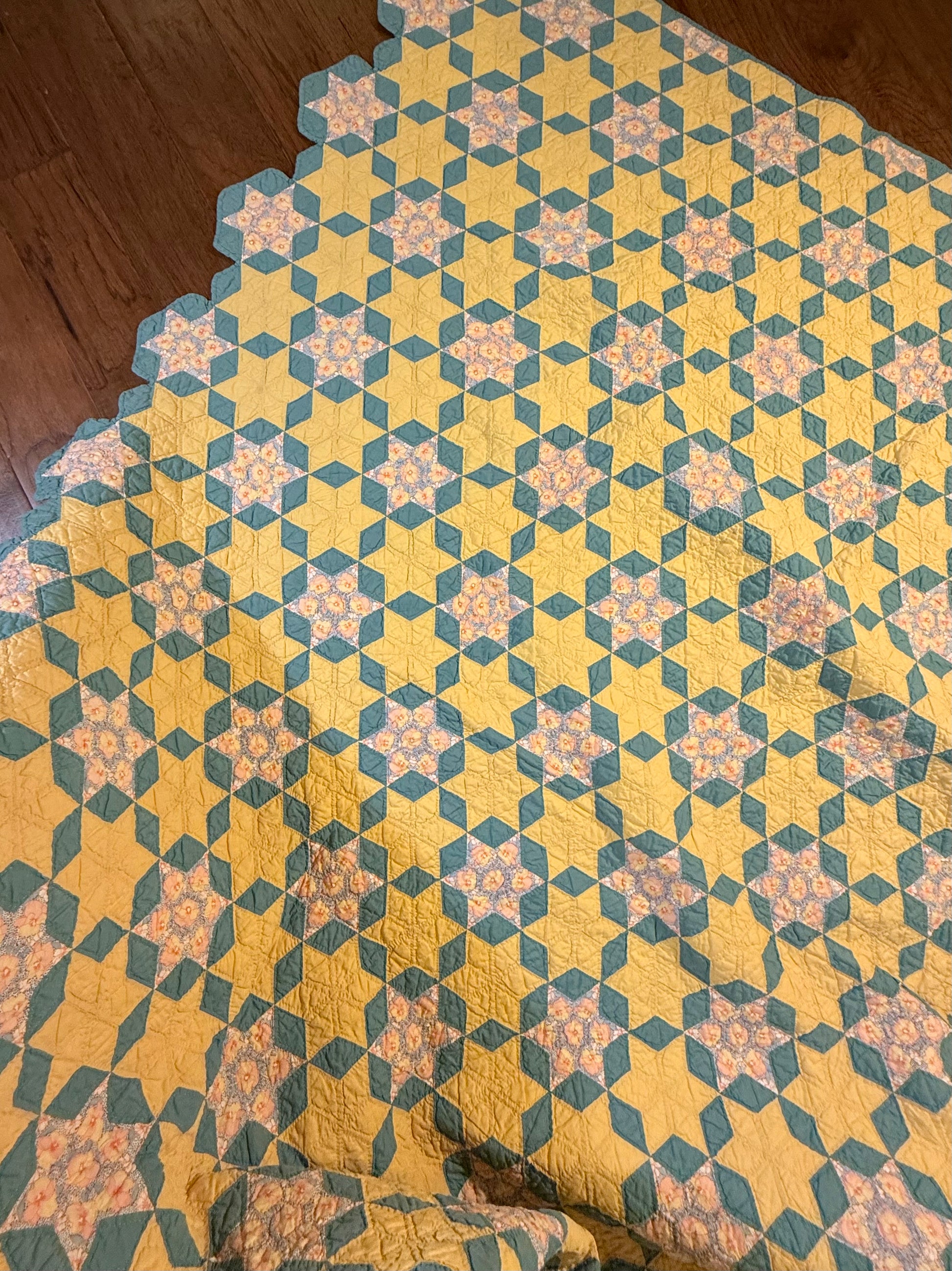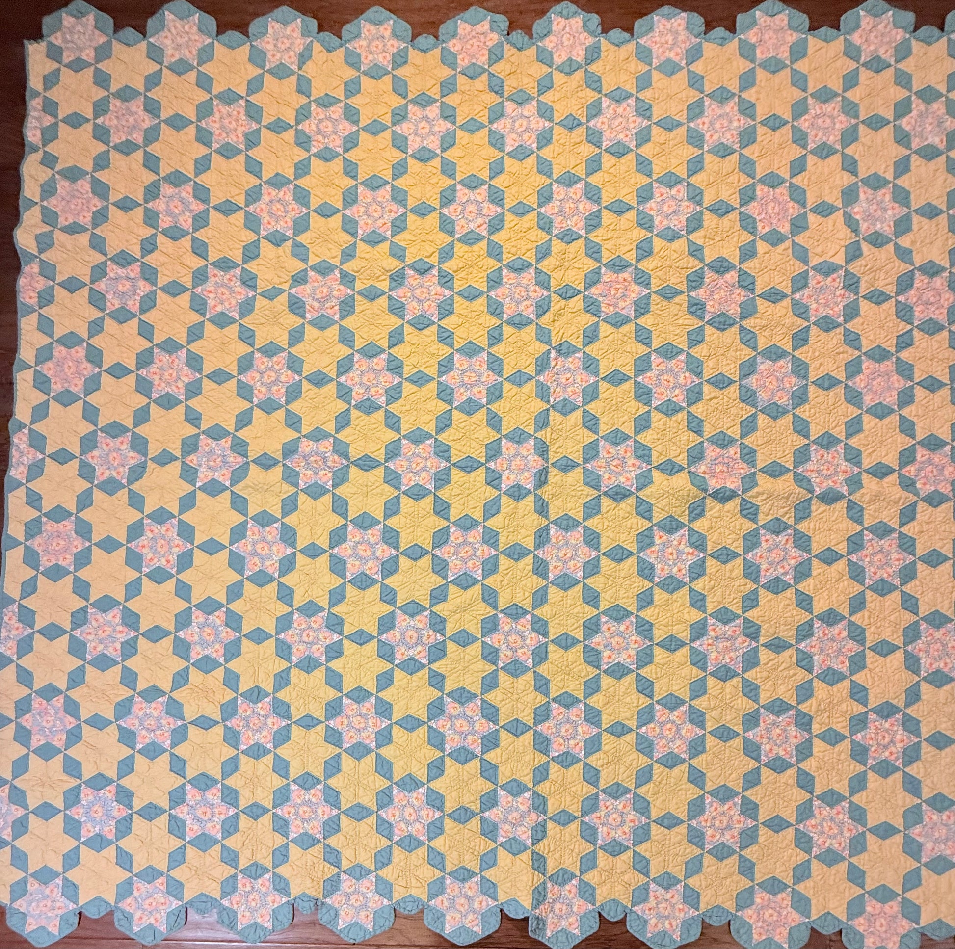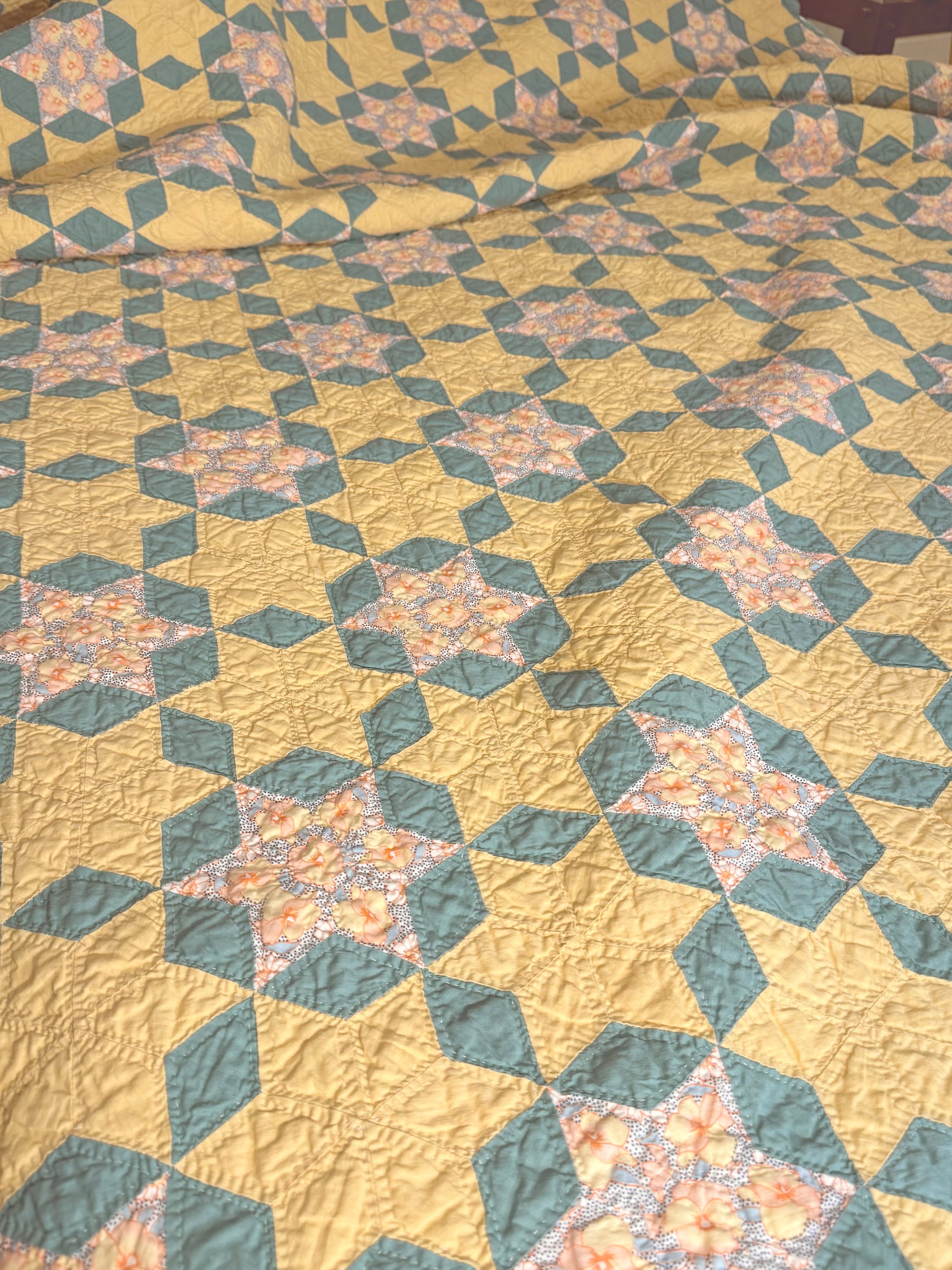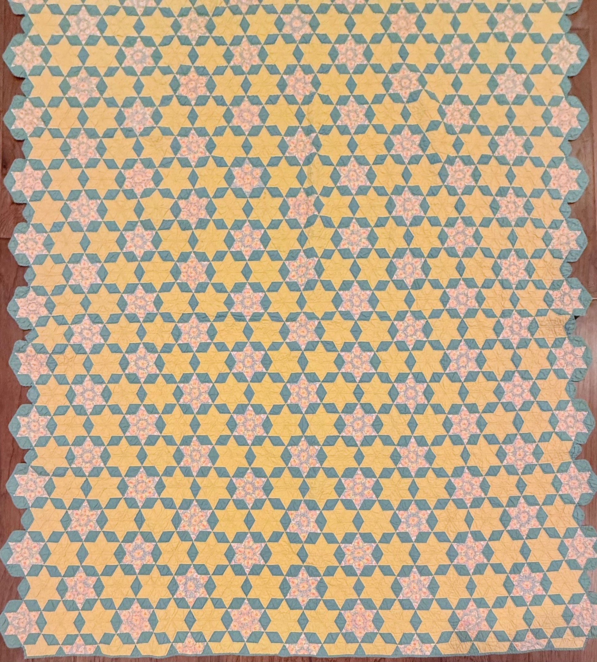 Outstanding small scale 6 Point Stars quilt set in a hexagonal design.