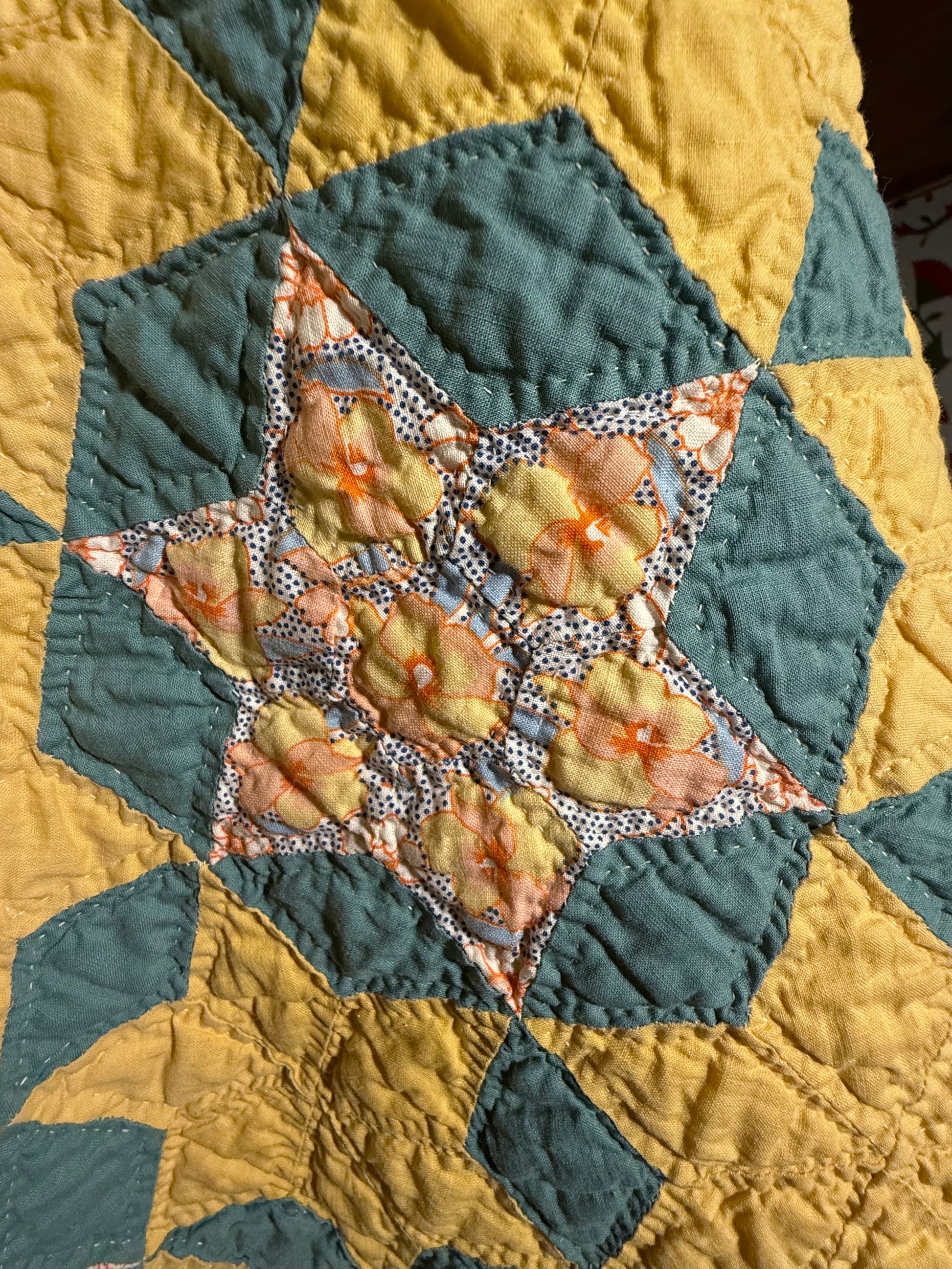 Predominately a beautiful yellow and the star is surrounded by a great 1930’s green.