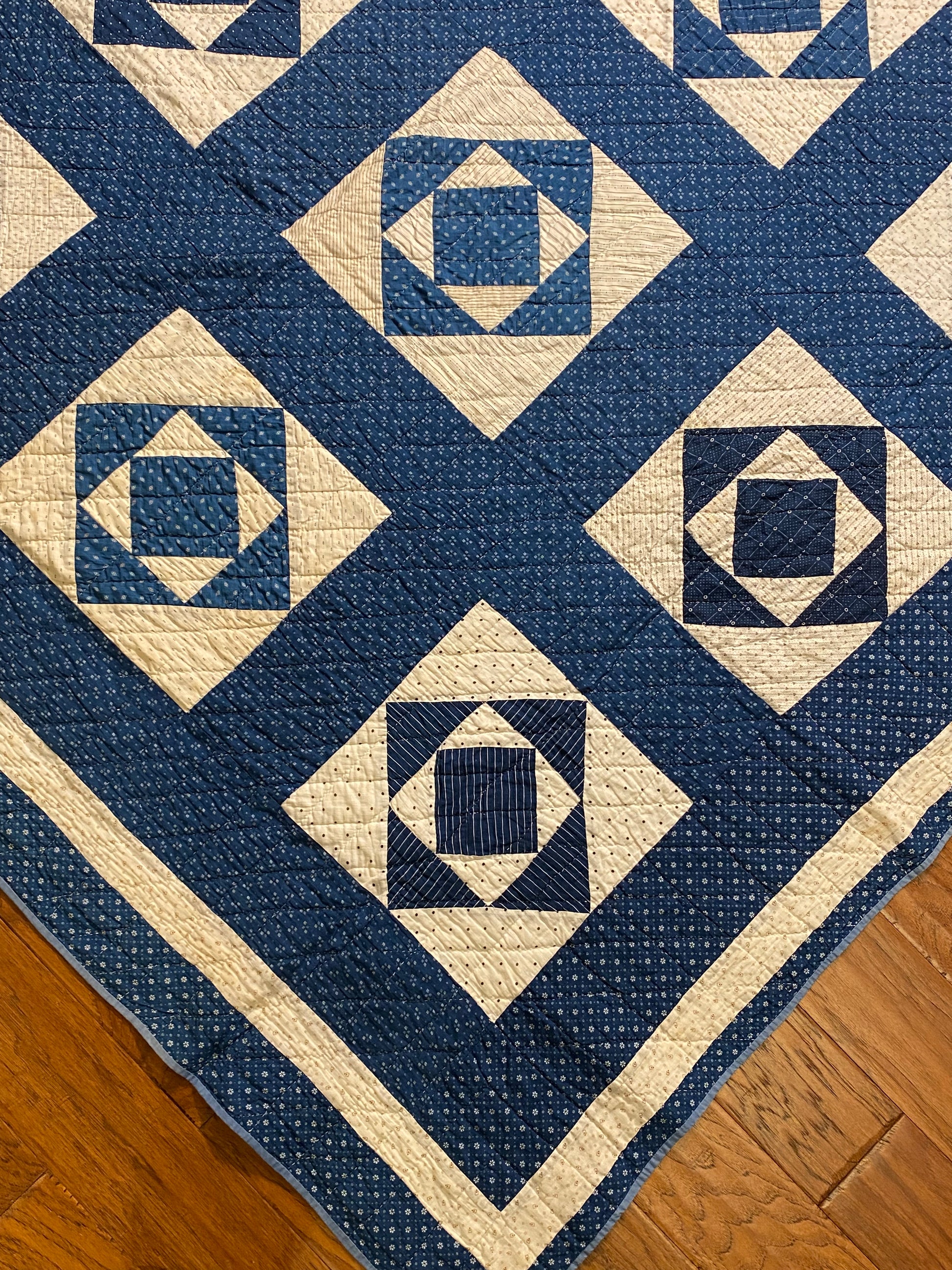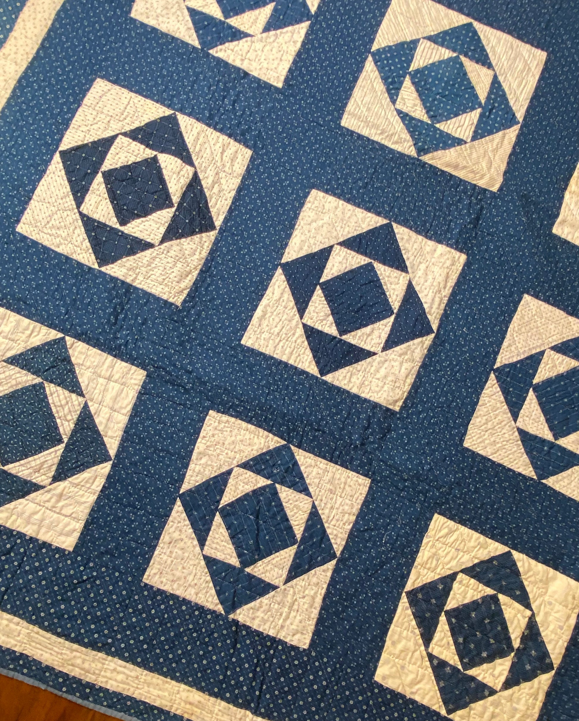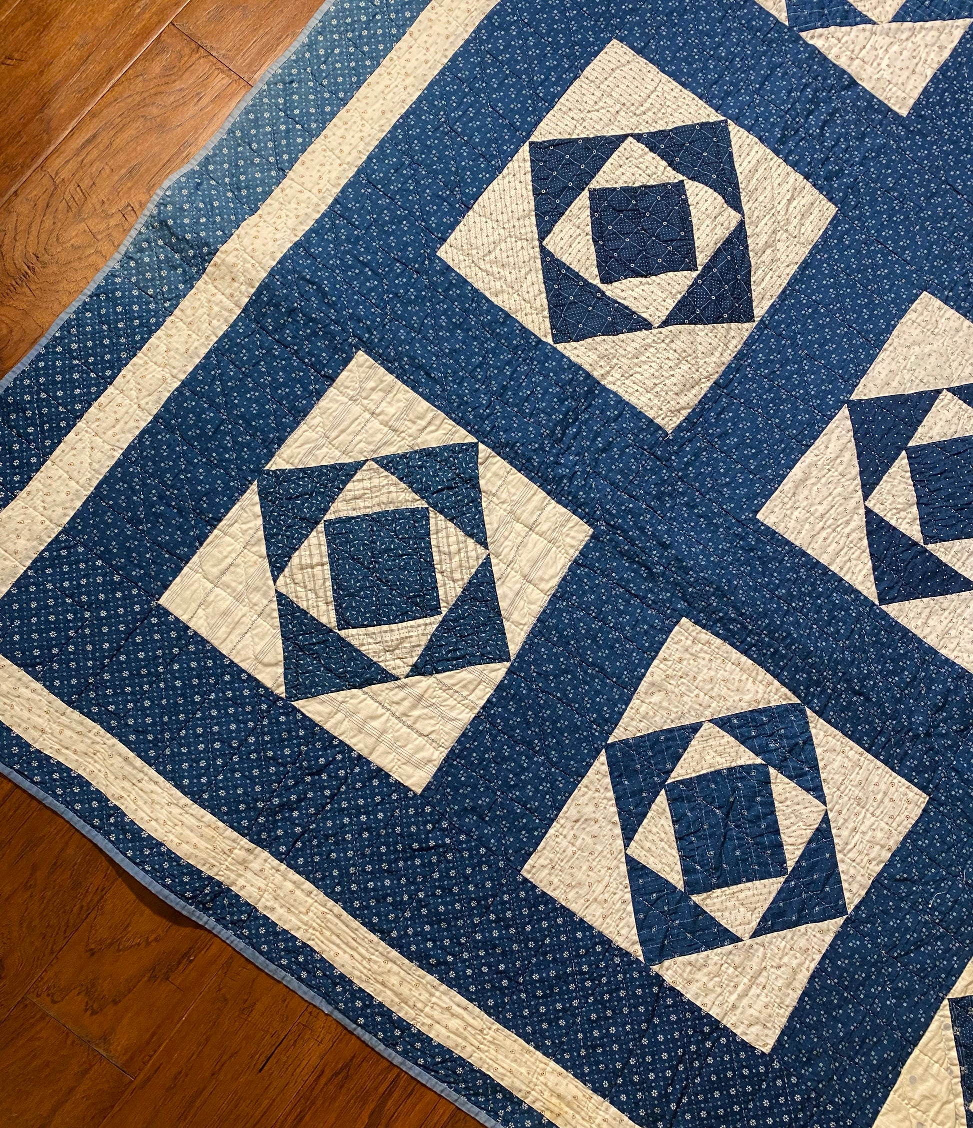 The Square in a Square block is sashed by a nice deep indigo fabric.