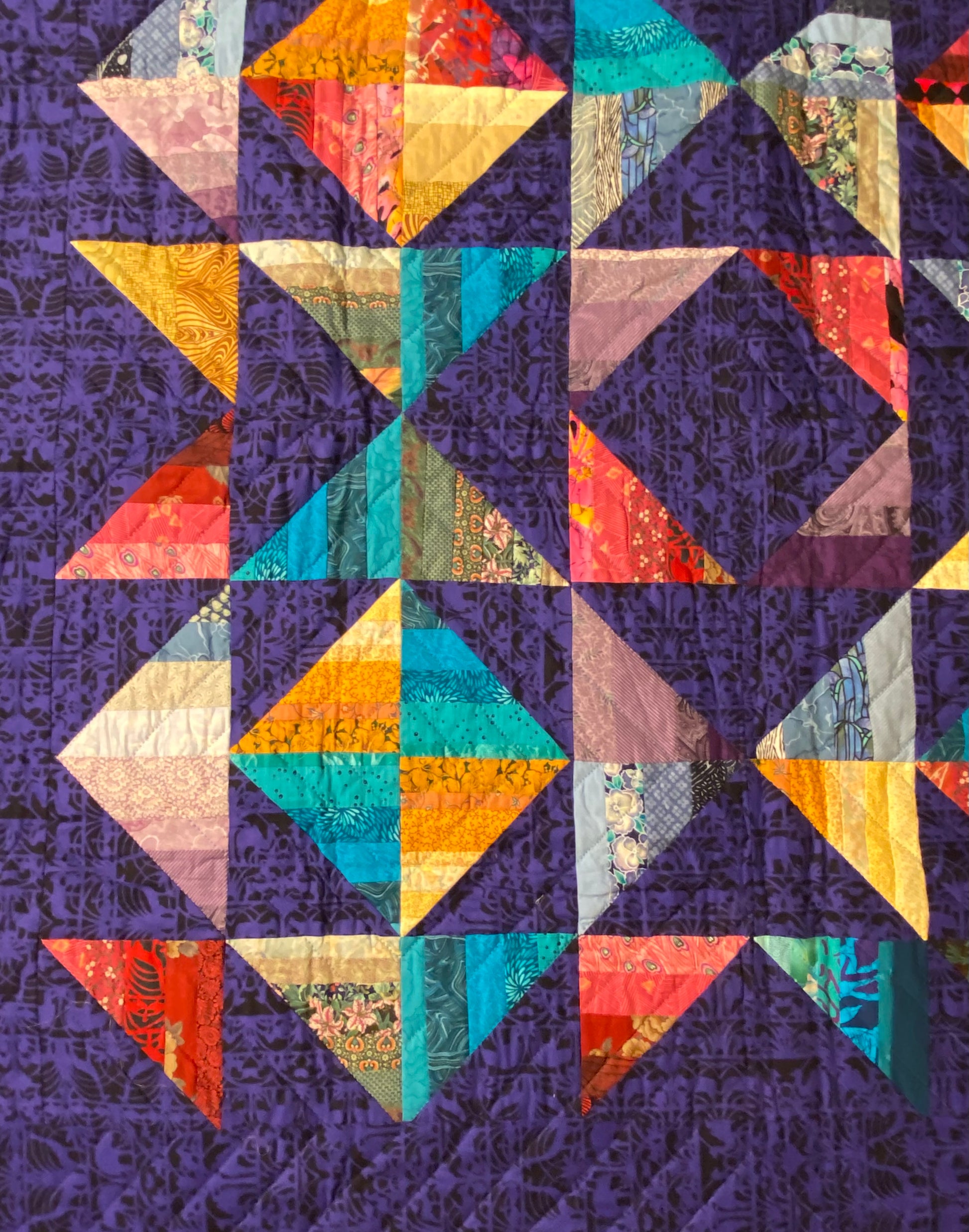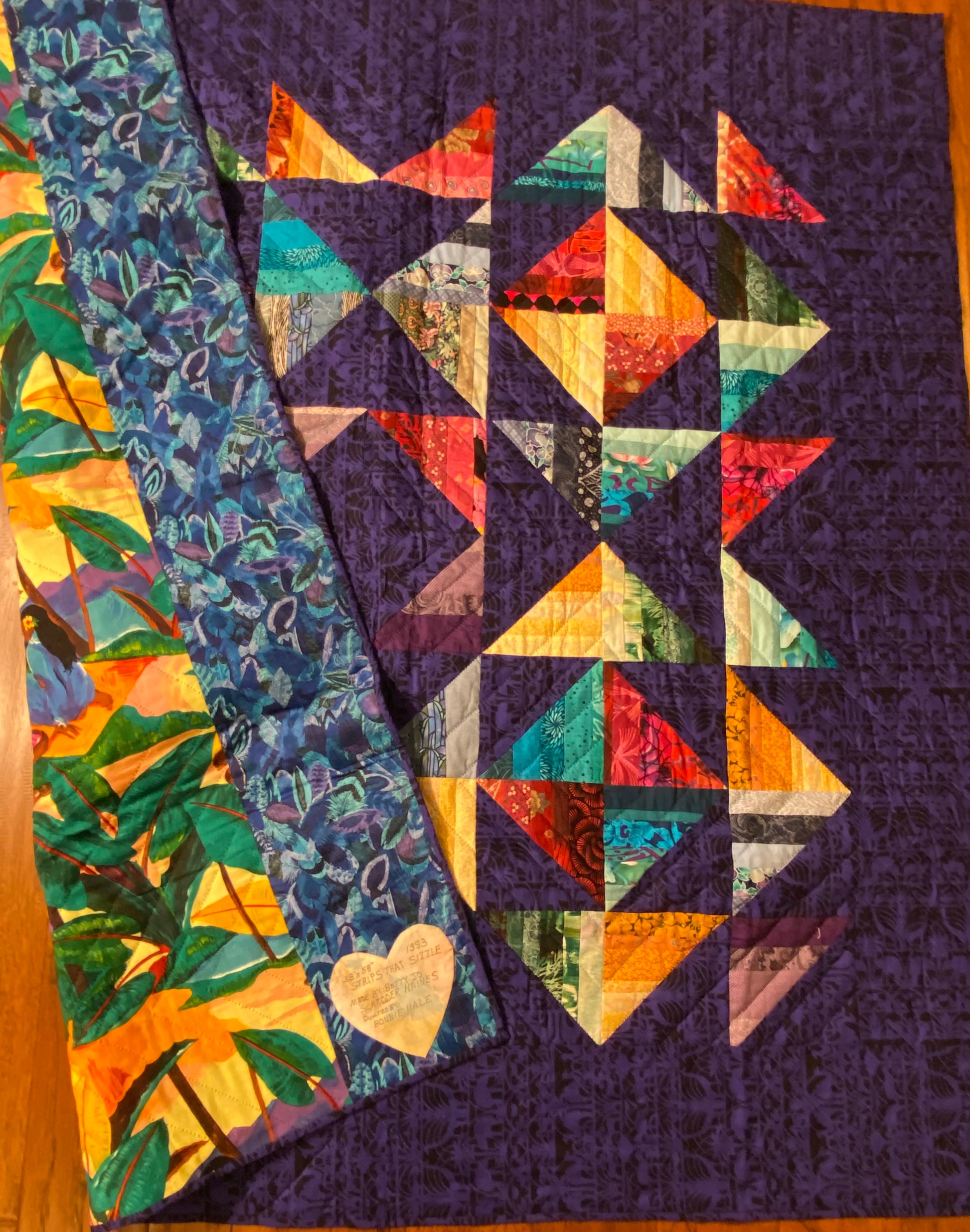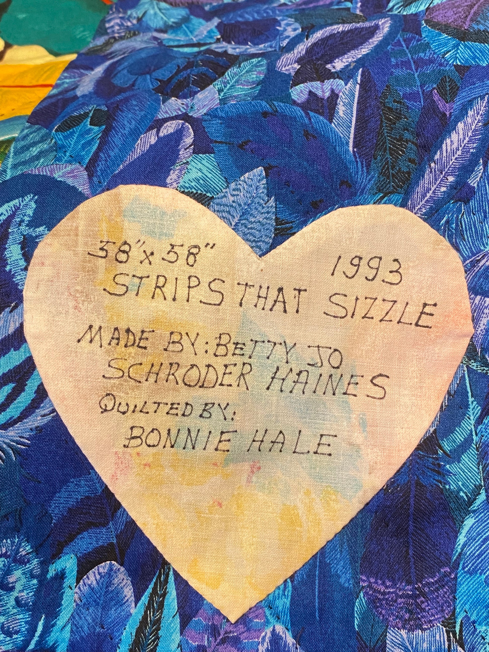 This is one of the art quilts from the collection of Betty Jo Haines. This is one she made and it was quilted by Bonnie Hale as noted on the tag on the backing.