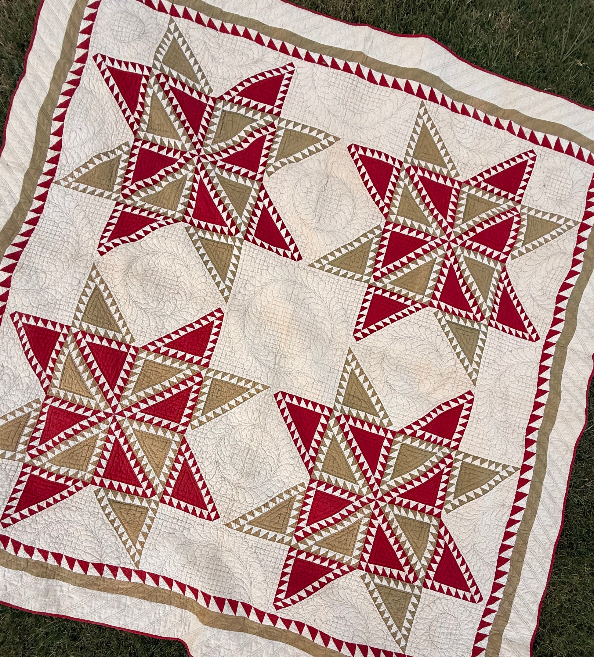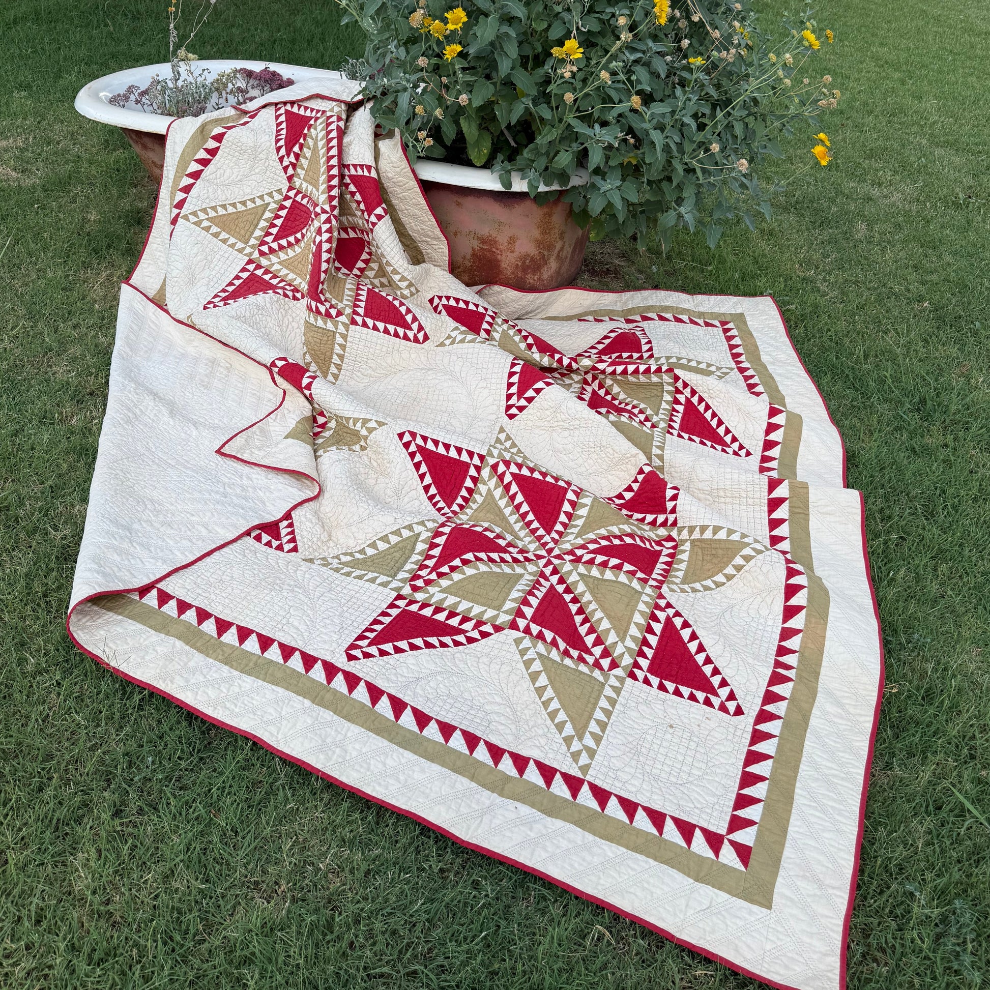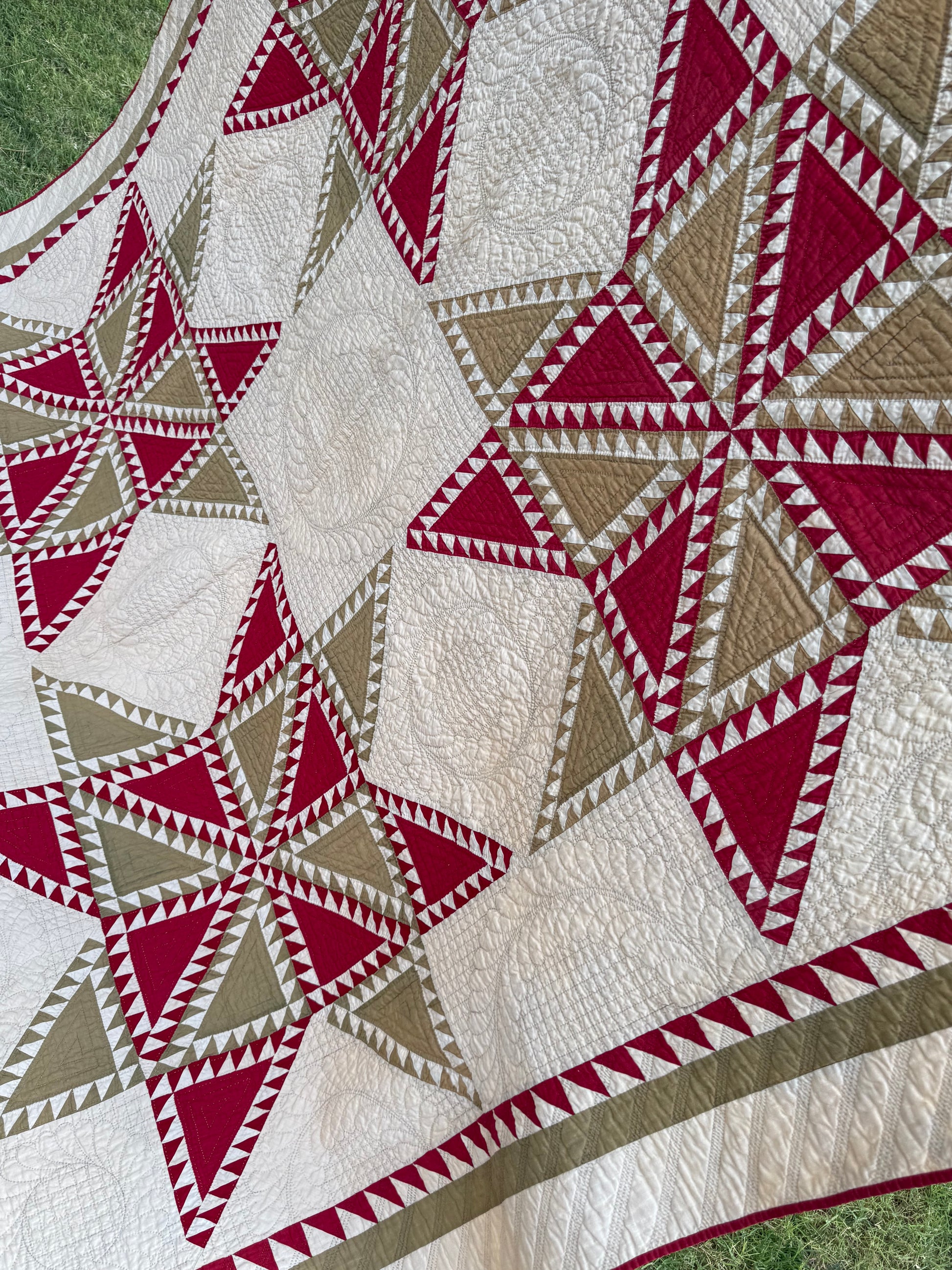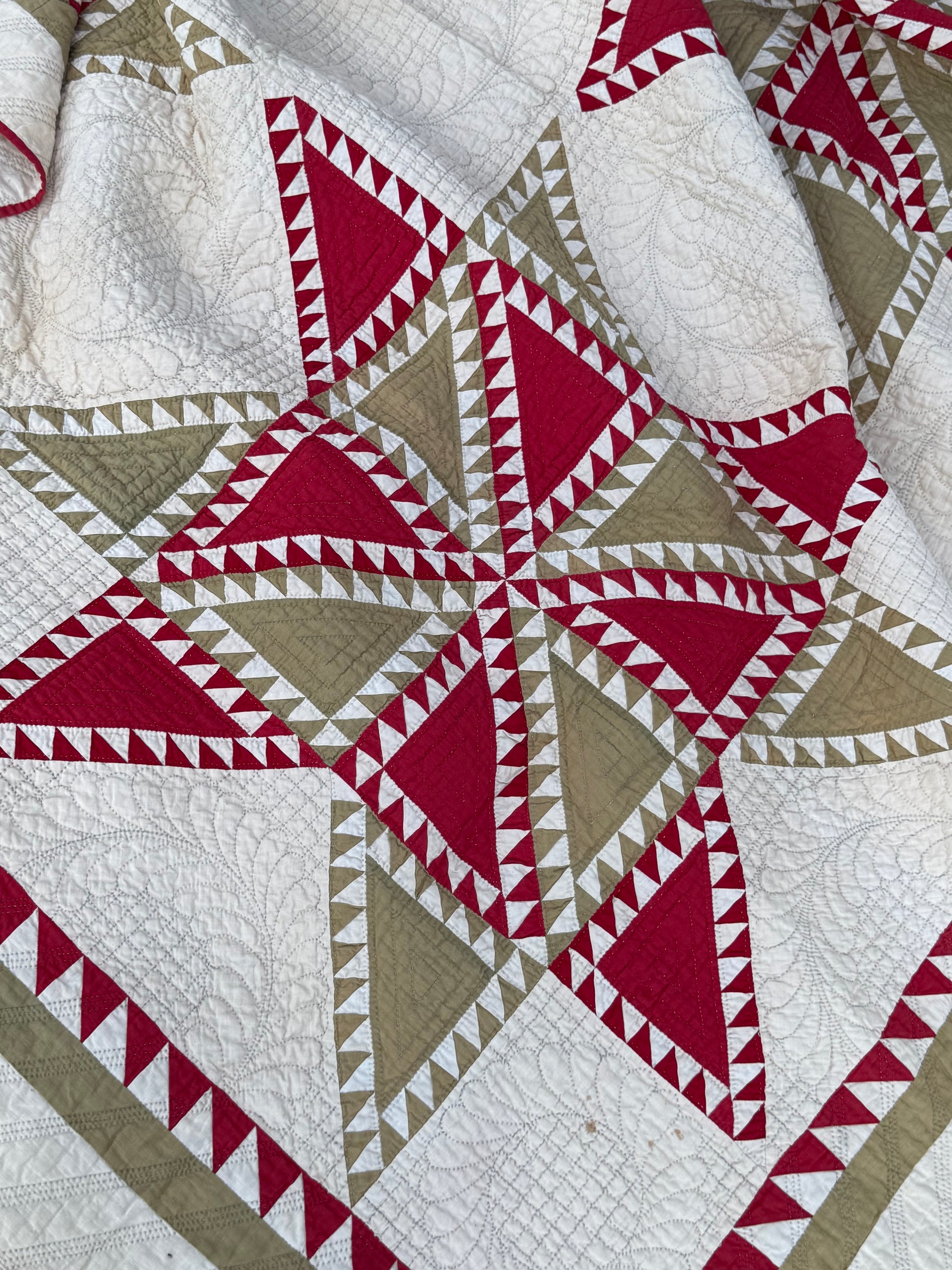 This one displays the fine handwork of the quilter and the piecework is incredible. The pattern, a rare one!!