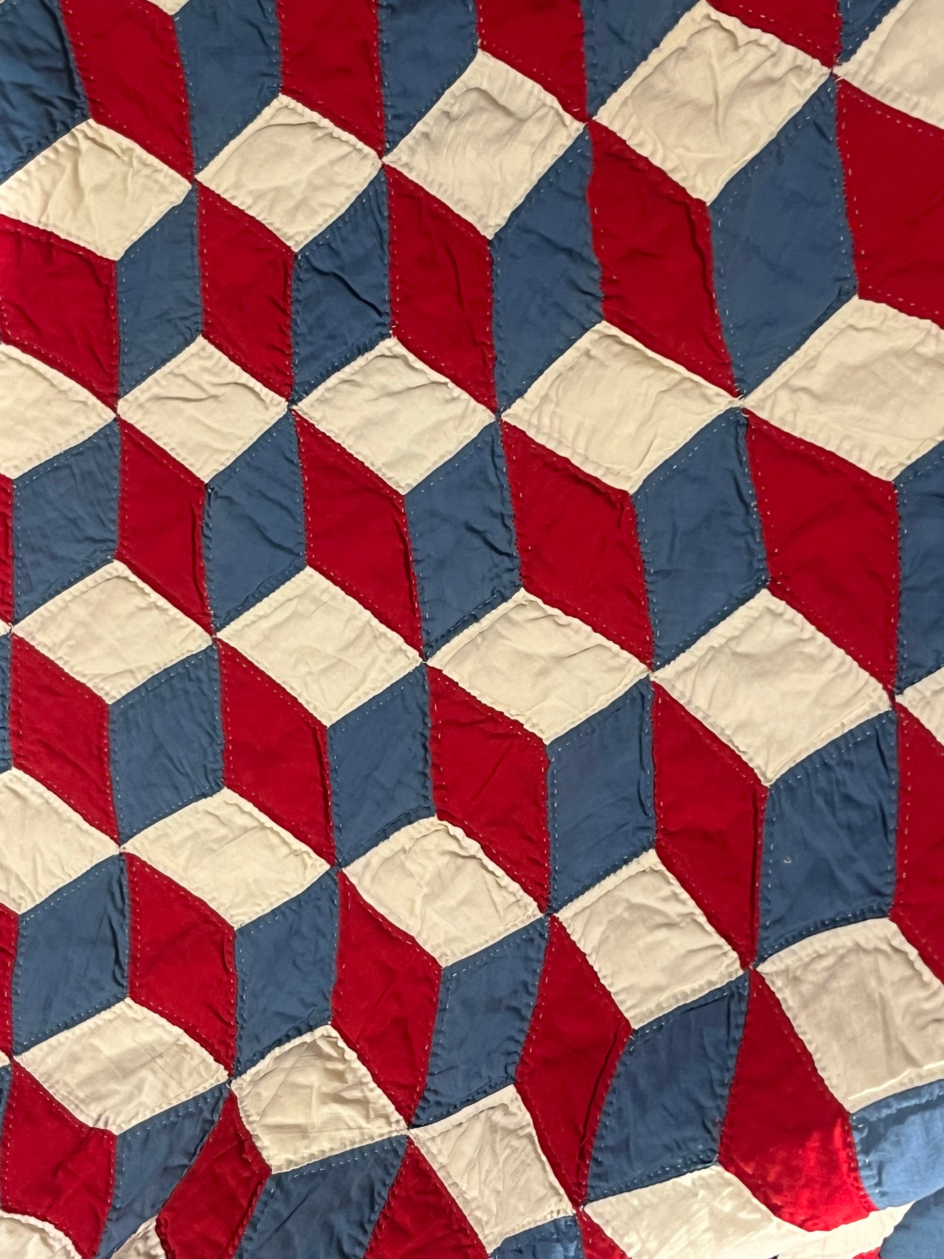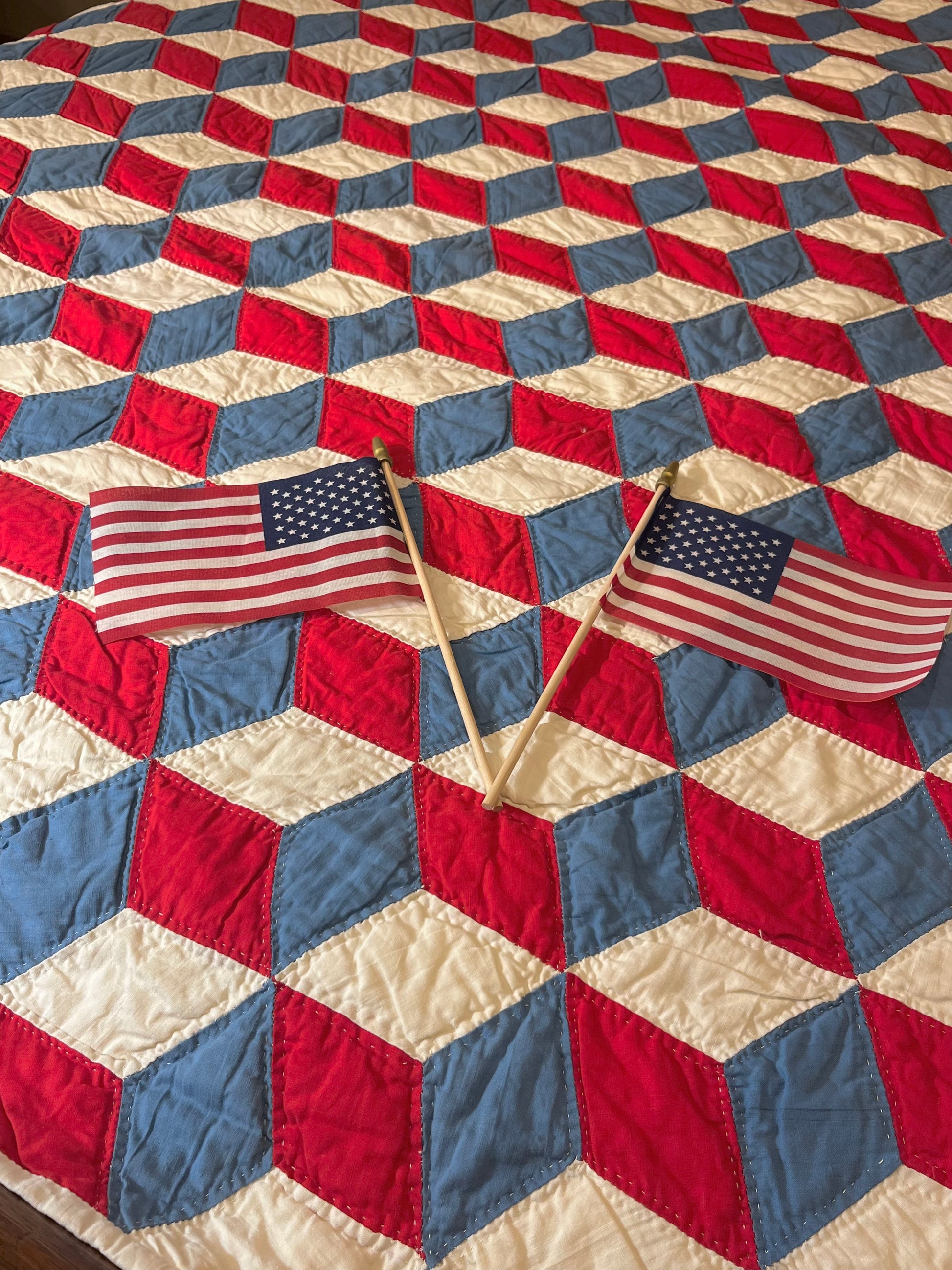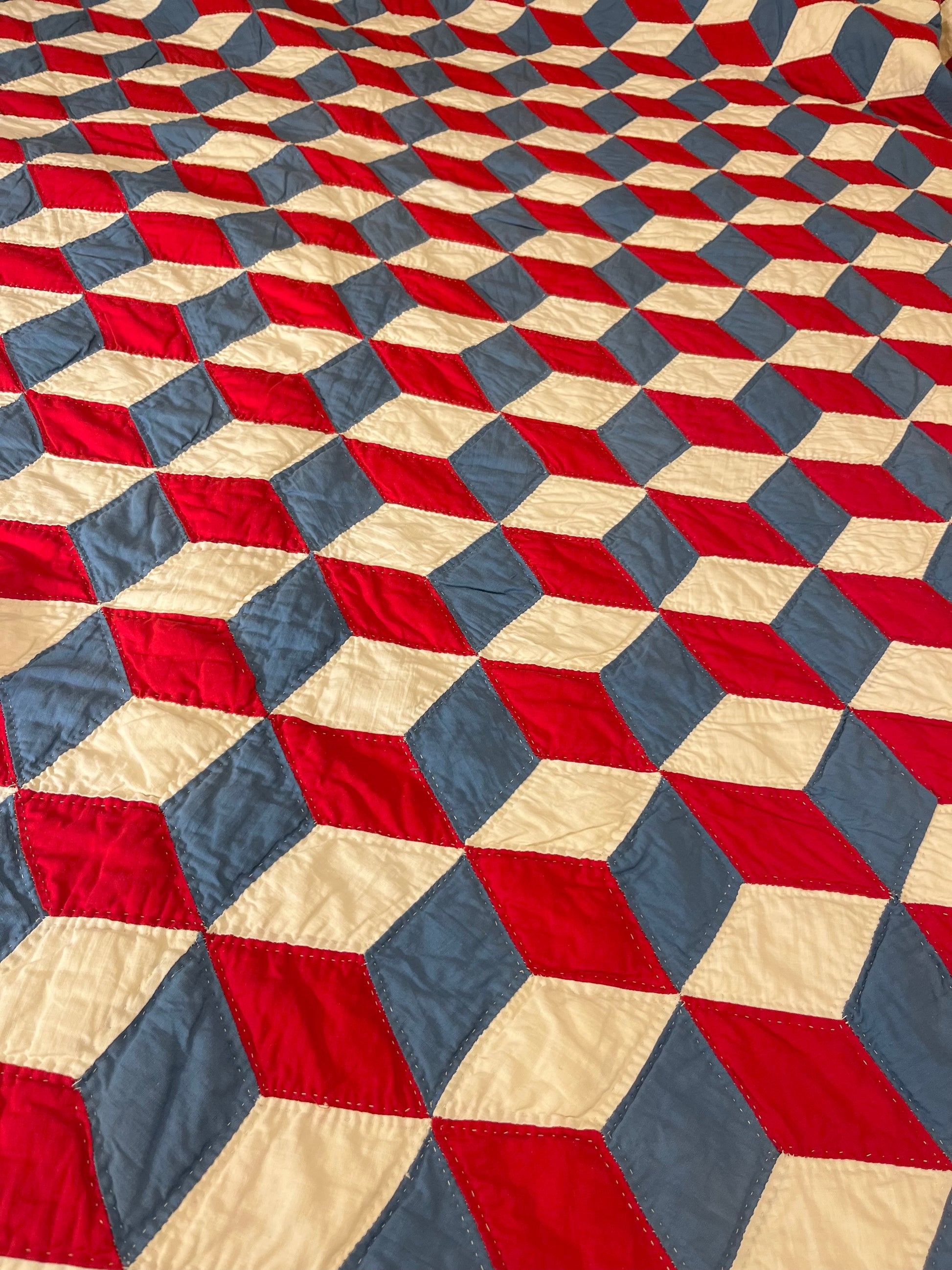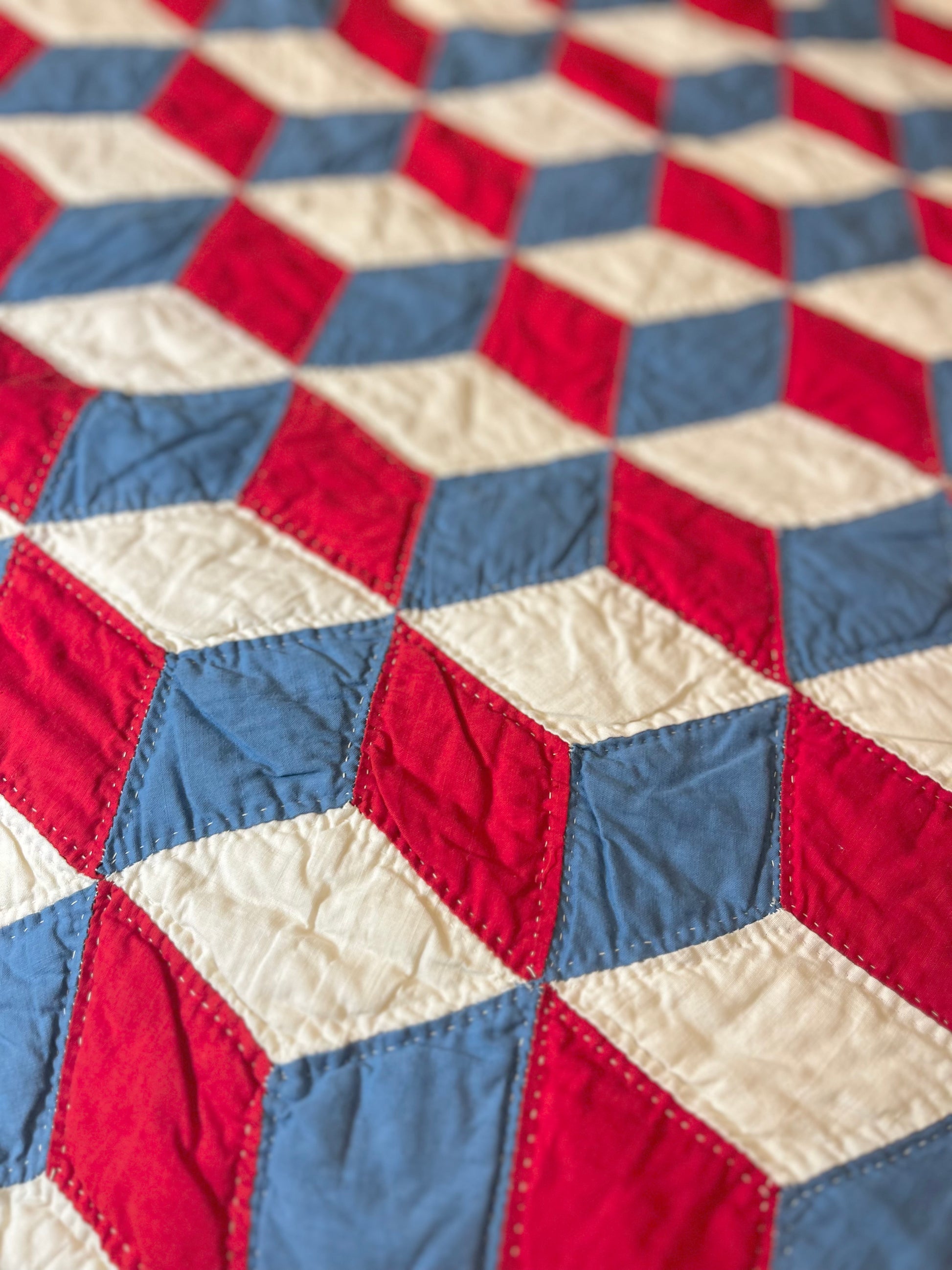 Red White and Blue Tumbling Blocks Quilt