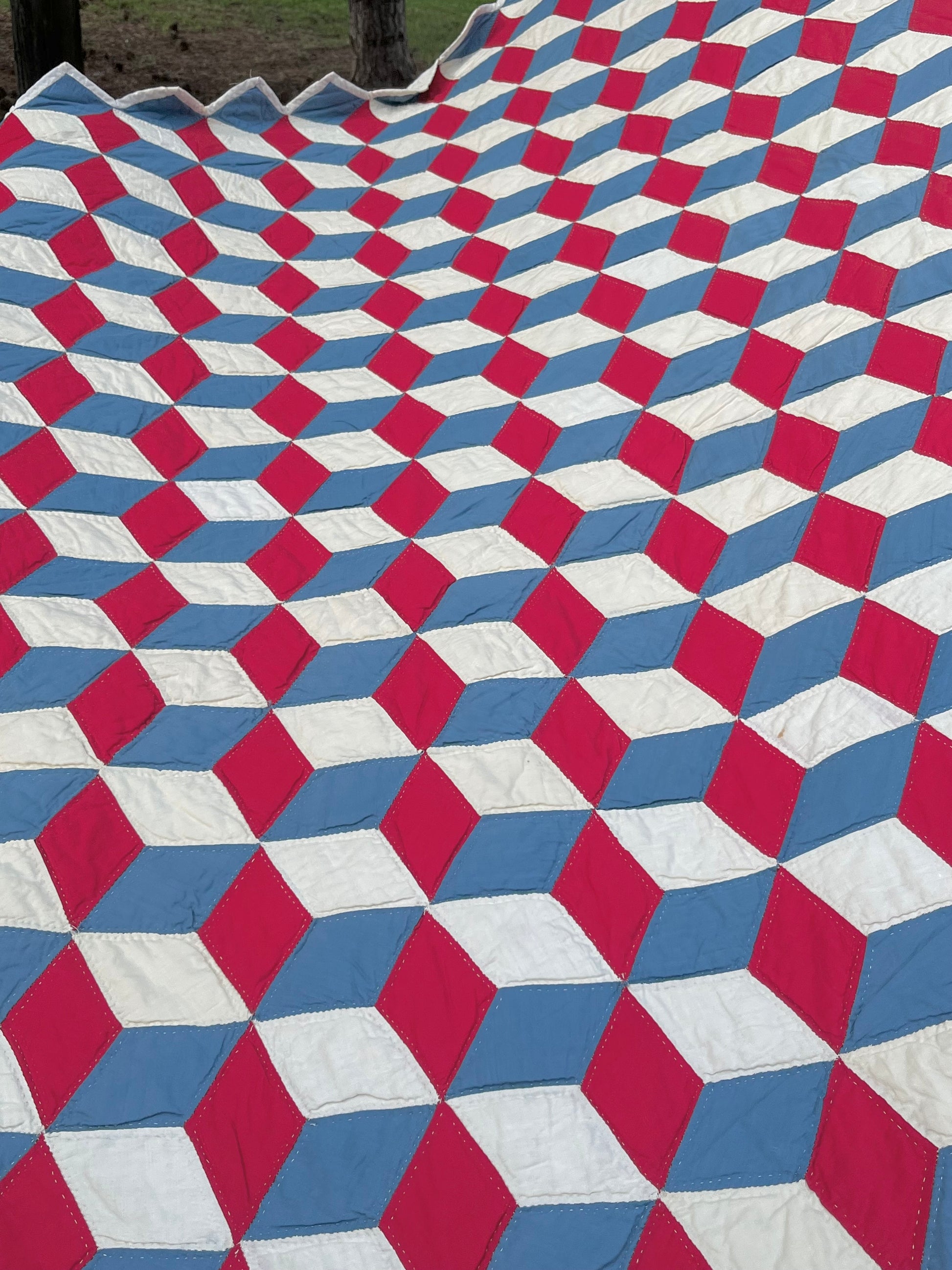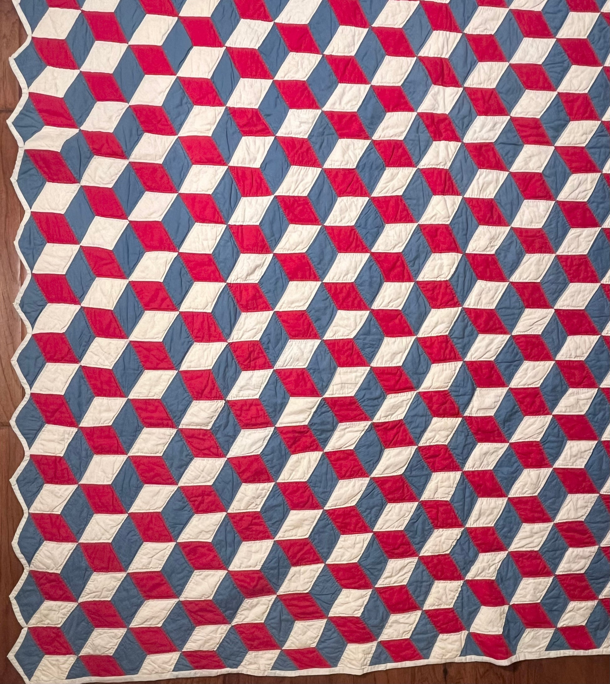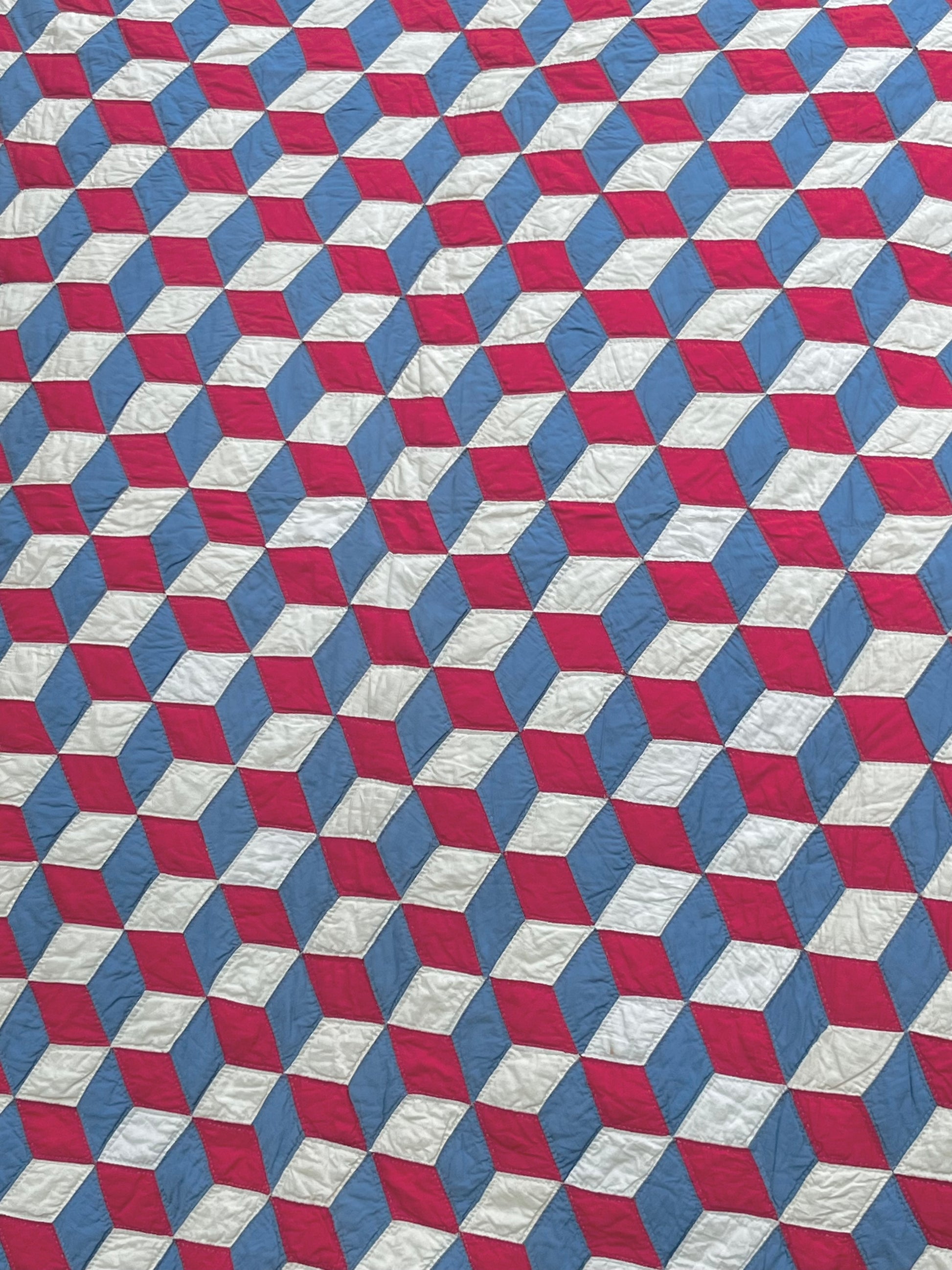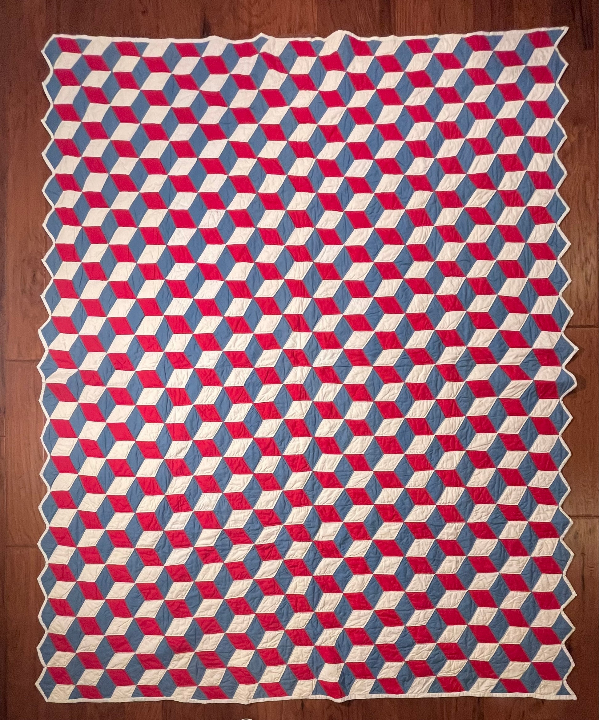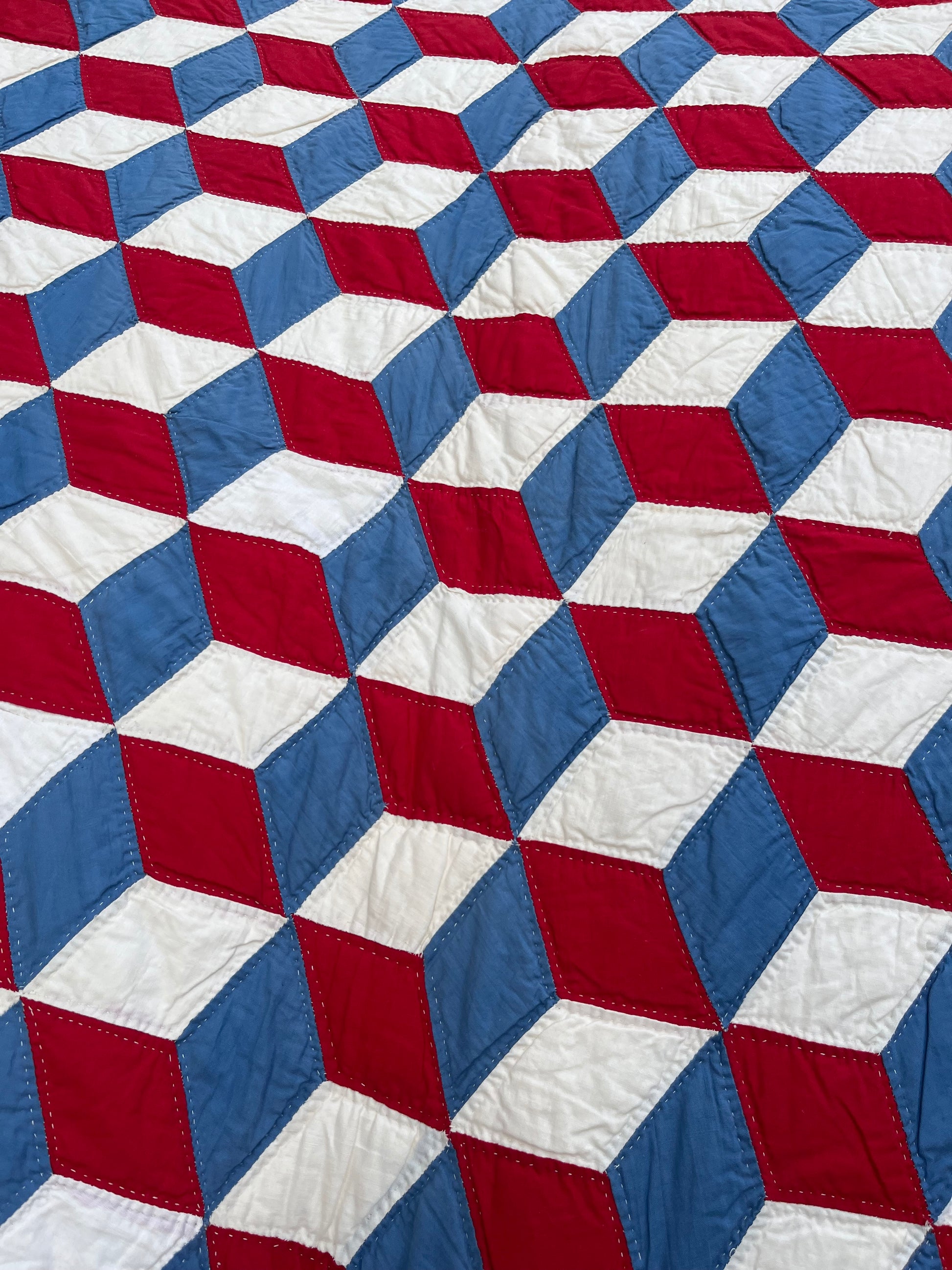 Red White and Blue Tumbling Blocks Quilt