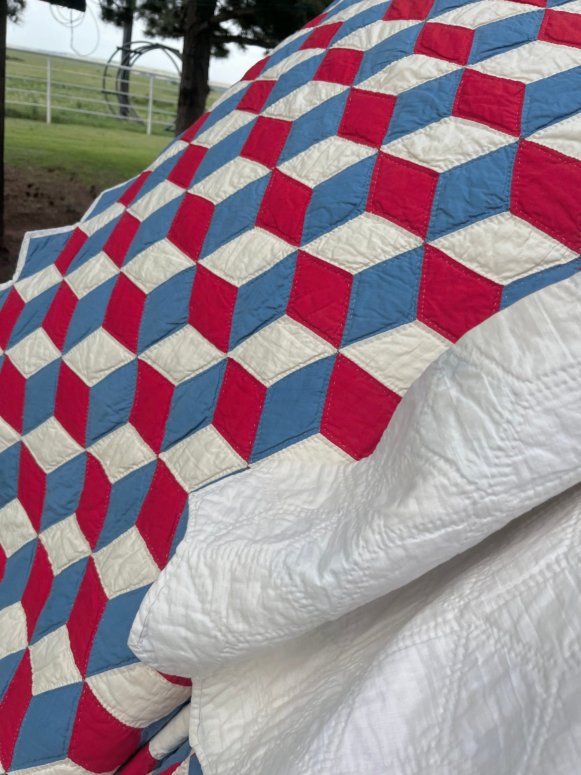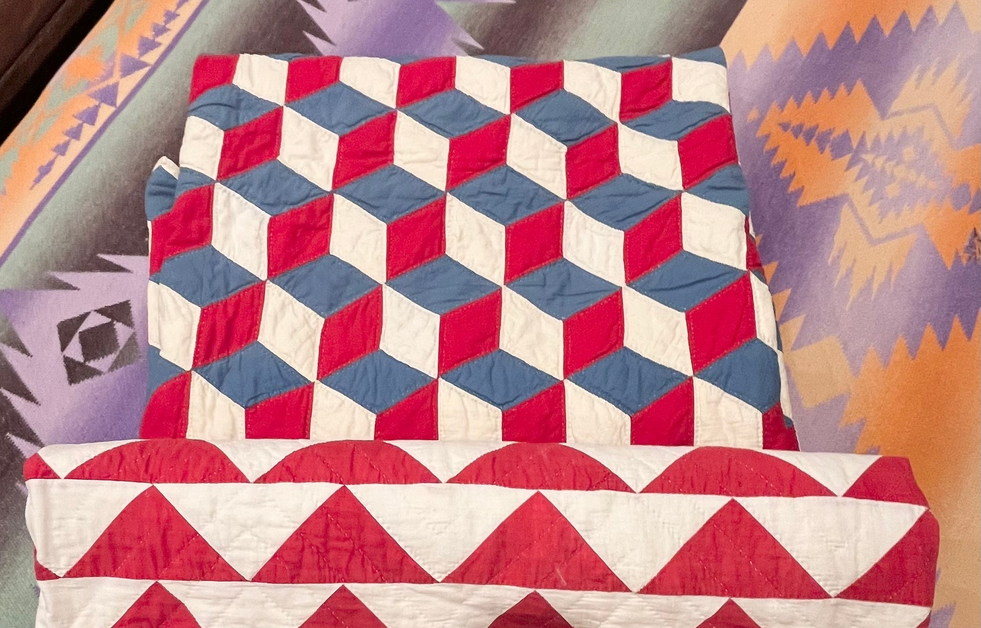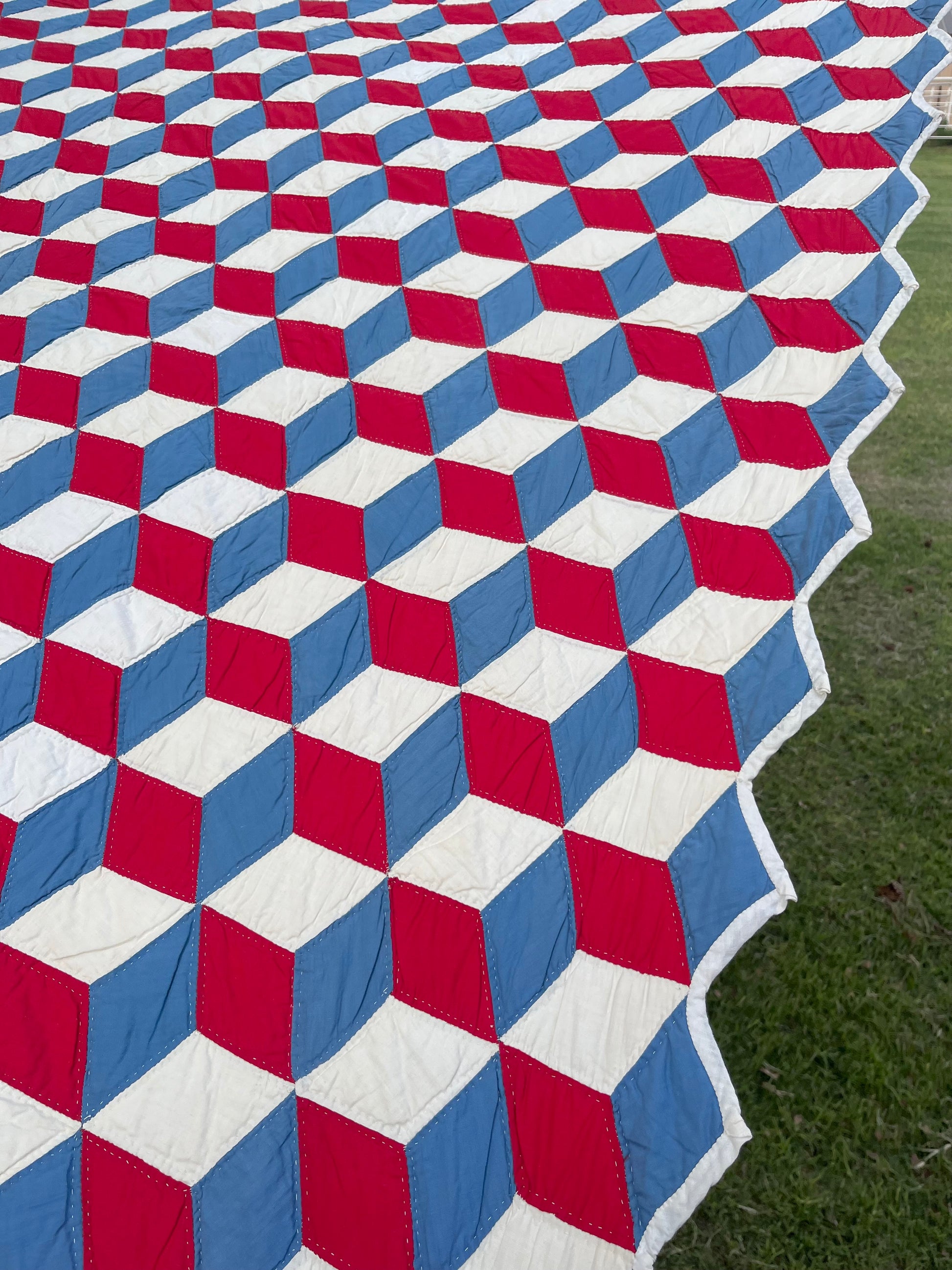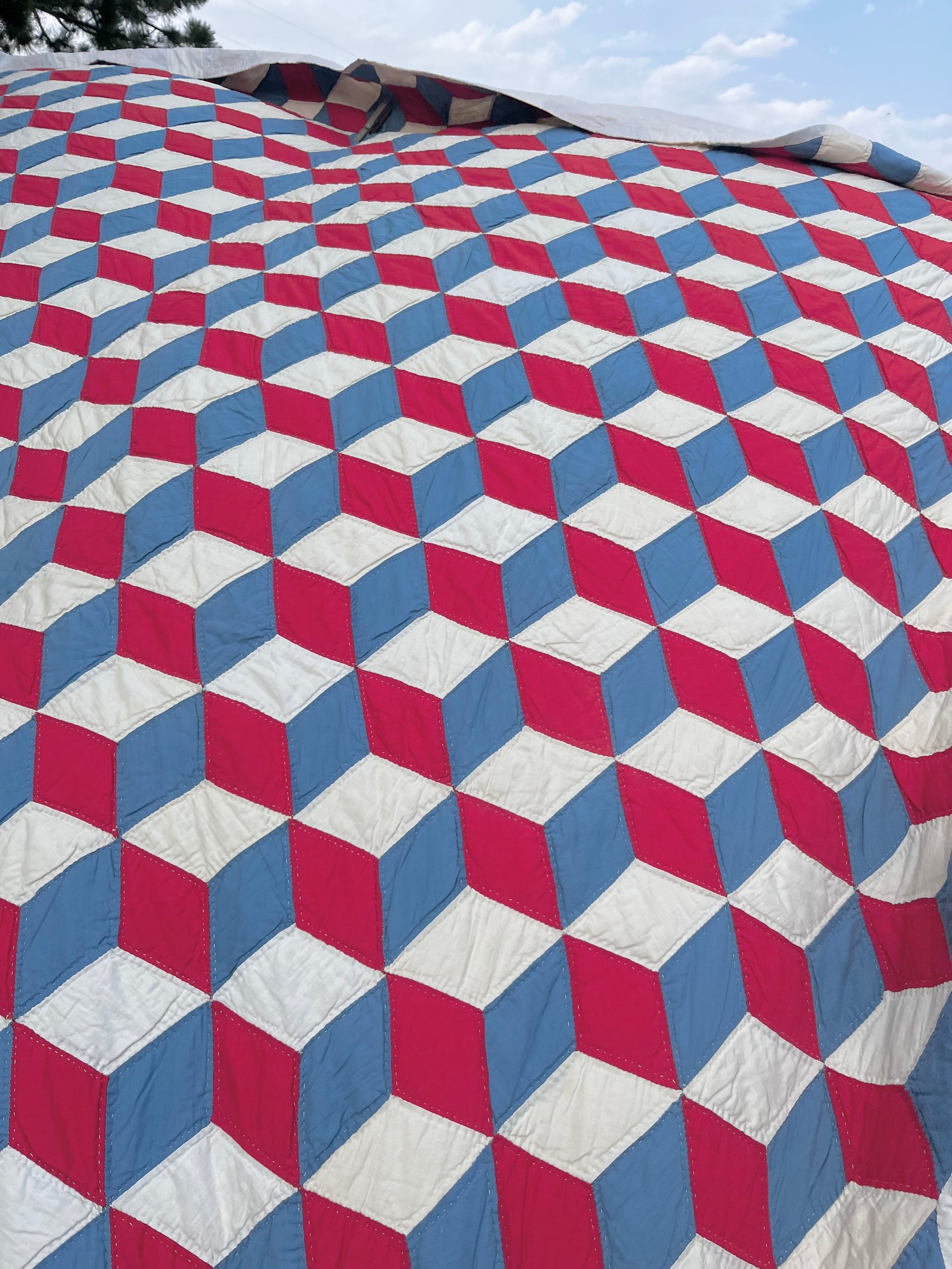 Red White and Blue Tumbling Blocks Quilt
